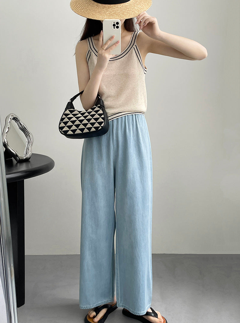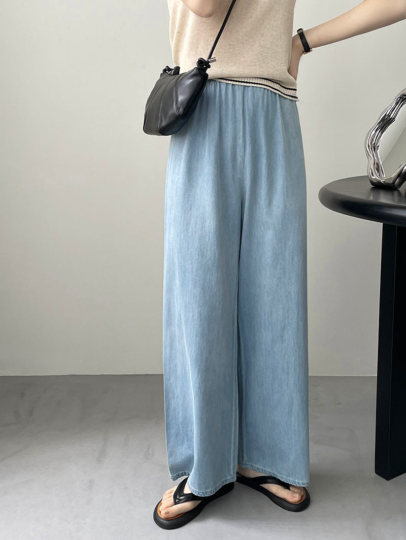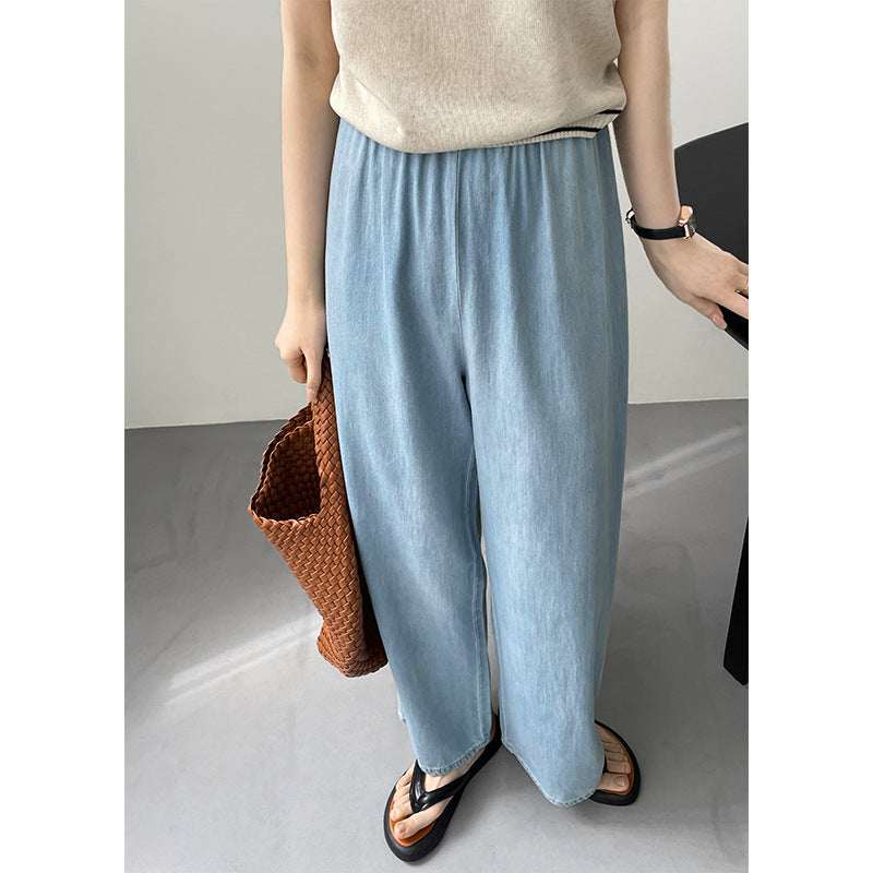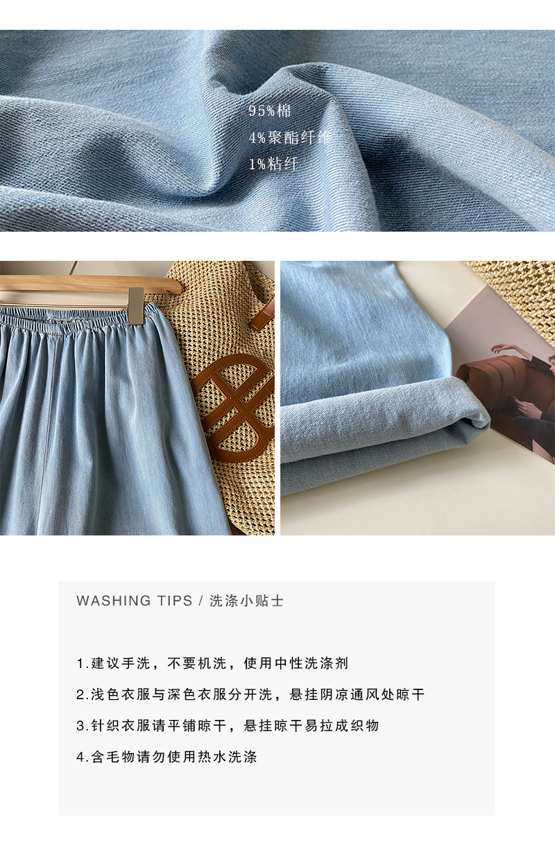 【cim2217】實拍韓國夏季慵懶休閒鬆緊高腰直筒牛仔褲cim25早春