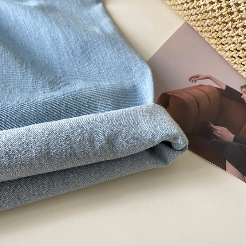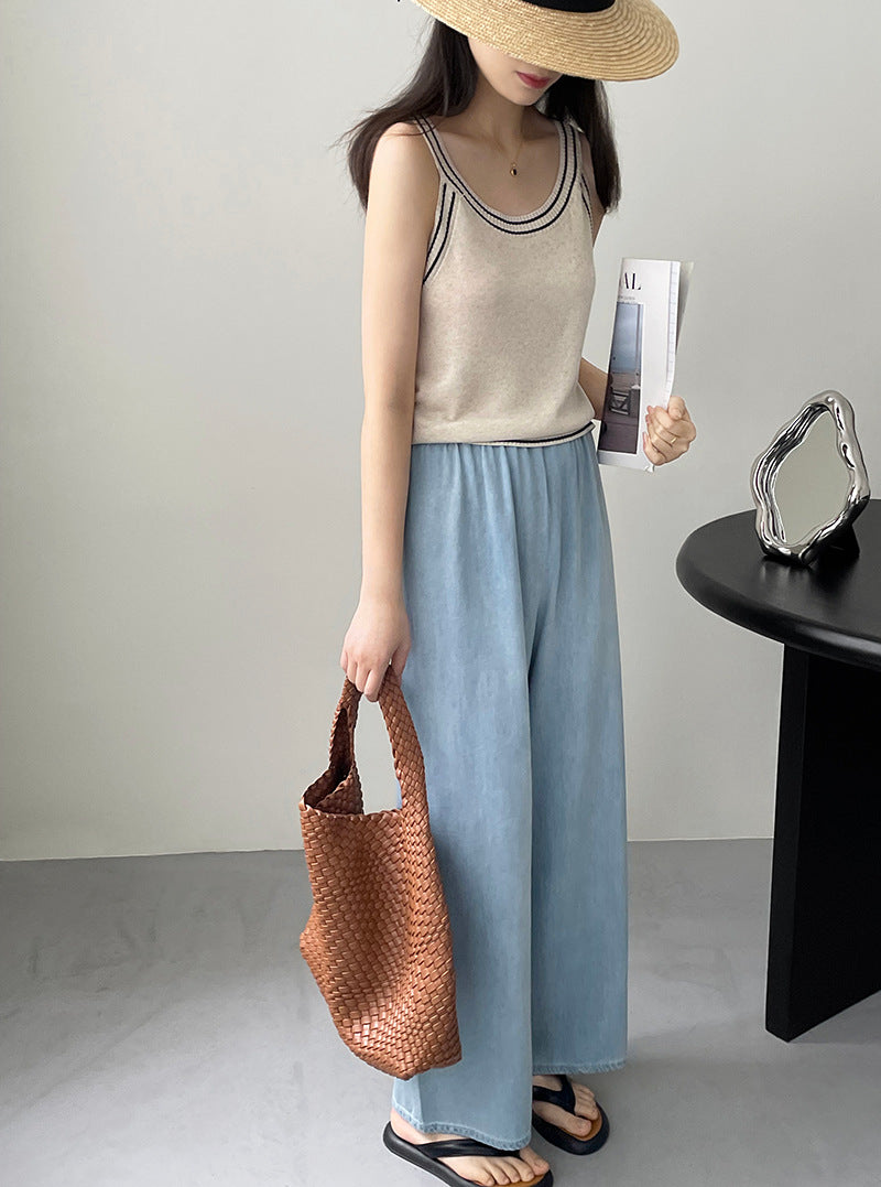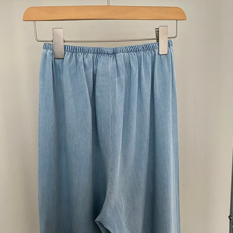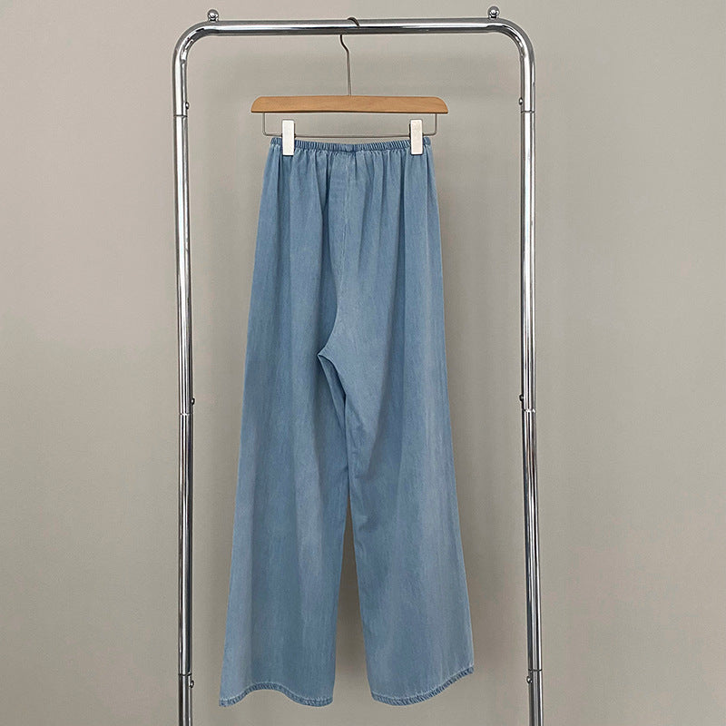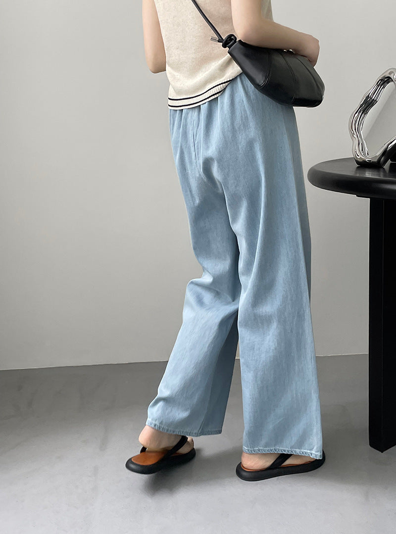 【cim2217】實拍韓國夏季慵懶休閒鬆緊高腰直筒牛仔褲cim25早春
