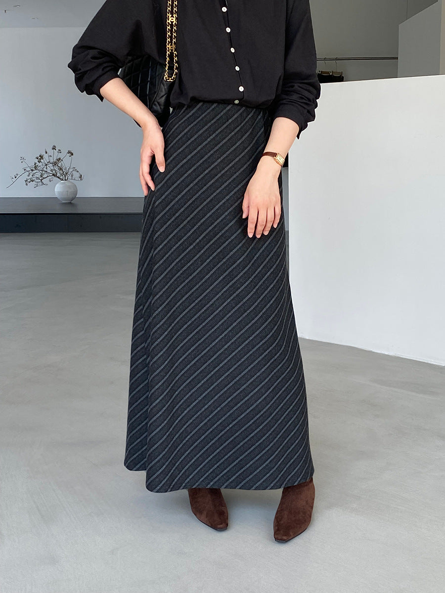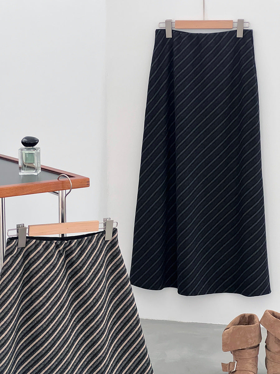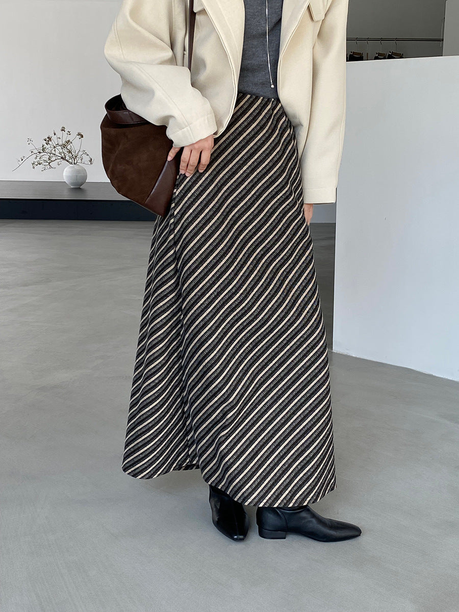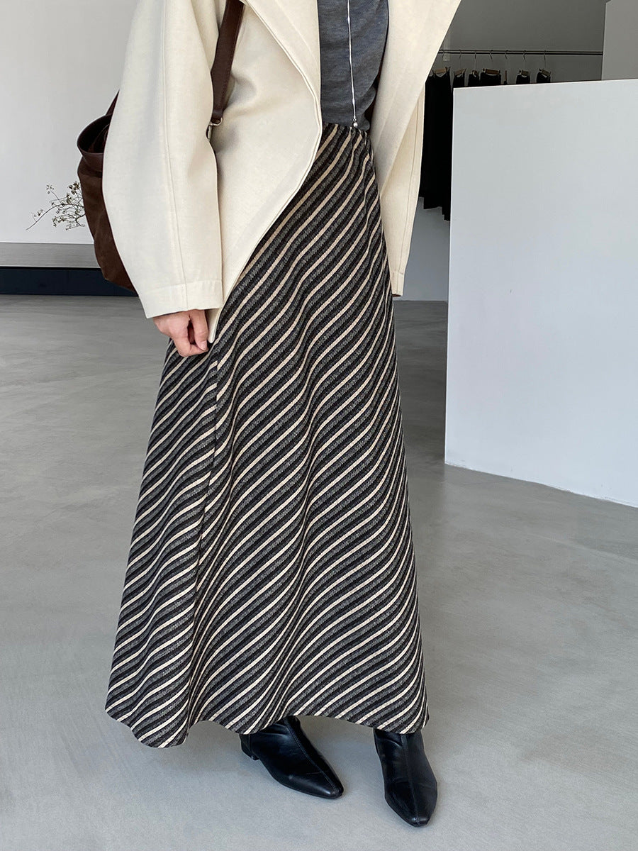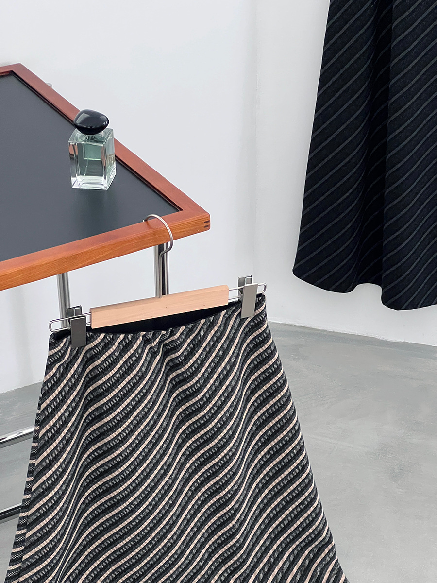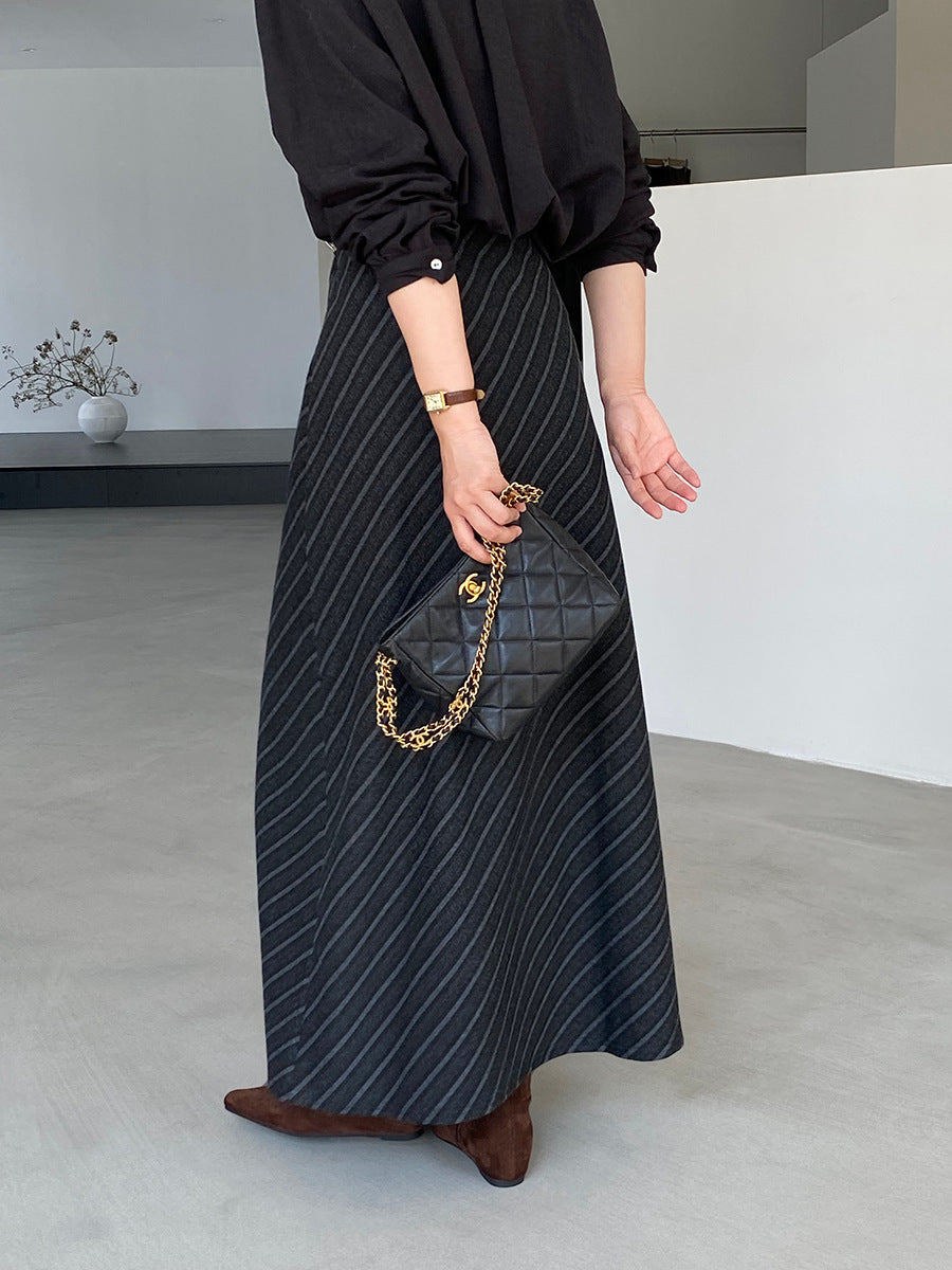 【cim2217】實拍時髦氣質斜紋高腰中長裙251030
