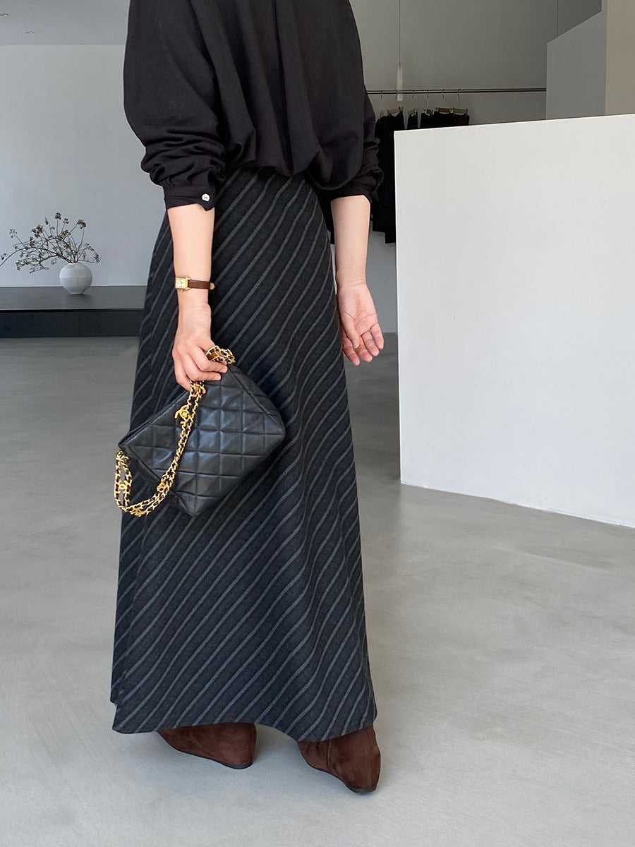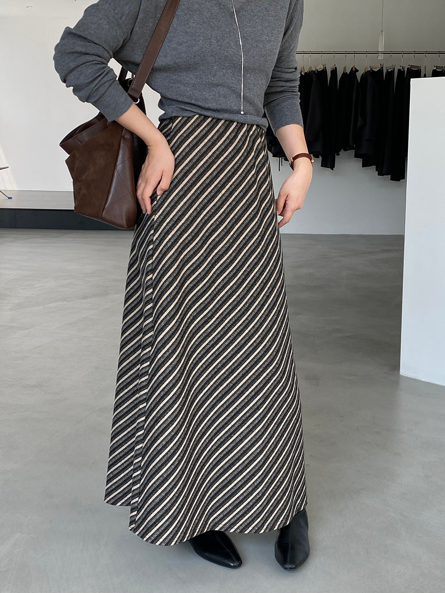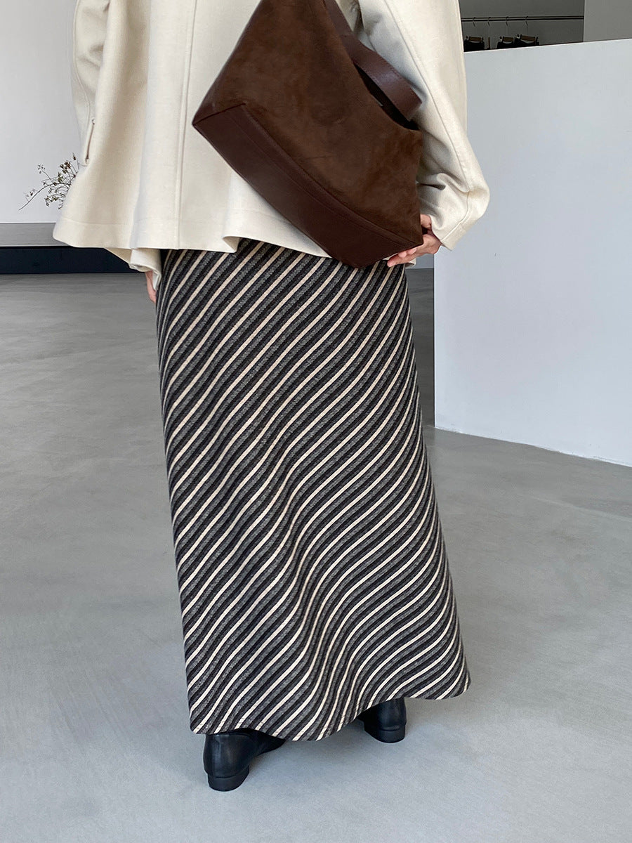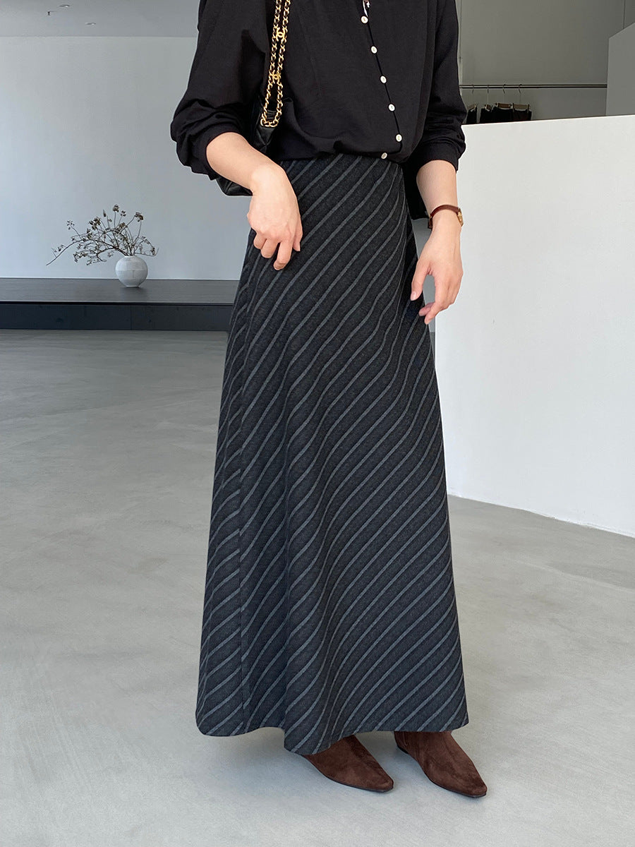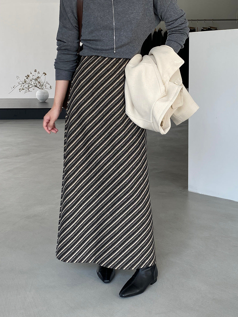 【cim2217】實拍時髦氣質斜紋高腰中長裙251030