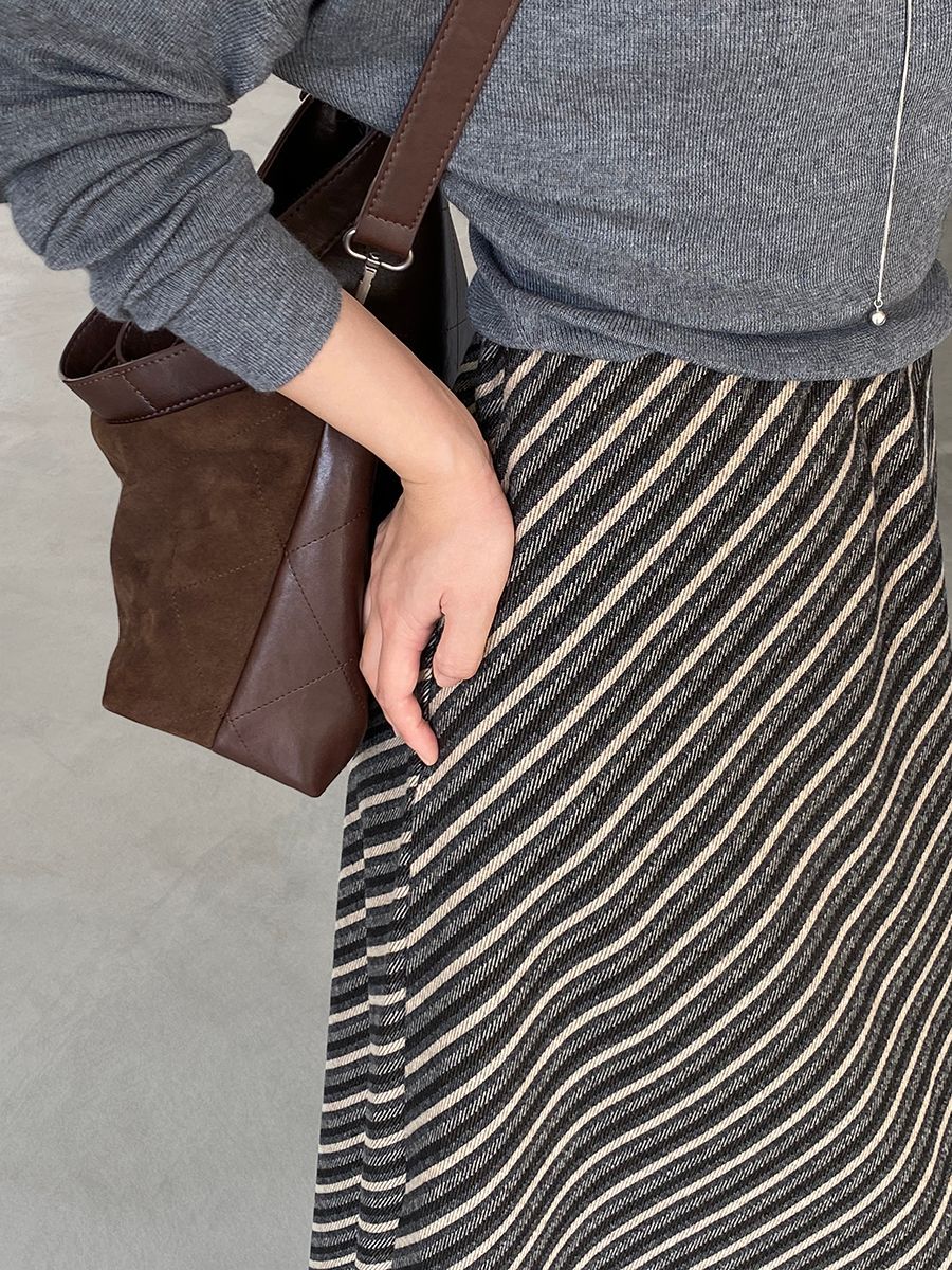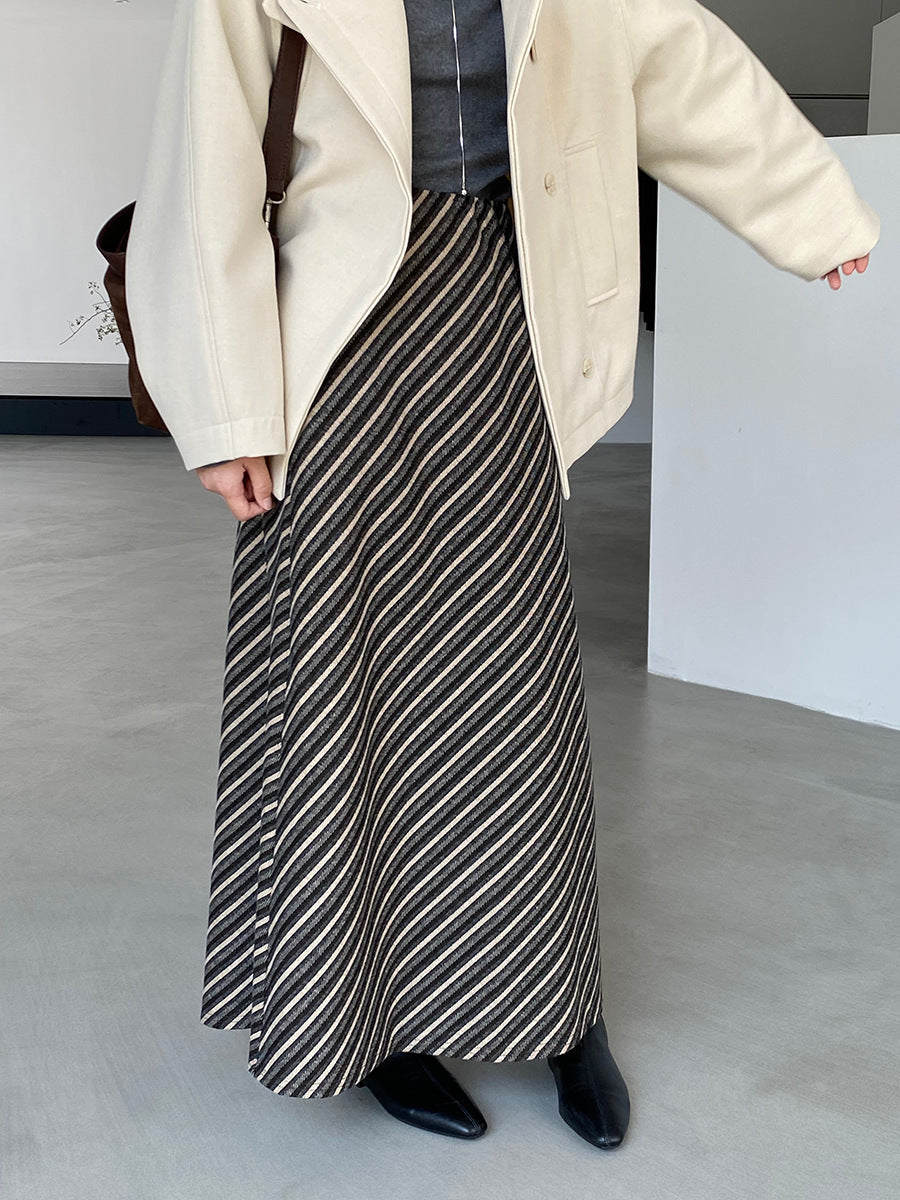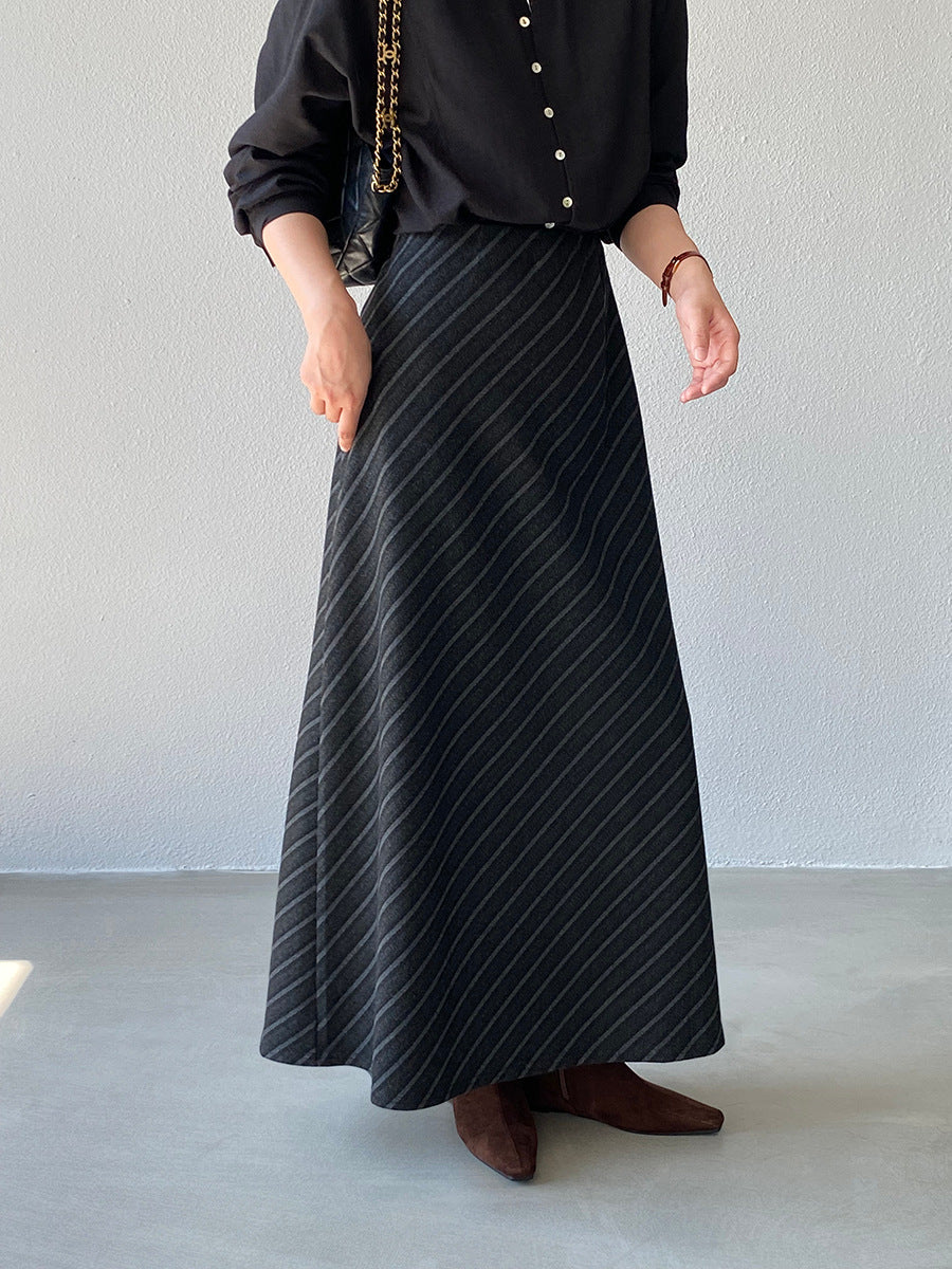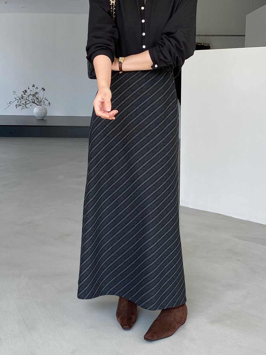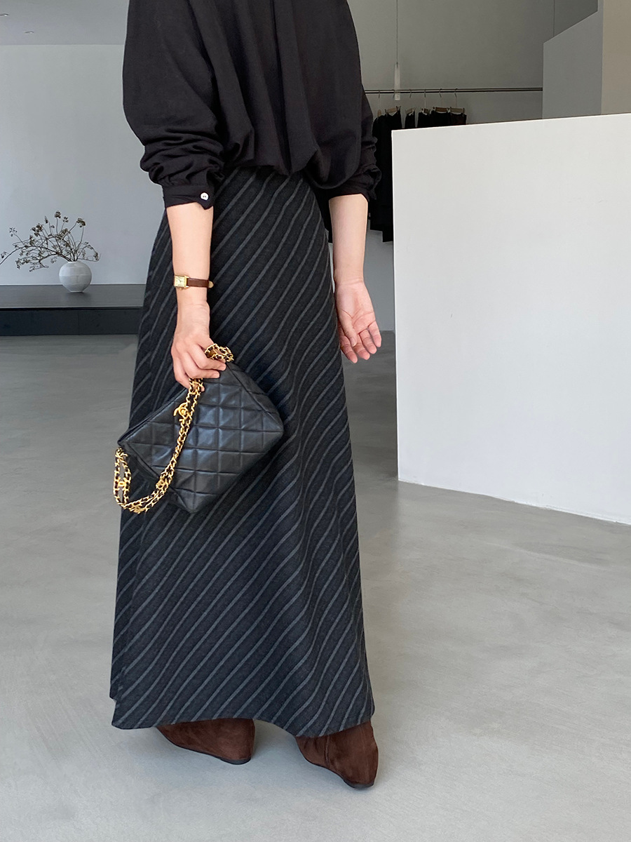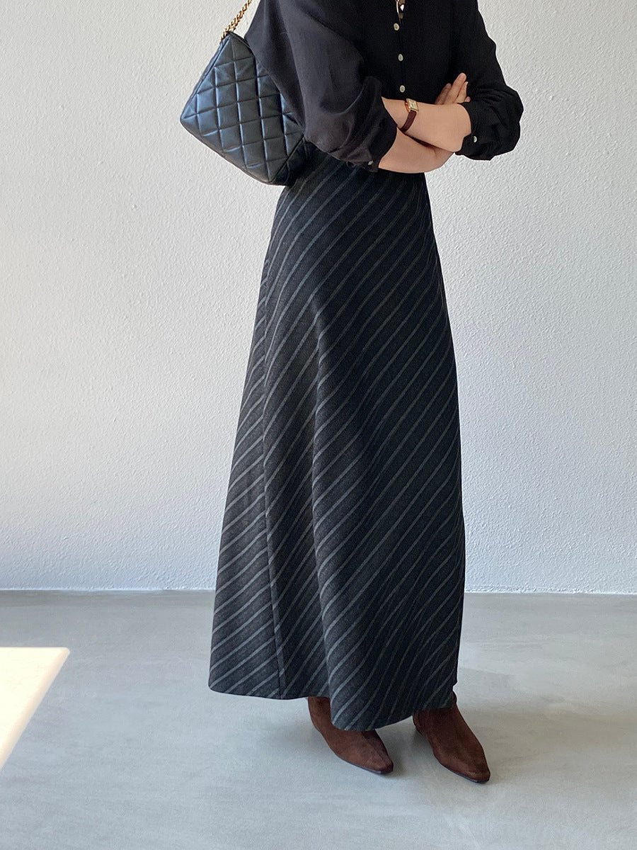 【cim2217】實拍時髦氣質斜紋高腰中長裙251030