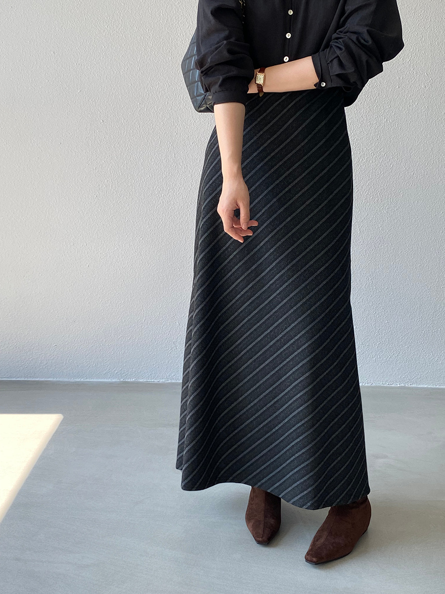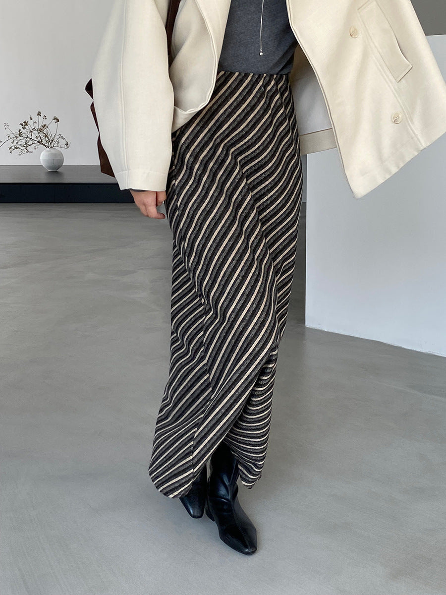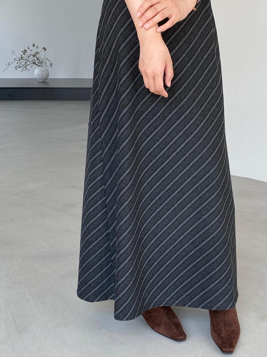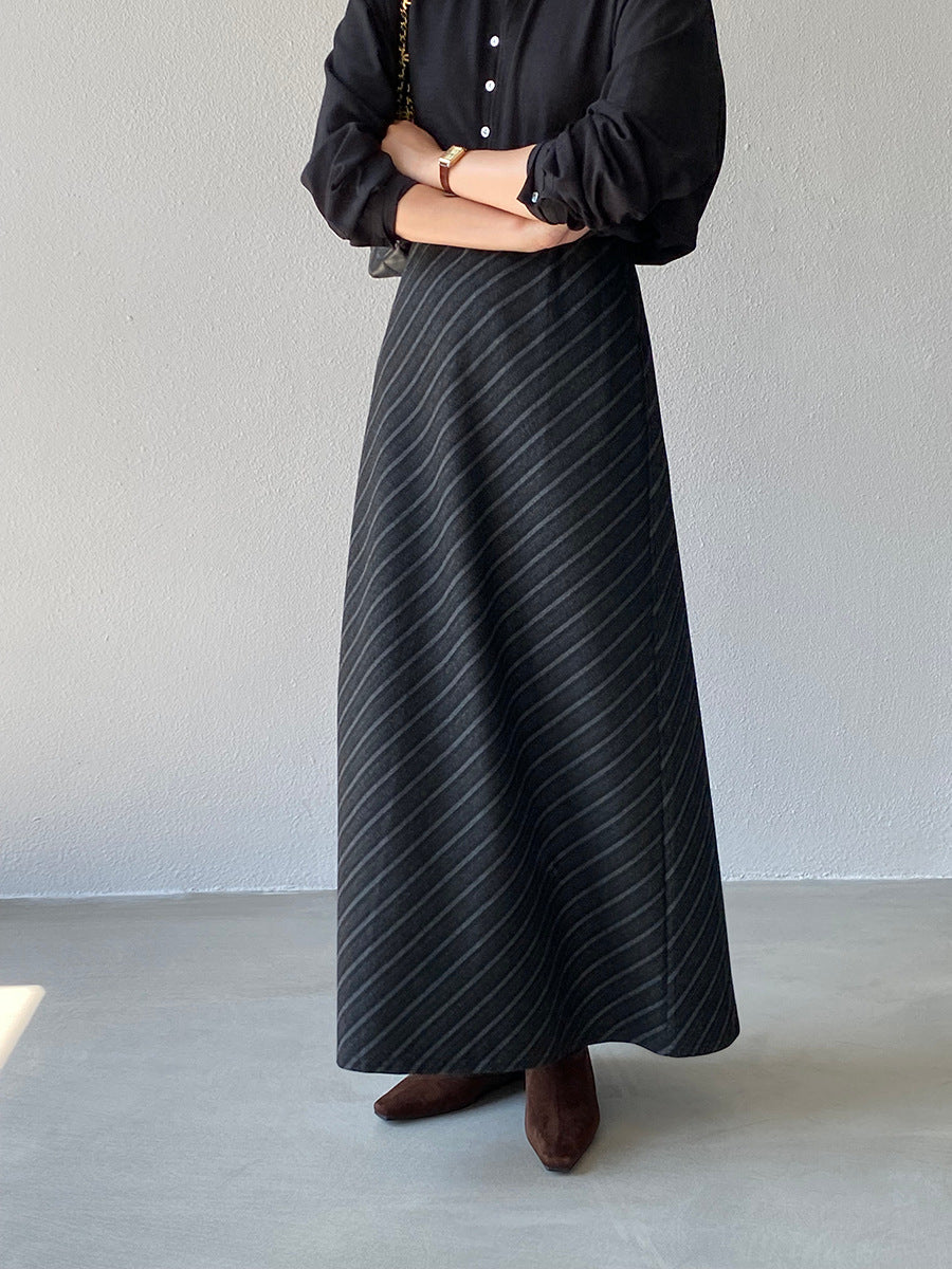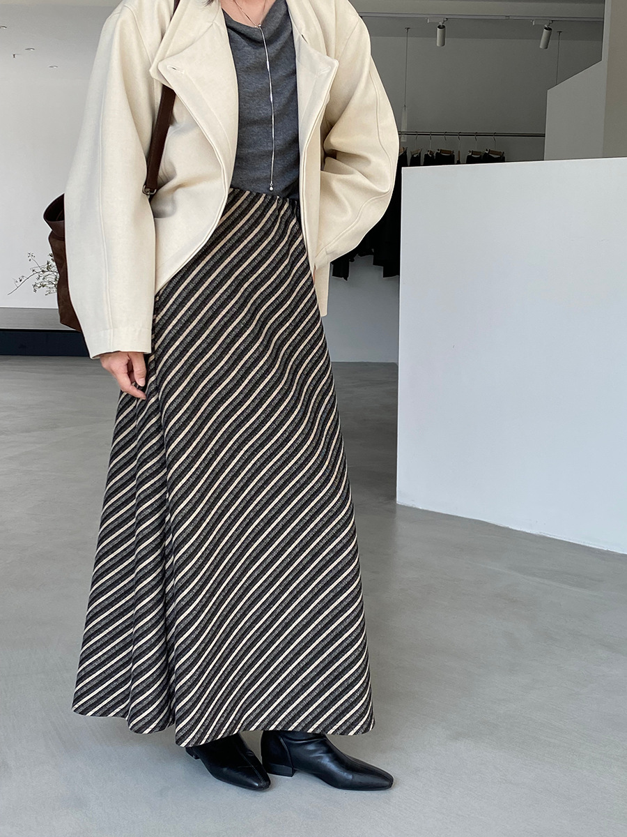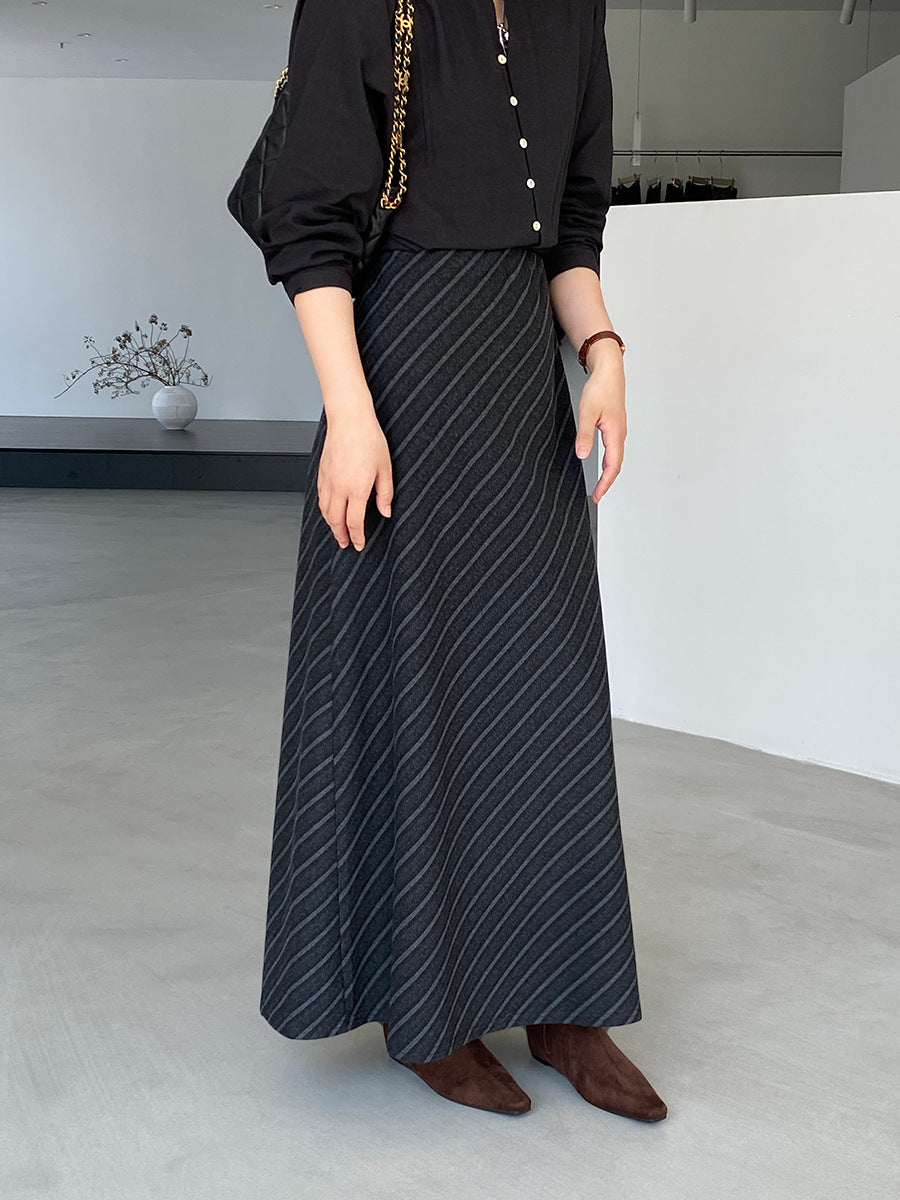 【cim2217】實拍時髦氣質斜紋高腰中長裙251030