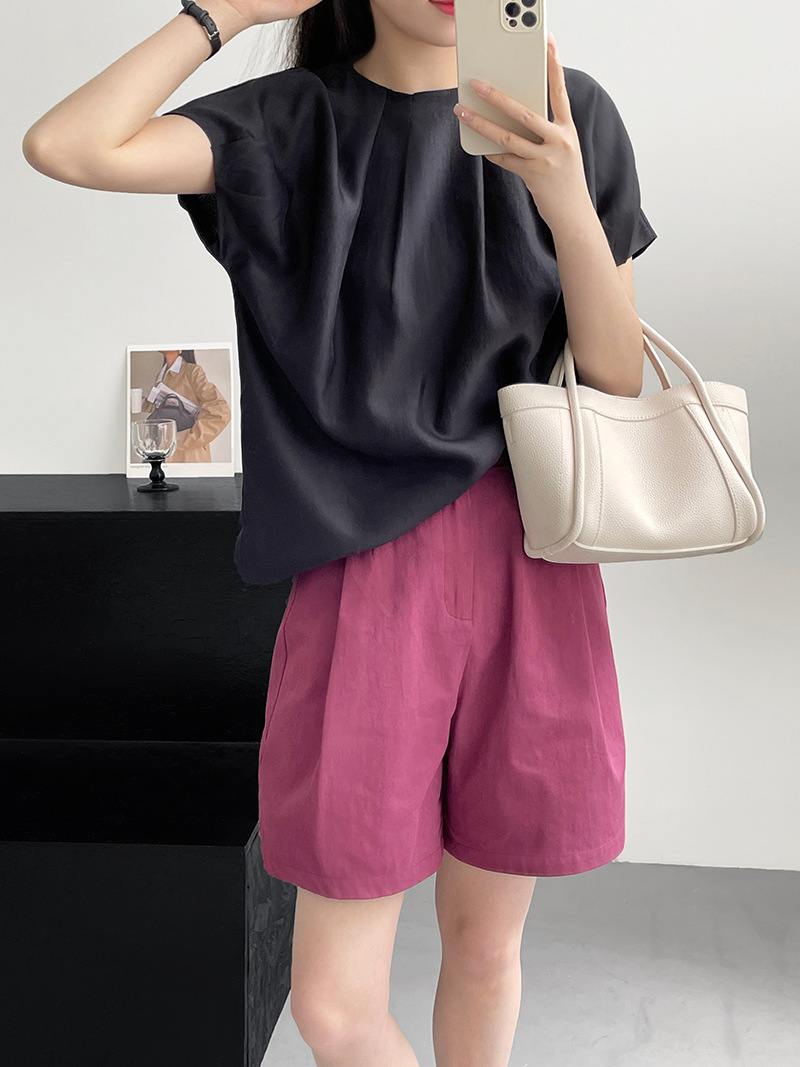 【cim2236】實拍夏季高級感天絲壓褶襯衫250710