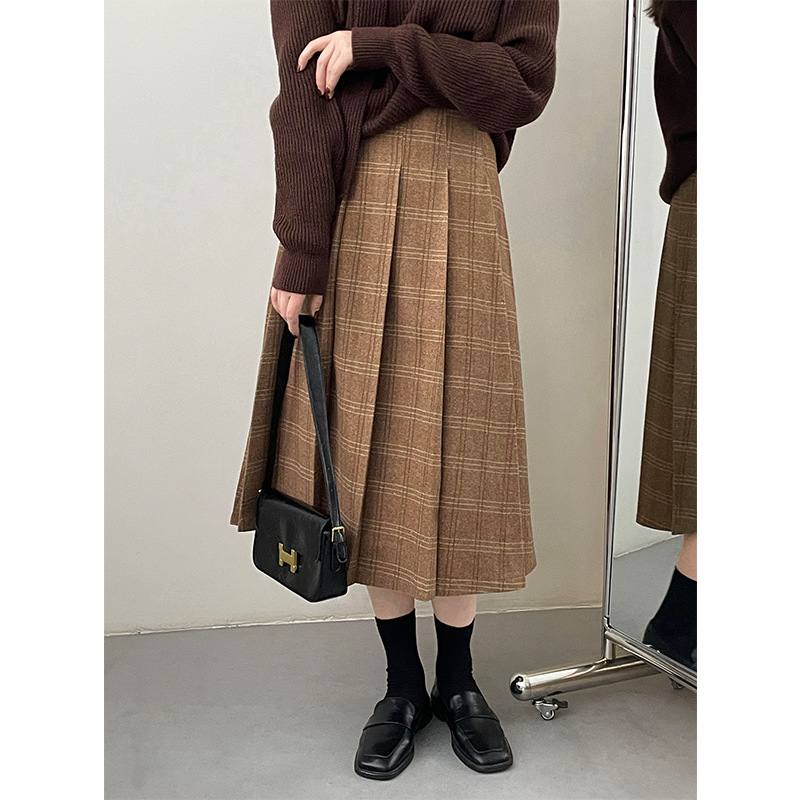 【cim2359】實拍秋冬經典復古格紋高腰A字裙241106