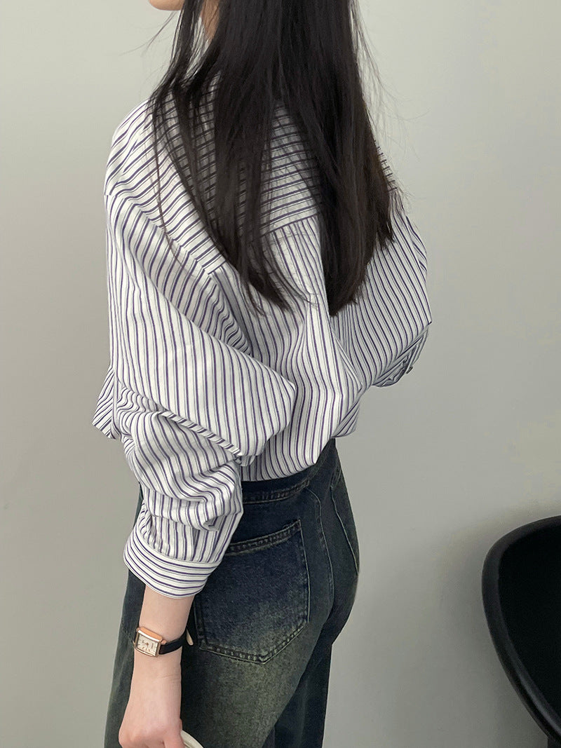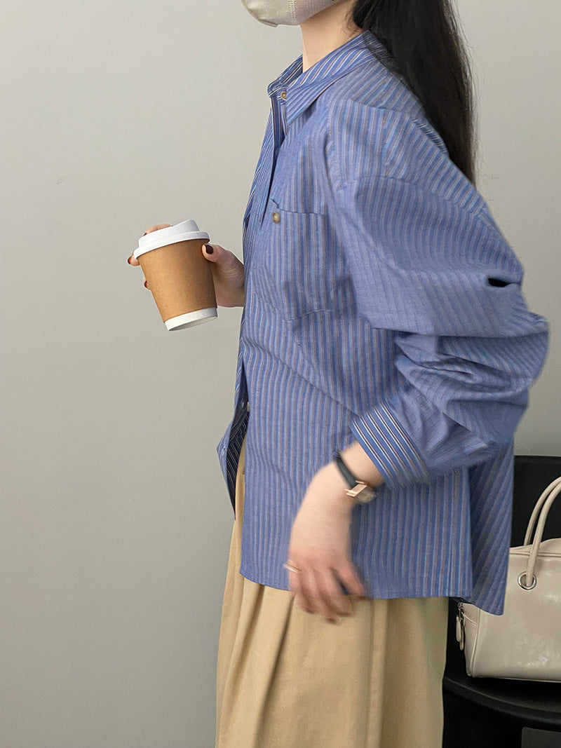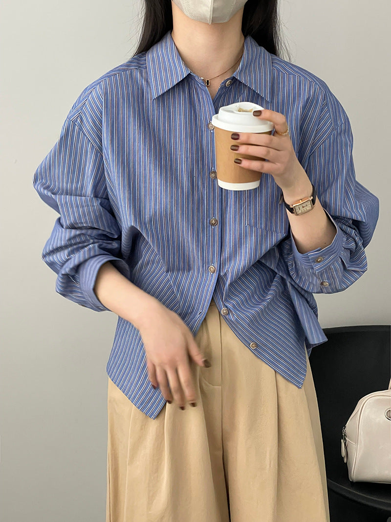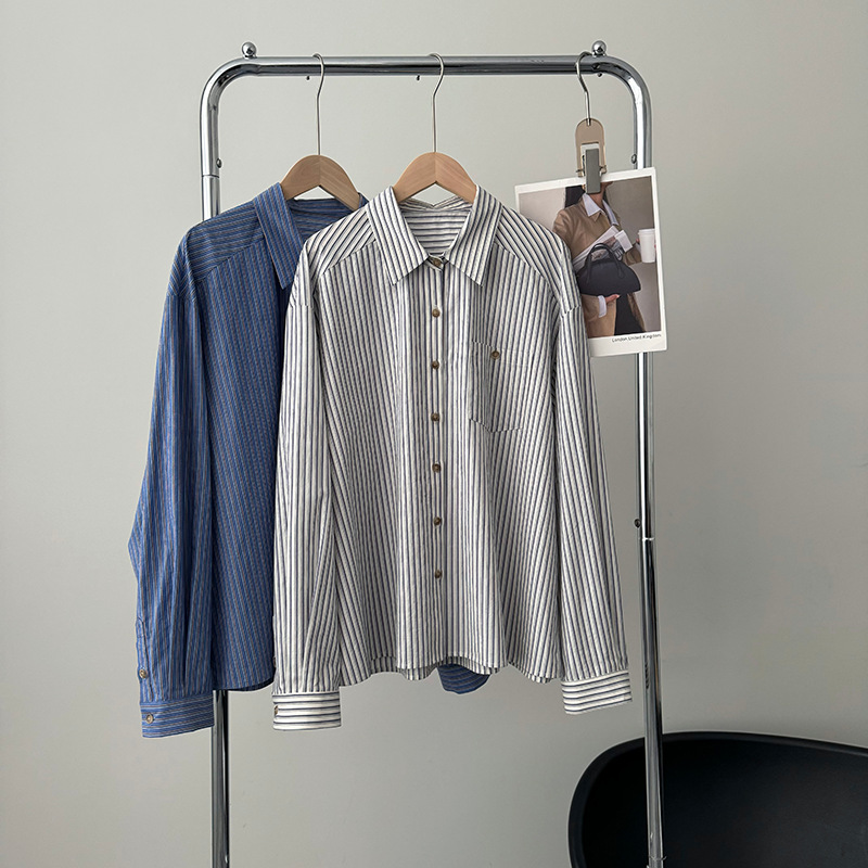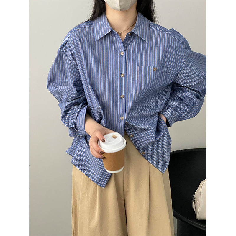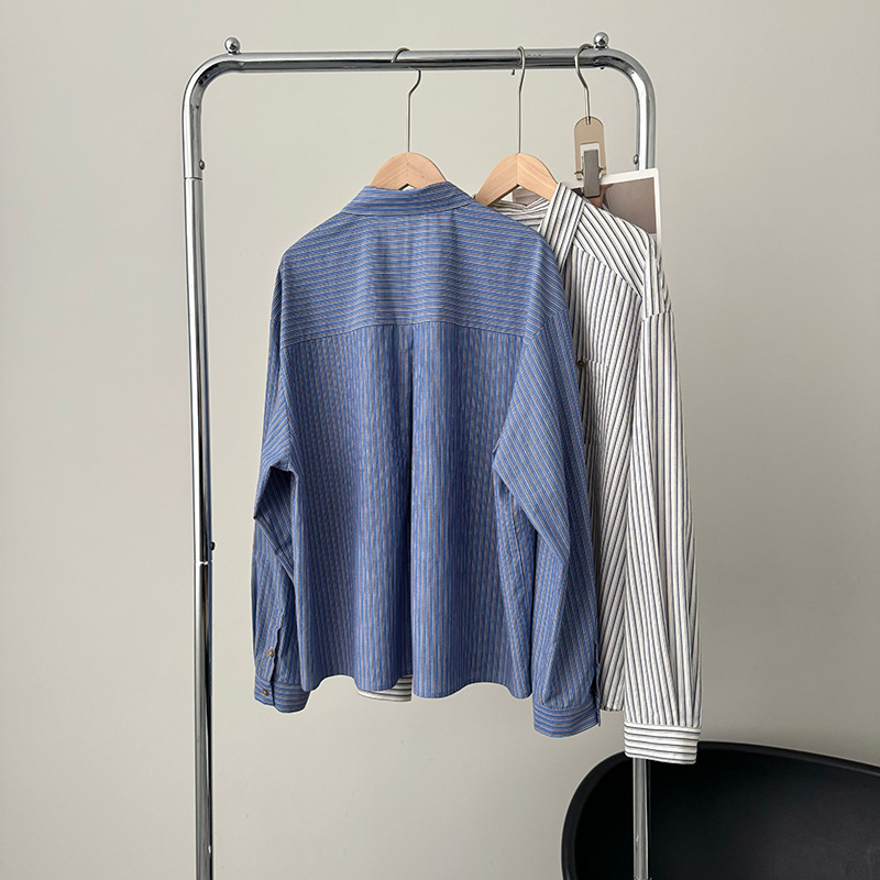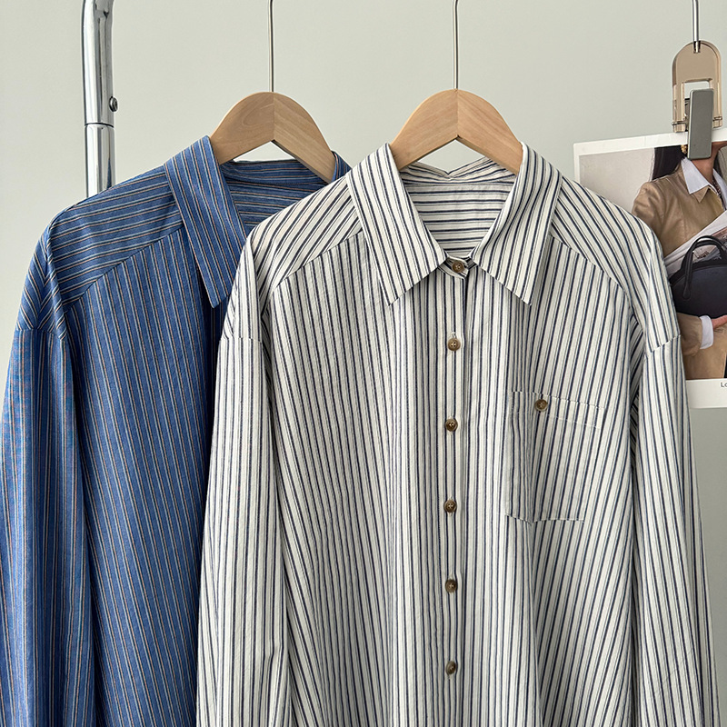 【cim2363】實拍早春寬鬆質感條紋襯衫cim25早春