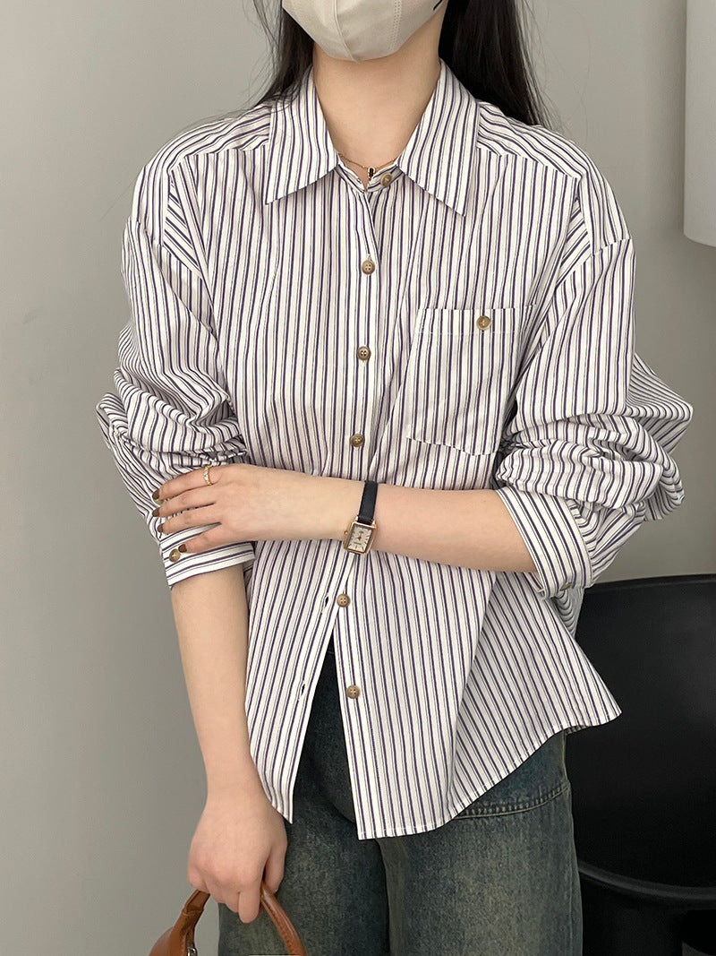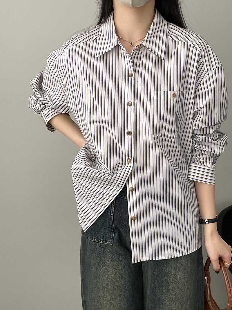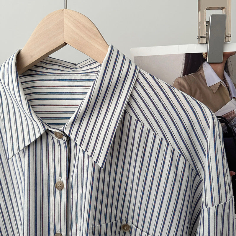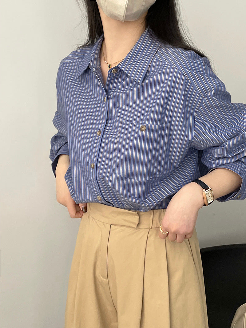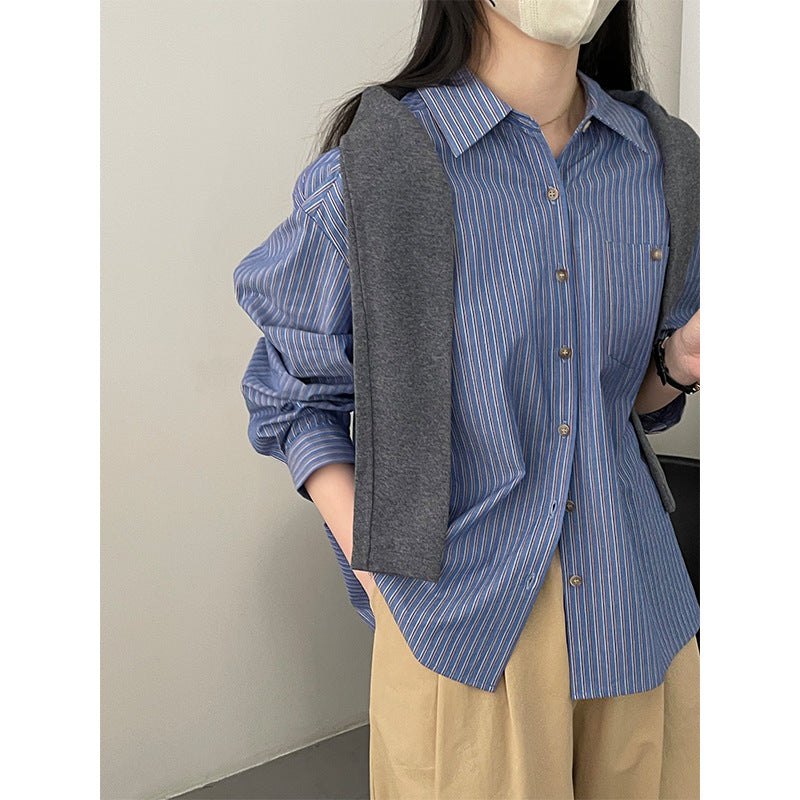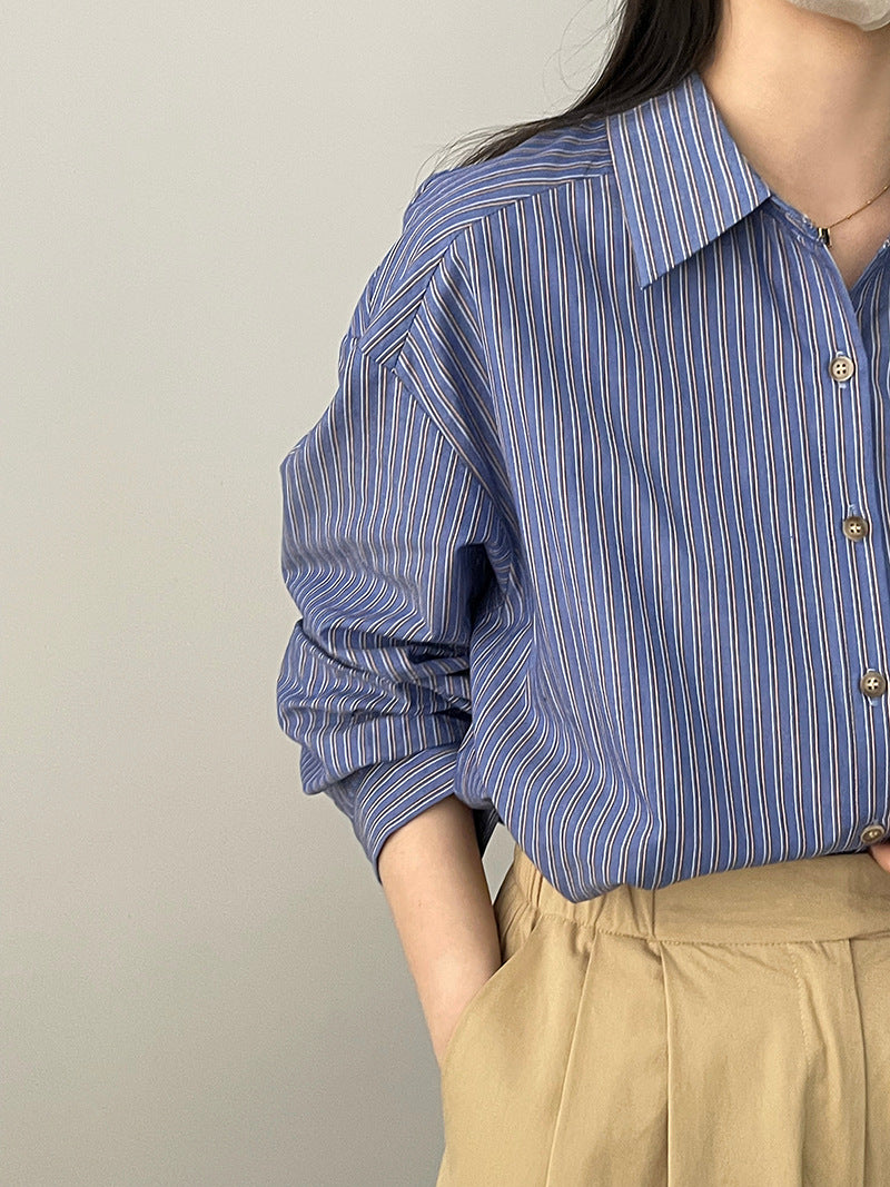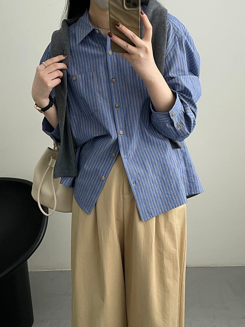 【cim2363】實拍早春寬鬆質感條紋襯衫cim25早春