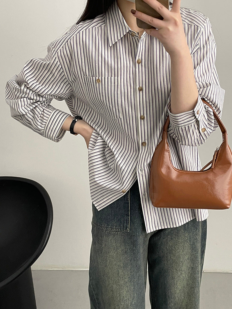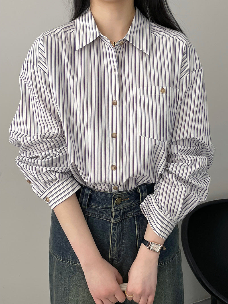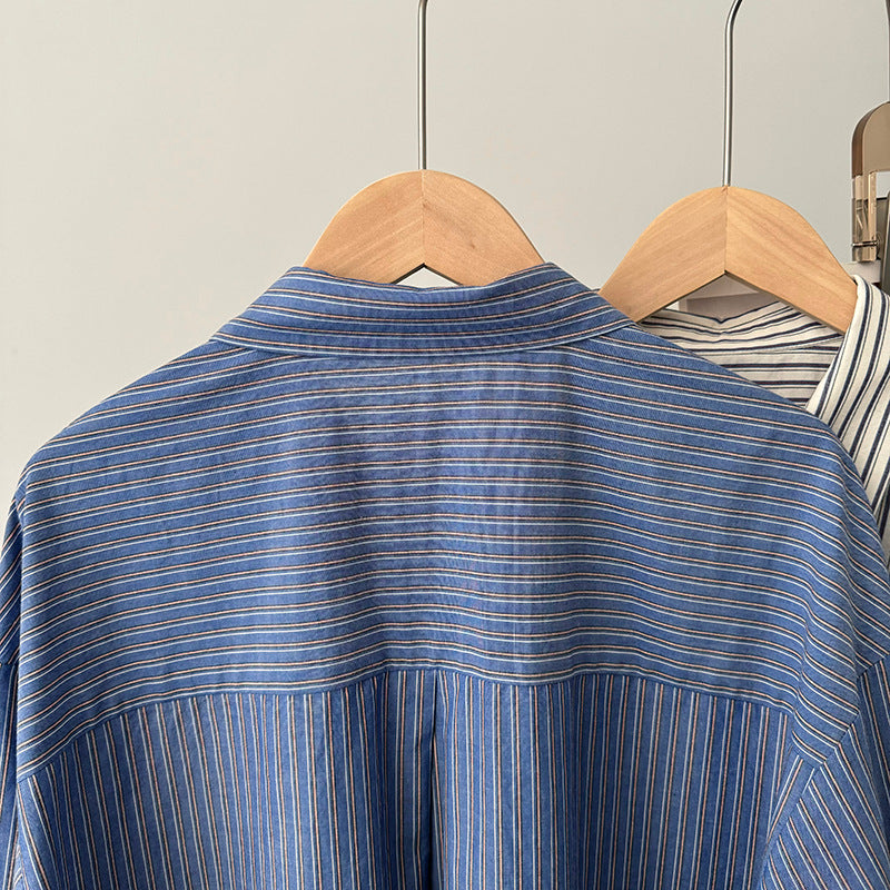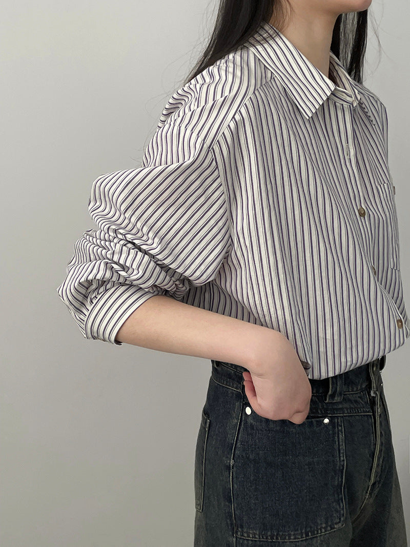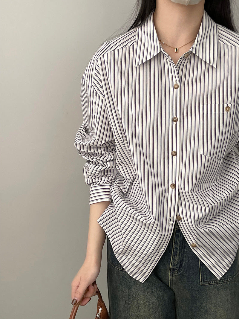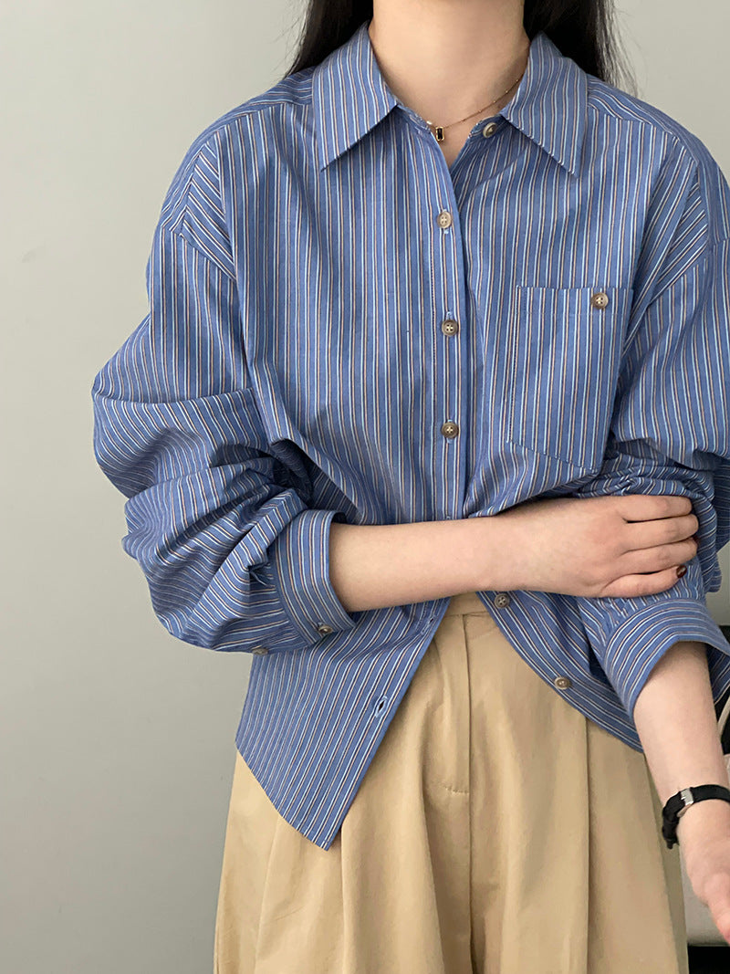 【cim2363】實拍早春寬鬆質感條紋襯衫cim25早春