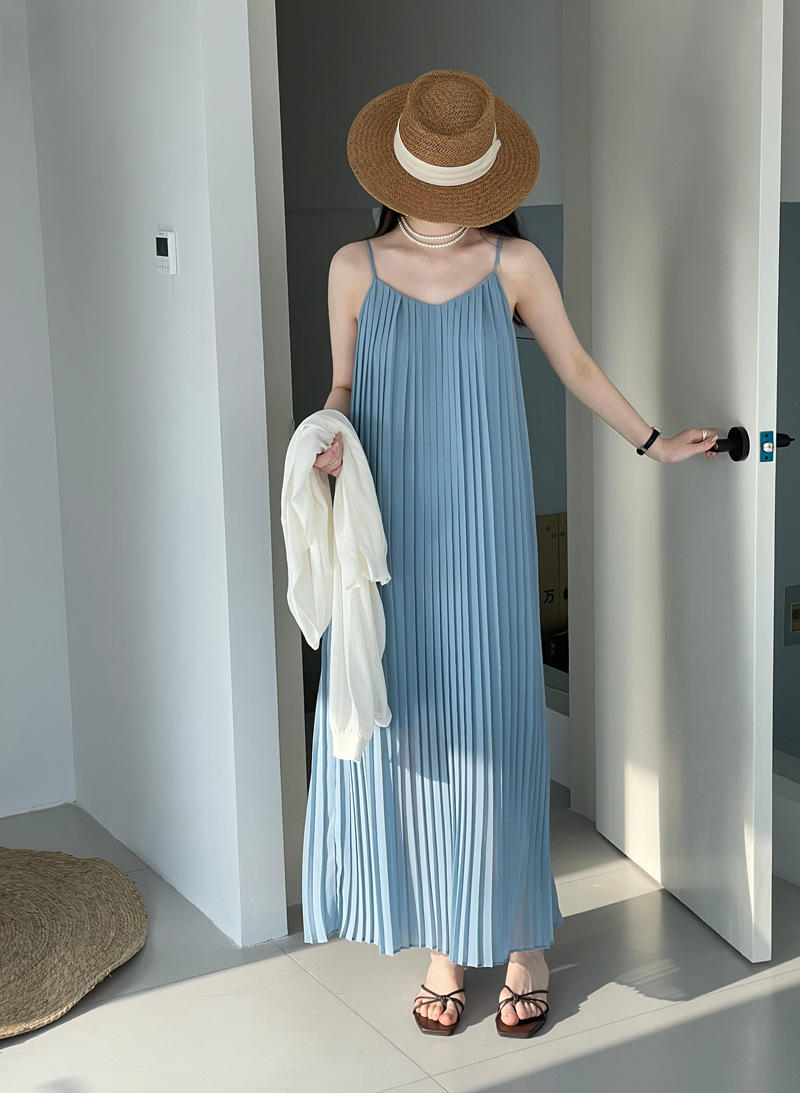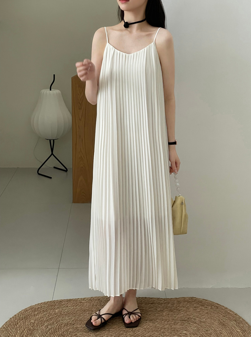 【cim2520】實拍法式優雅氣質壓摺吊帶裙(有內裡)