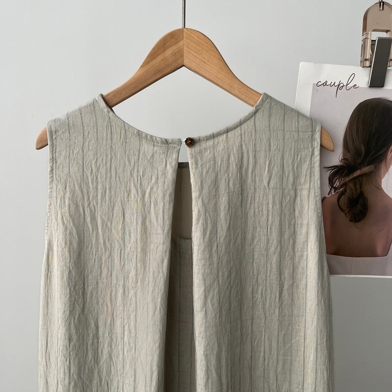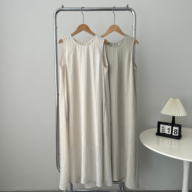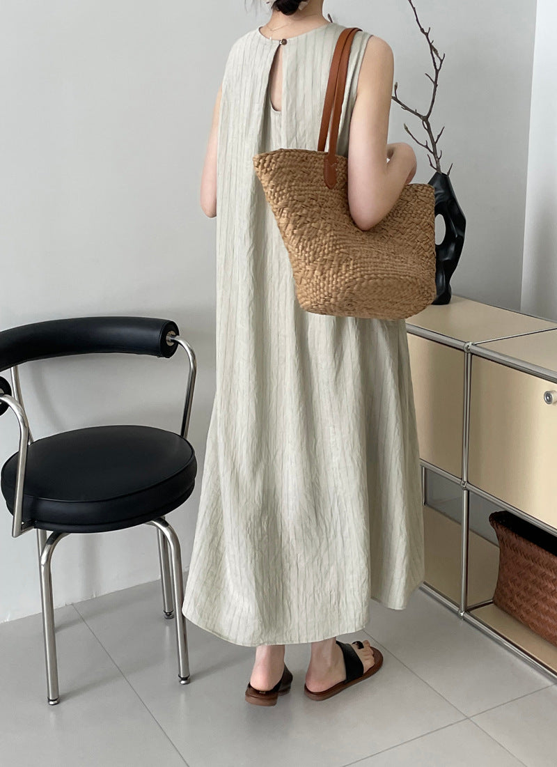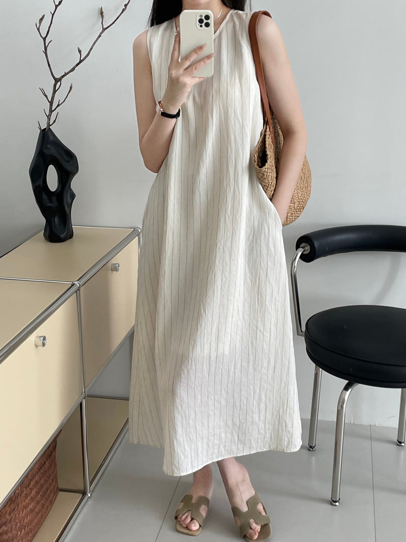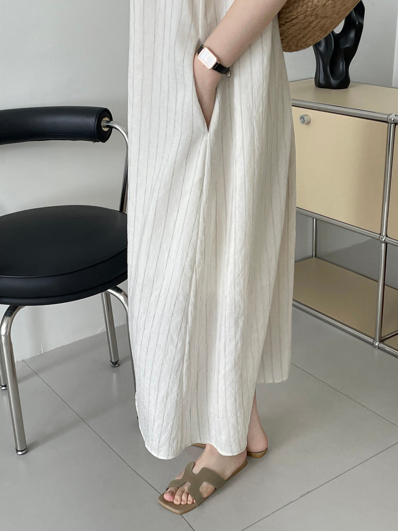 【cim2537】實拍舒適高級肌理感條紋洋裝有口袋,內裡(棉麻)250703