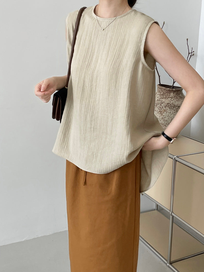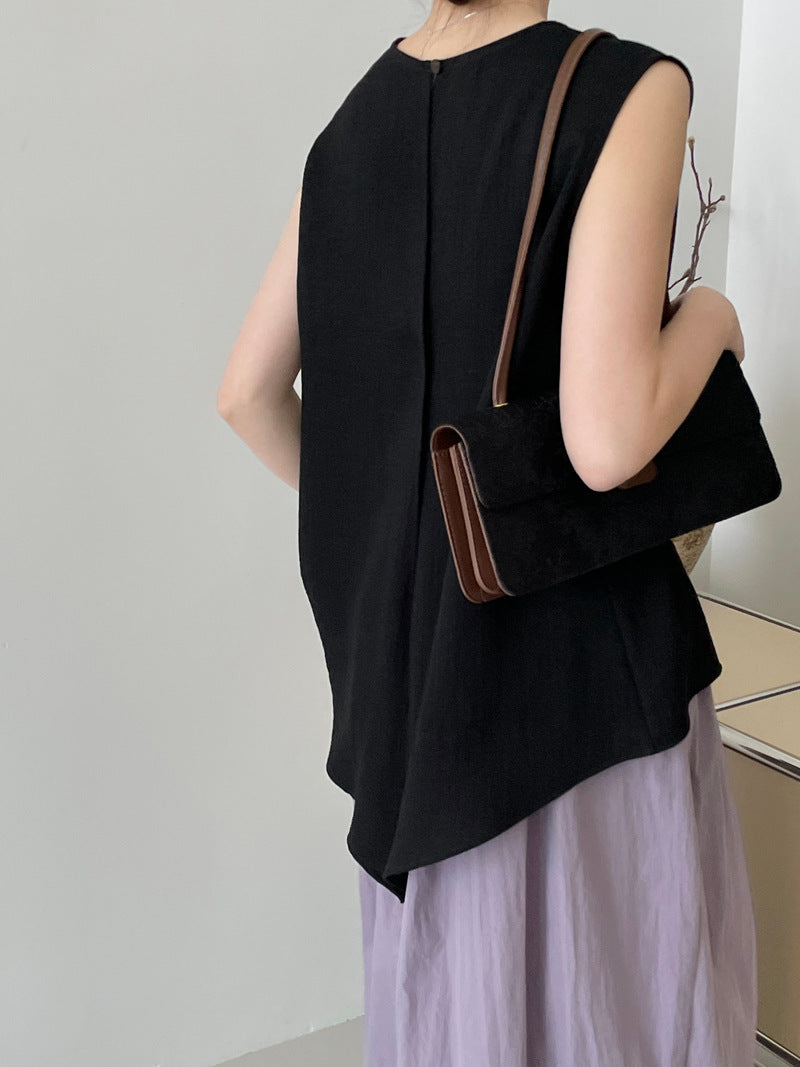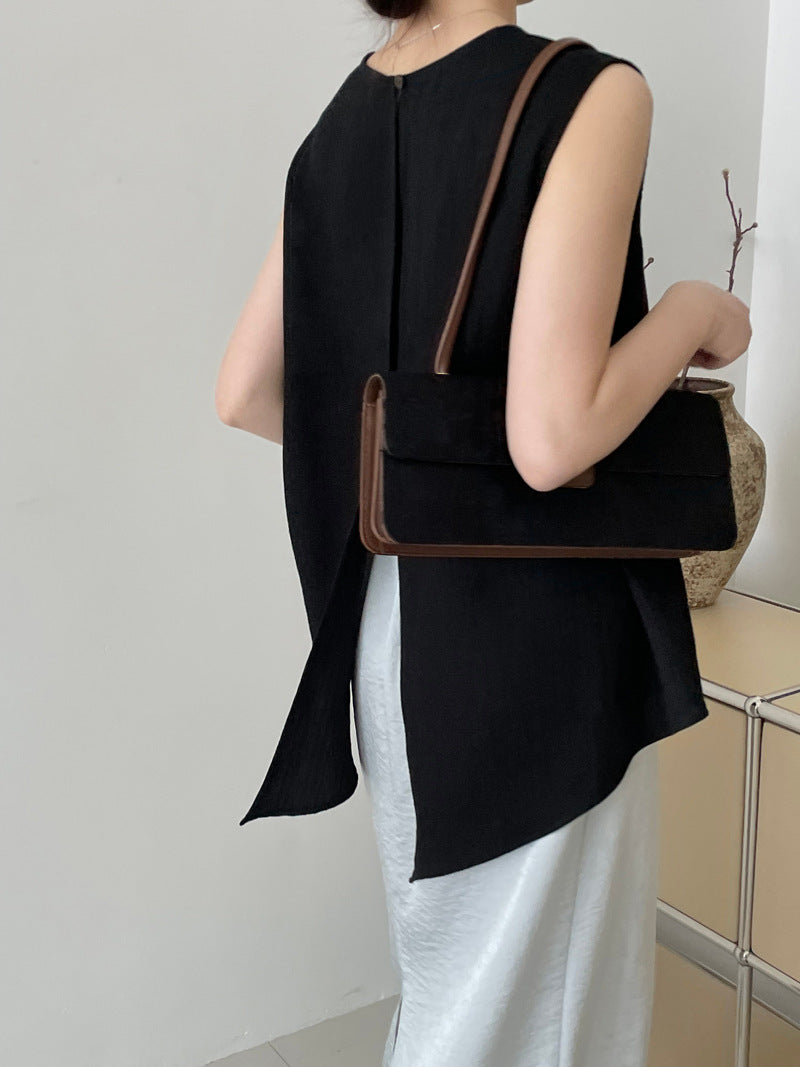 【cim2567】實拍設計感後背開叉圓領背心cim25早春