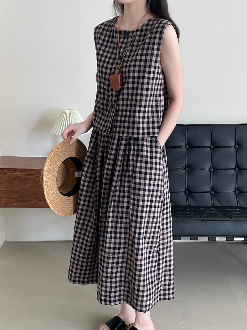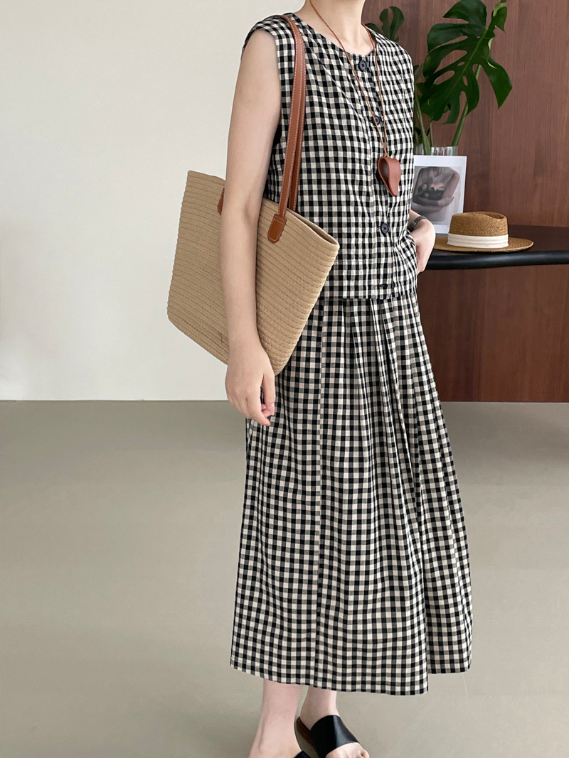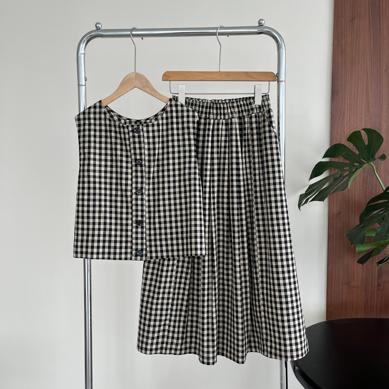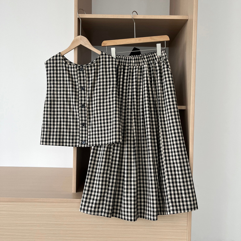 【cim2585】實拍日系復古休閒格紋襯衫+高腰鬆緊A字裙250508