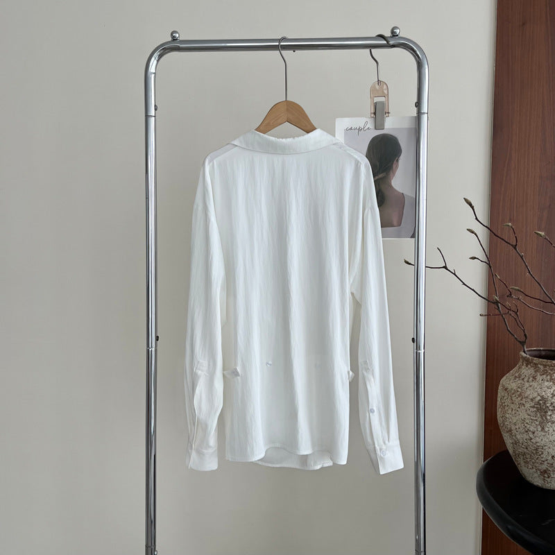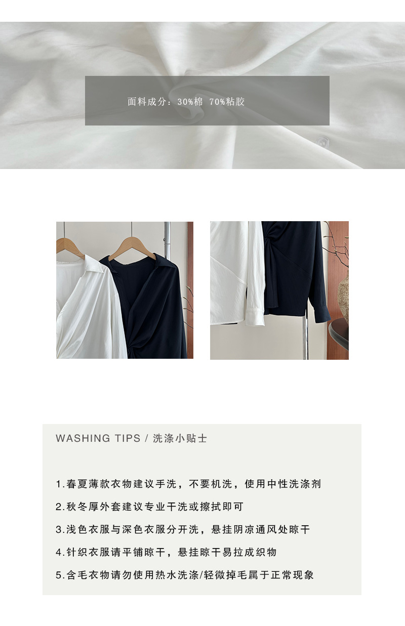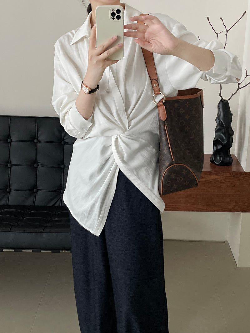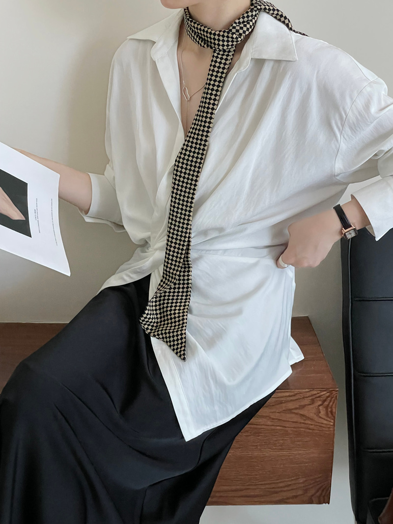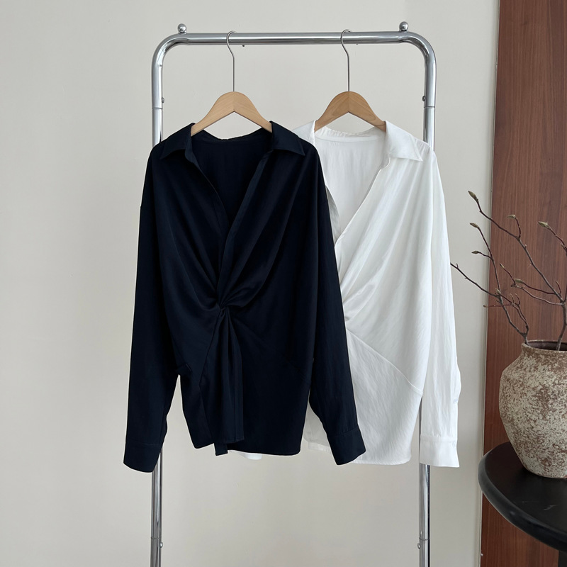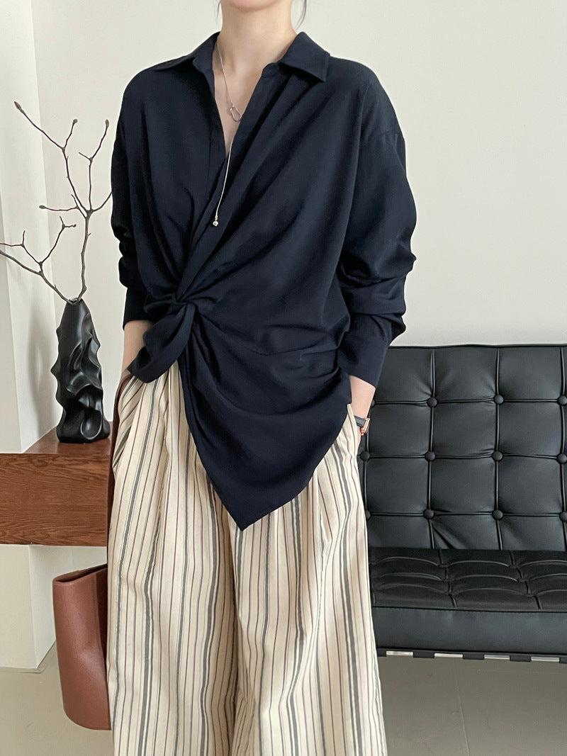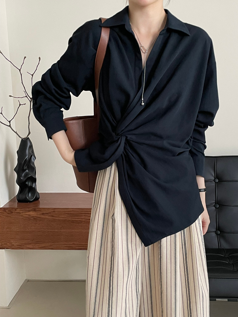 【cim2589】實拍法式設計款腰間扭結可調長袖襯衫cim25早春