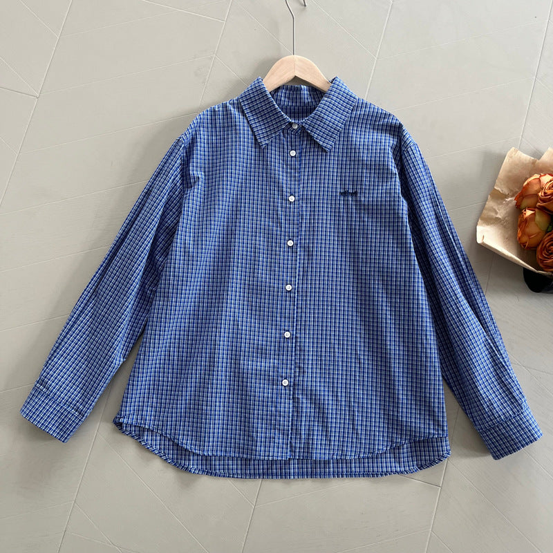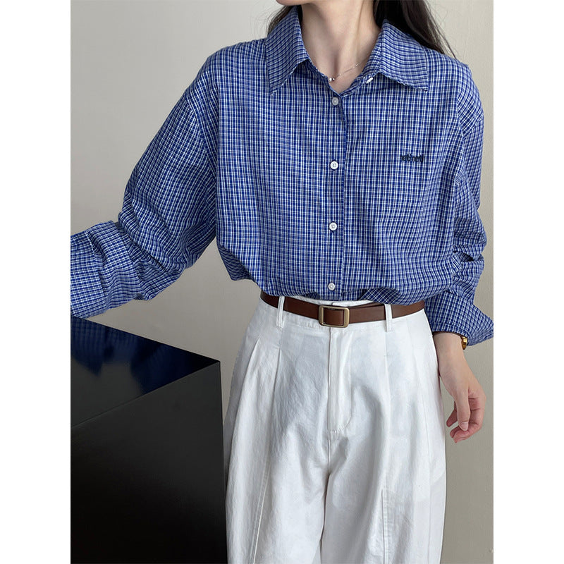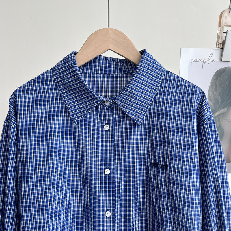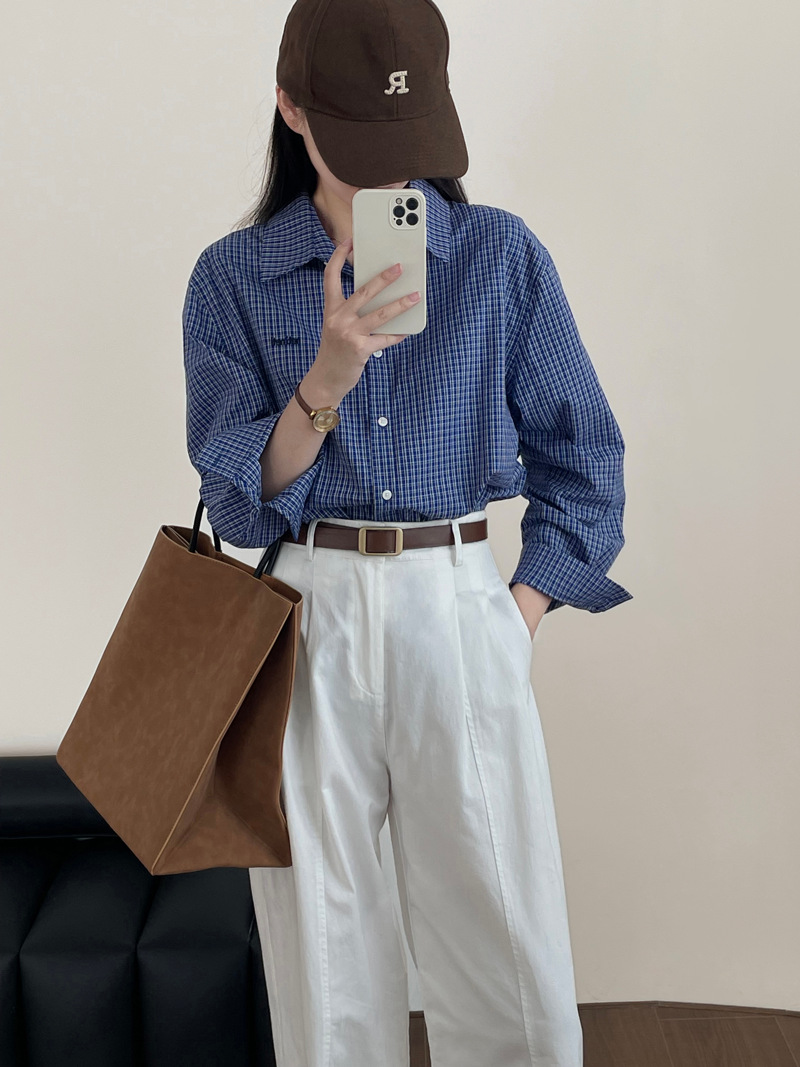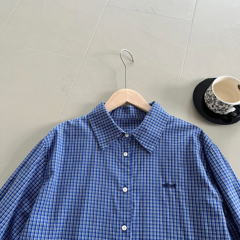 【cim2625】實拍韓國中性藍格純棉襯衫cim25早春