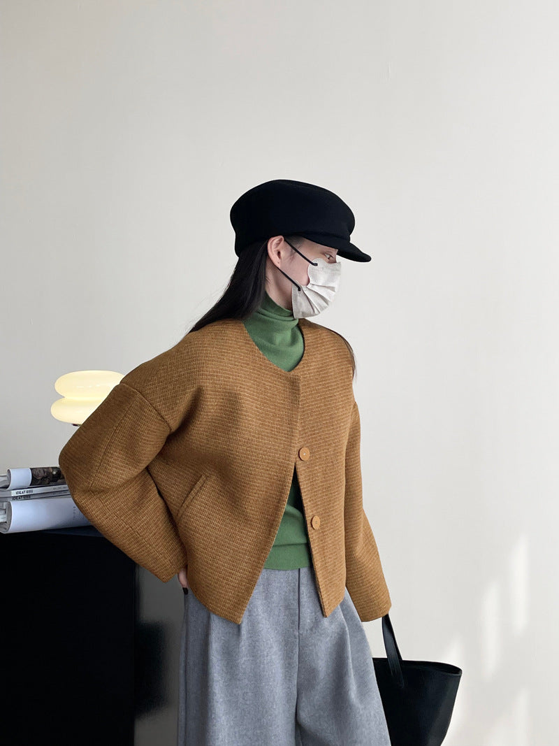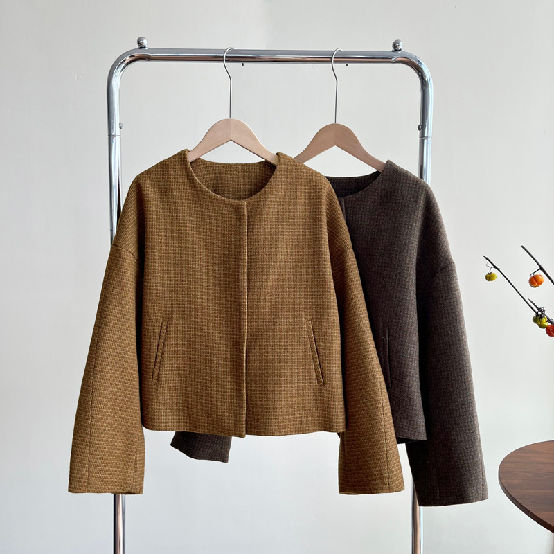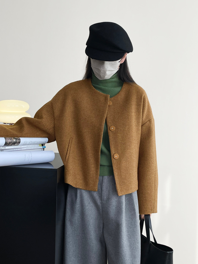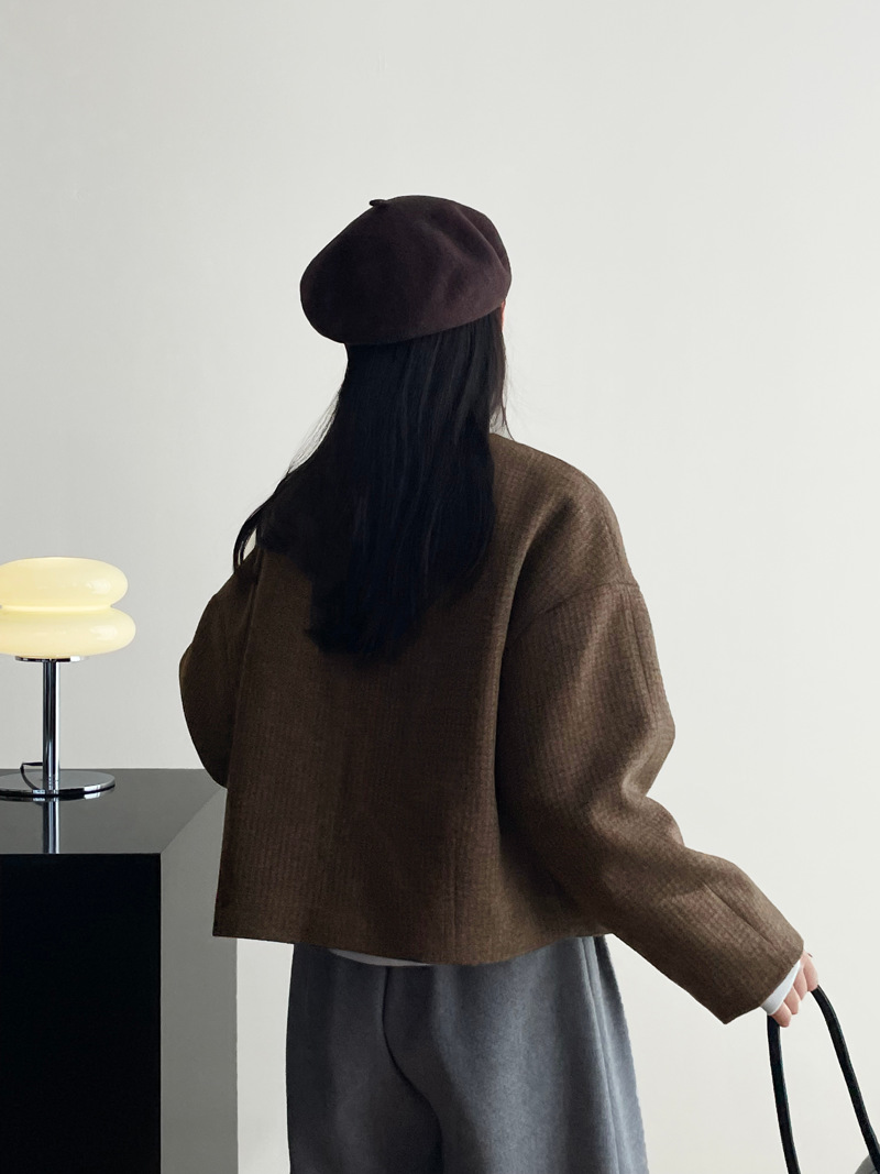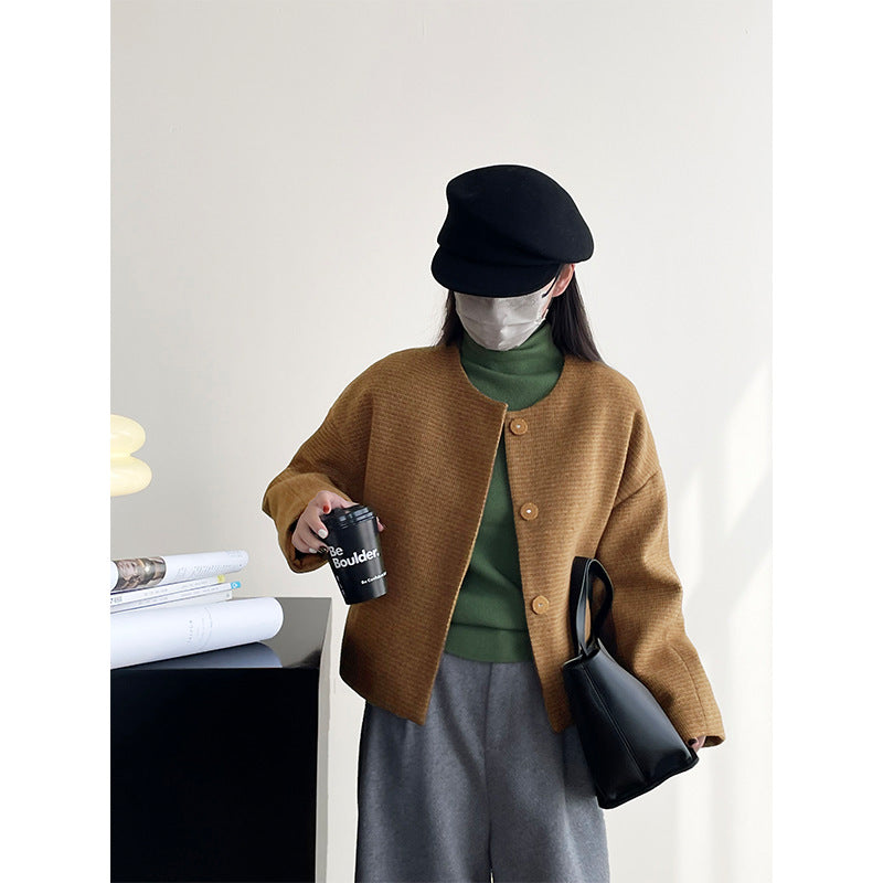 【cim2639】實拍韓國圓領羊毛呢短版內夾棉外套(羊毛40)241016