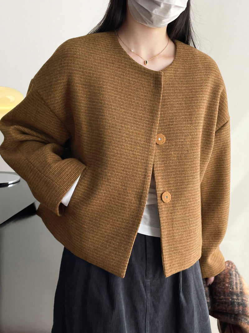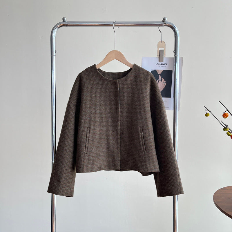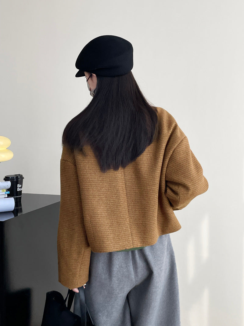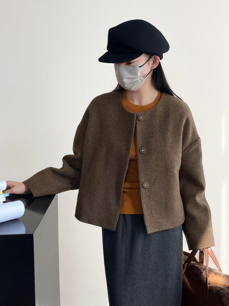 【cim2639】實拍韓國圓領羊毛呢短版內夾棉外套(羊毛40)241016