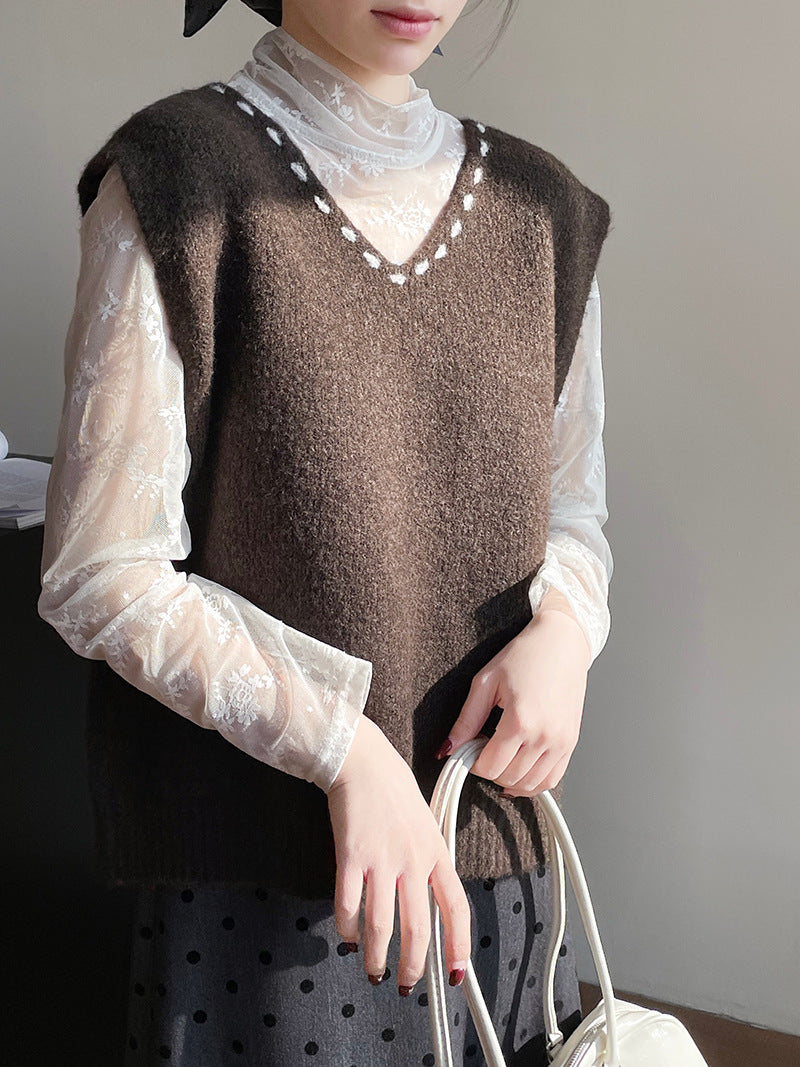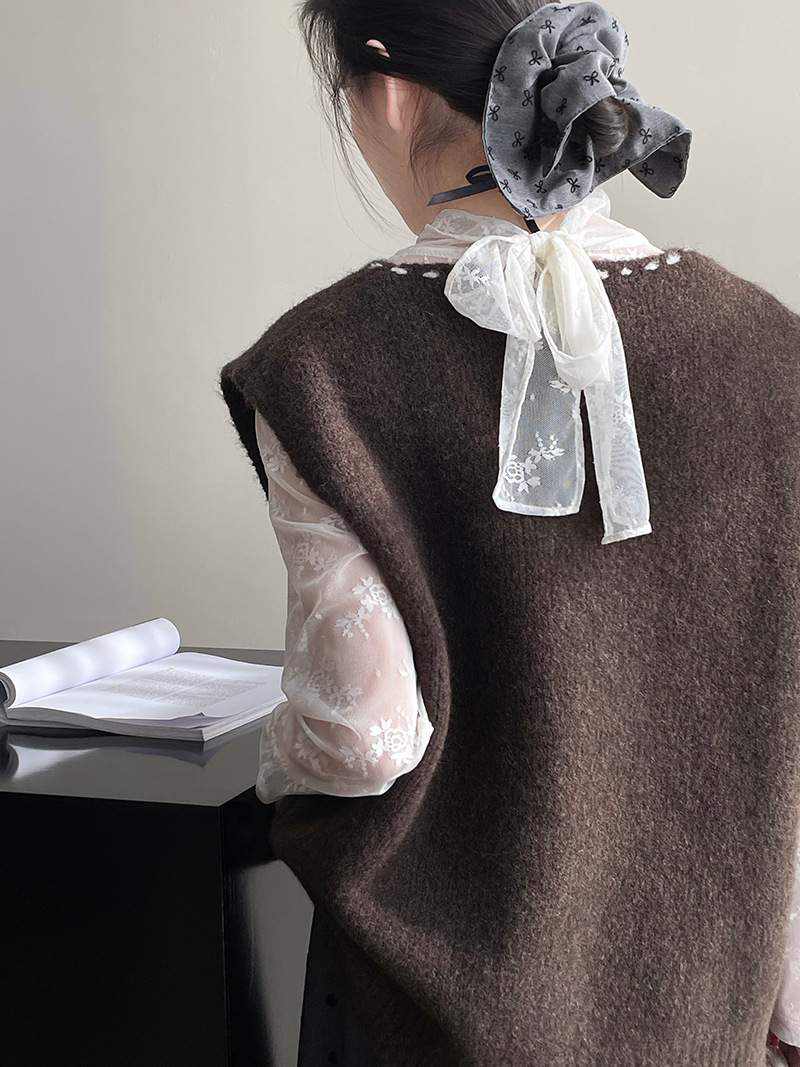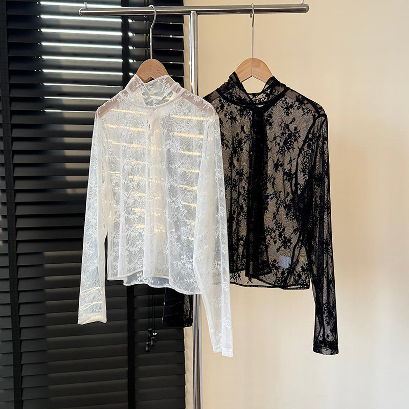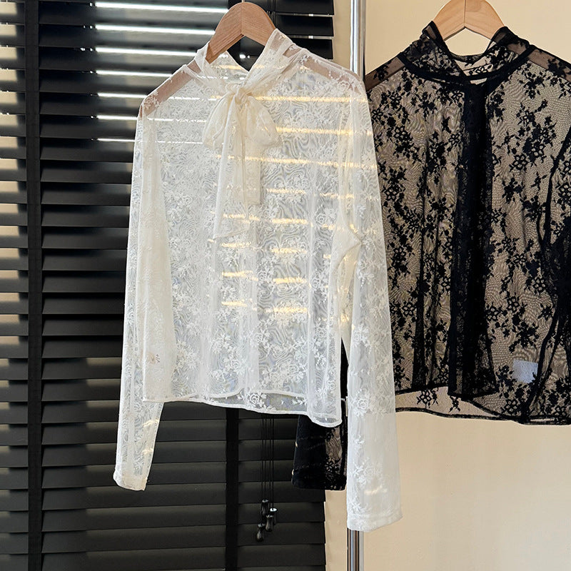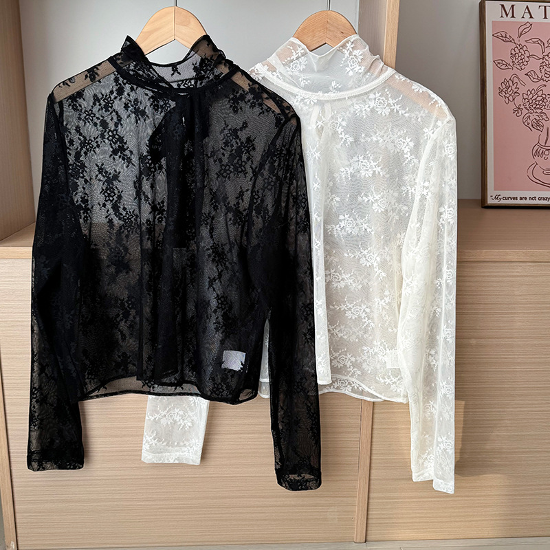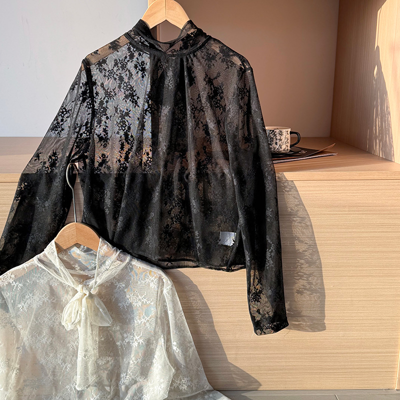 【cim2669】實拍早春內搭後繫帶蕾絲衫250108