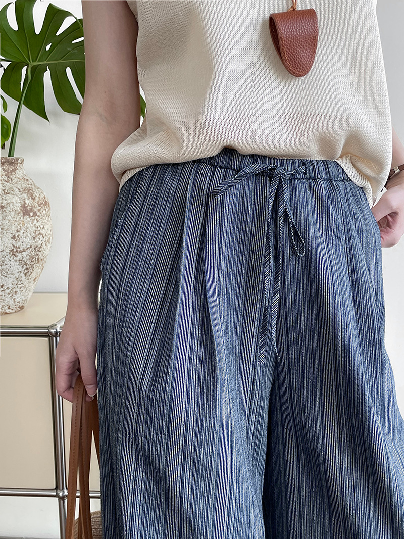 【cim2710】實拍夏日棉質條紋抽繩闊腿褲250417