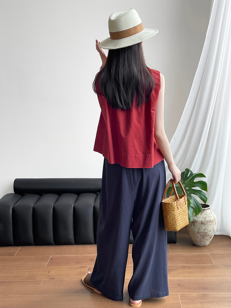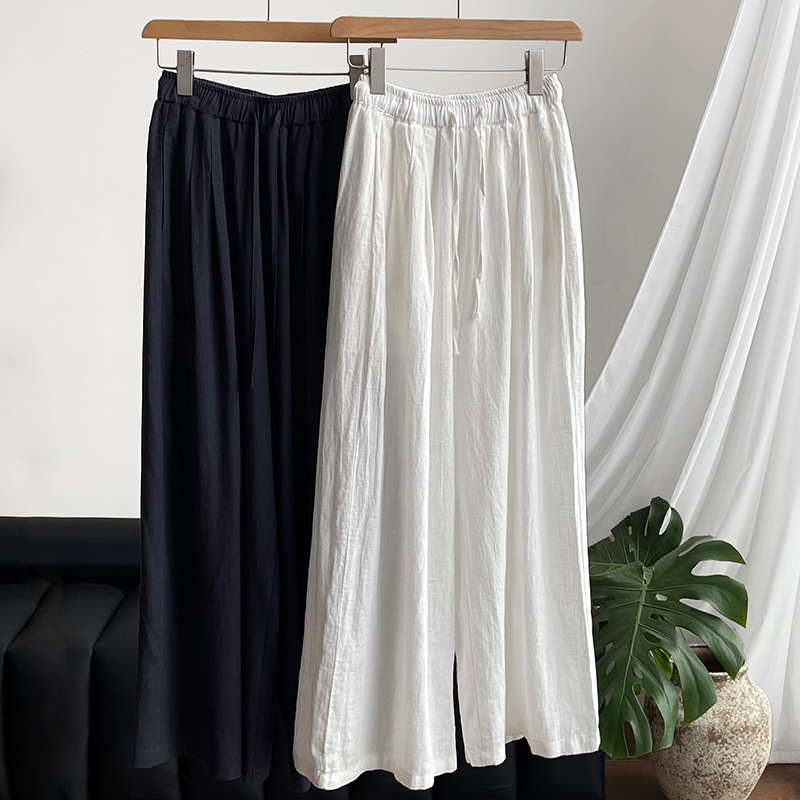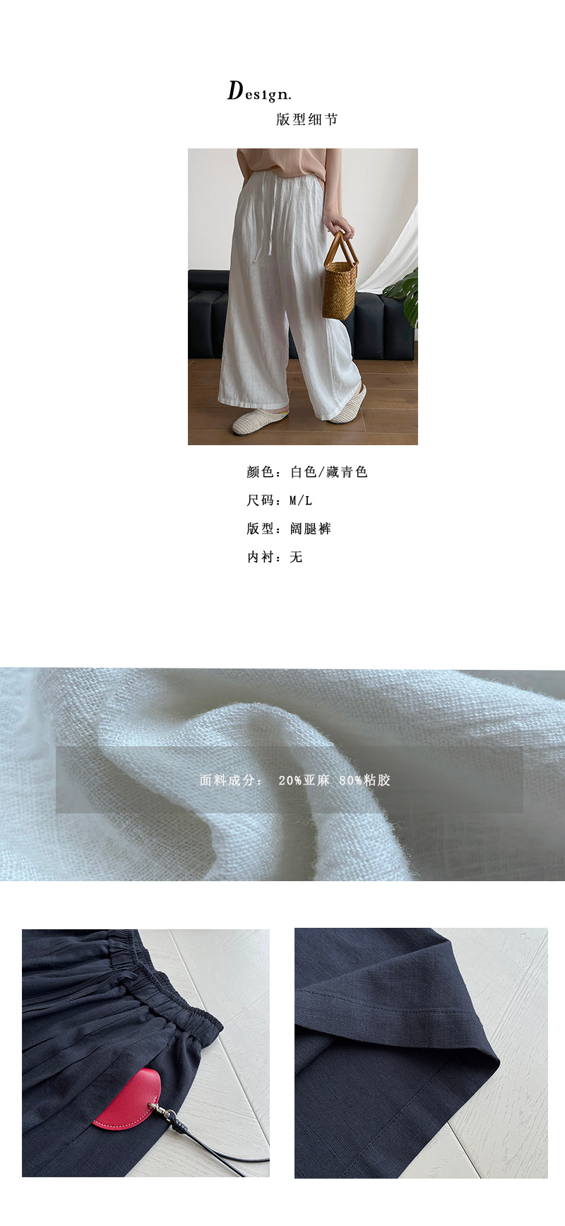 【cim2721】實拍夏季涼感亞麻高腰抽繩休閒長褲250508
