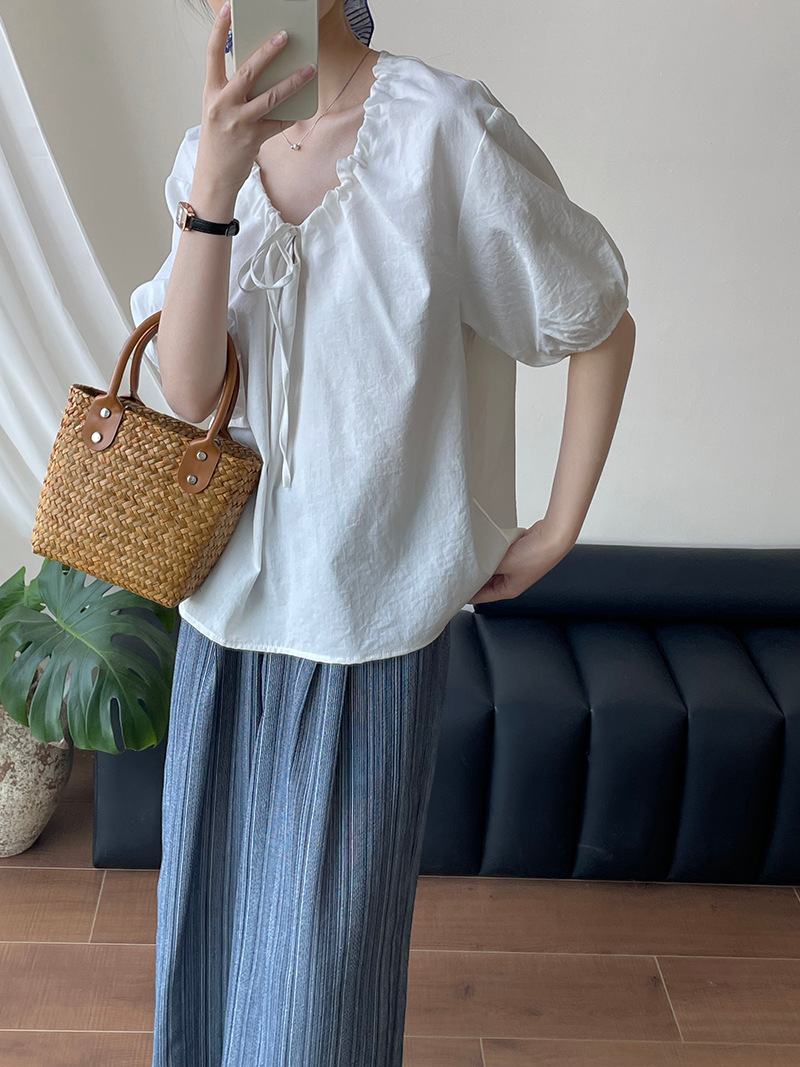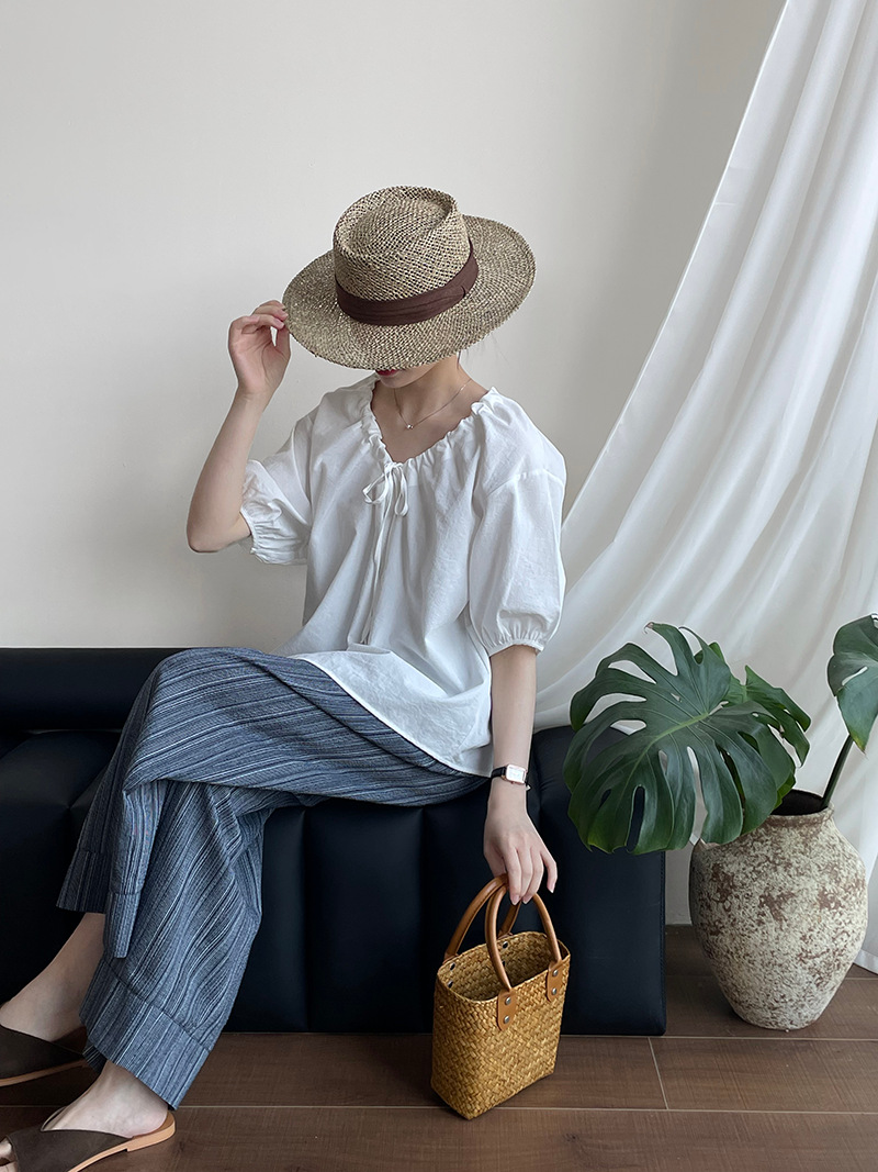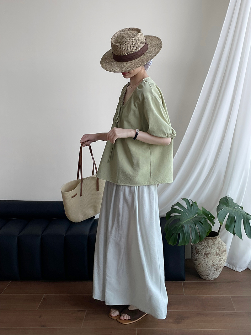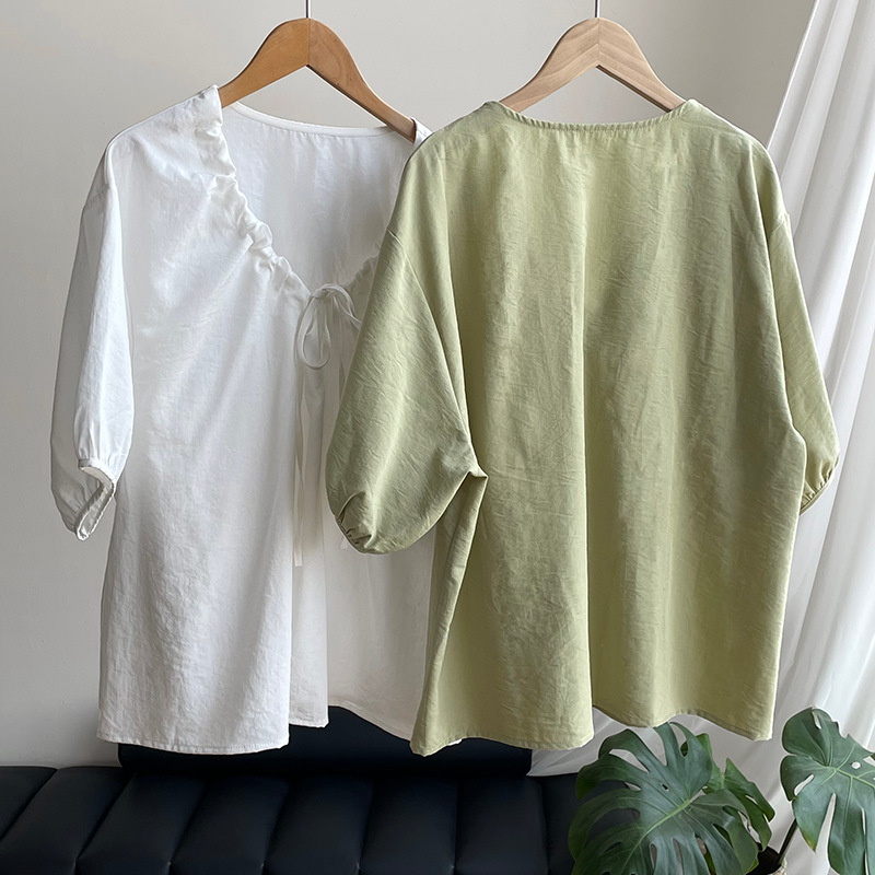 【cim2738】實拍夏季天絲混棉抽繩罩衫250522
