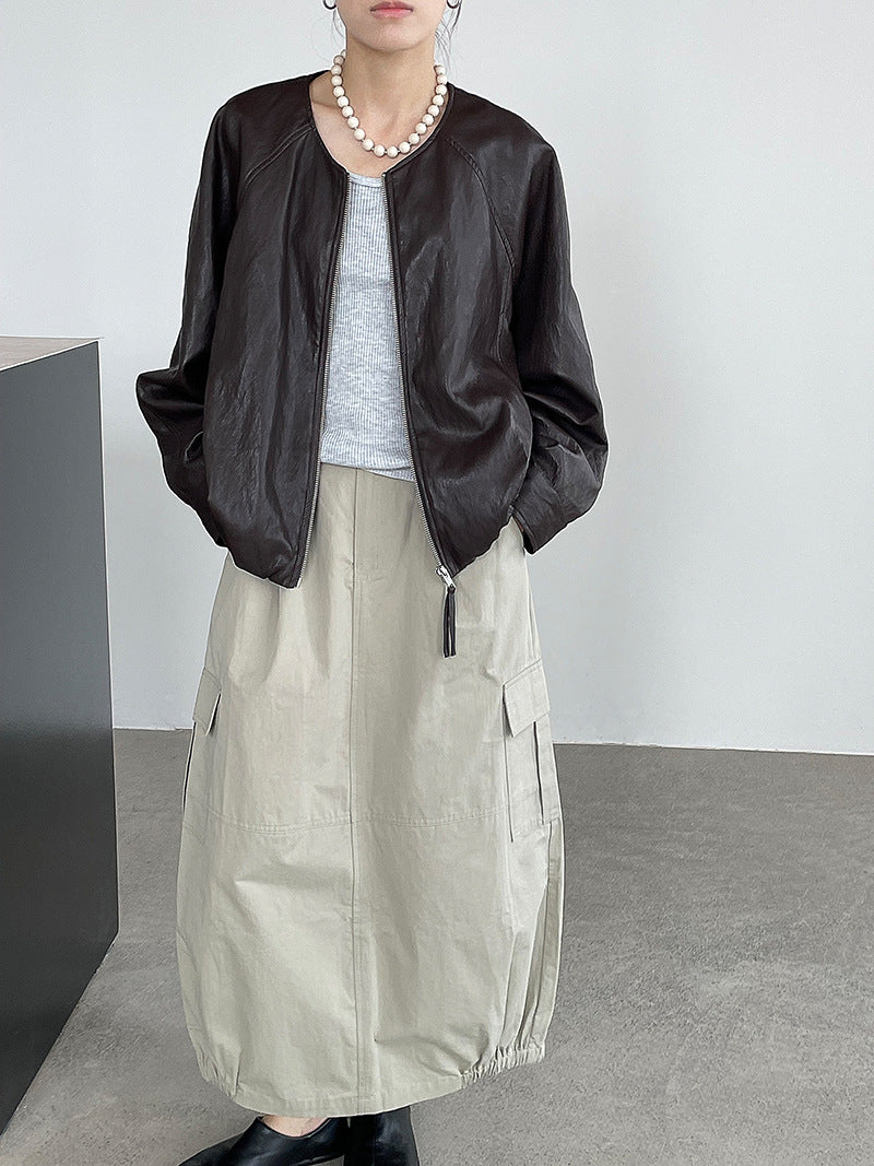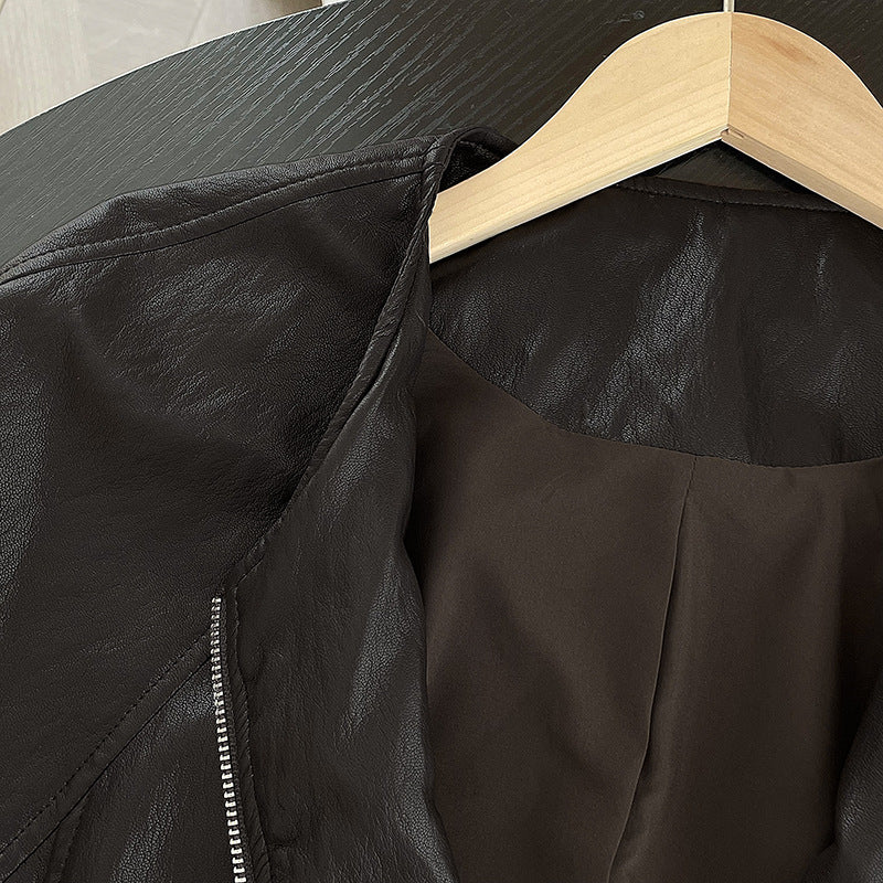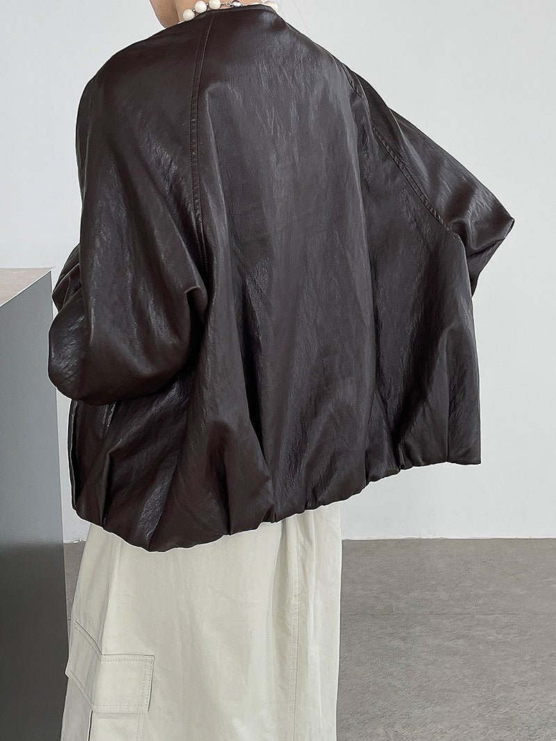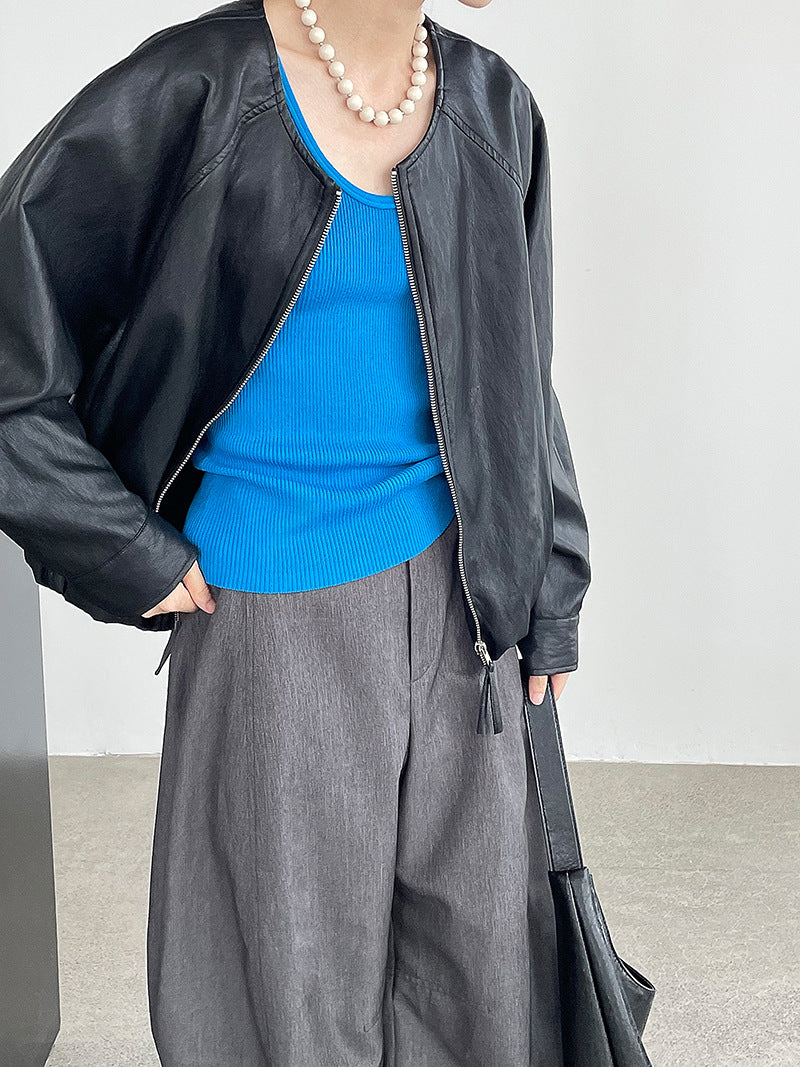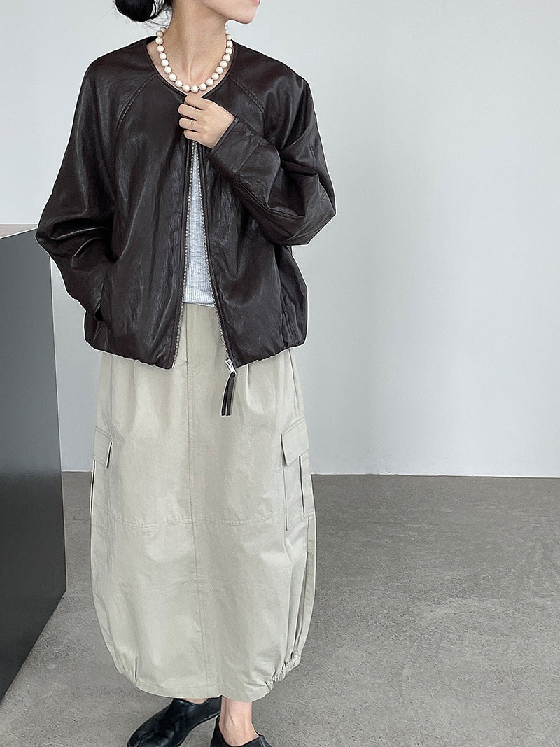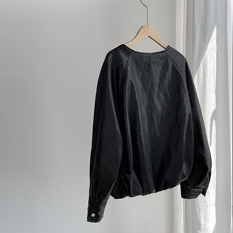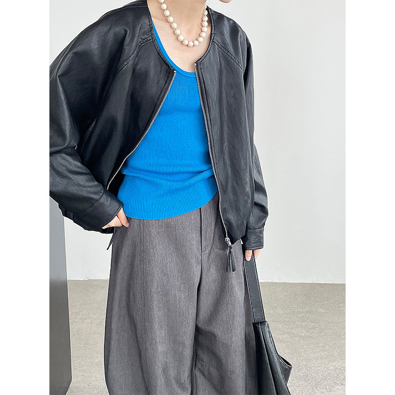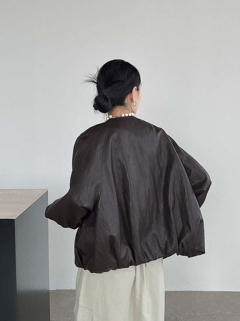 【cim2786】實拍高級小圓領柔軟pu皮外套皮衣251002