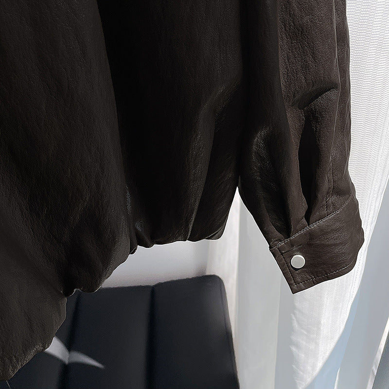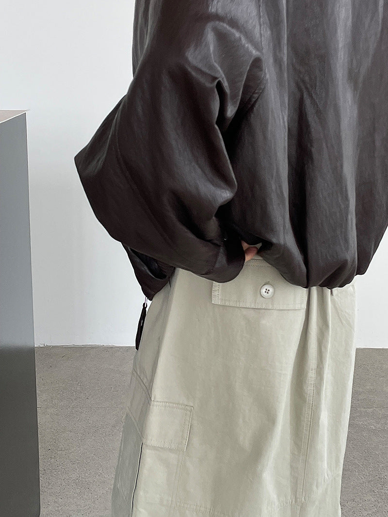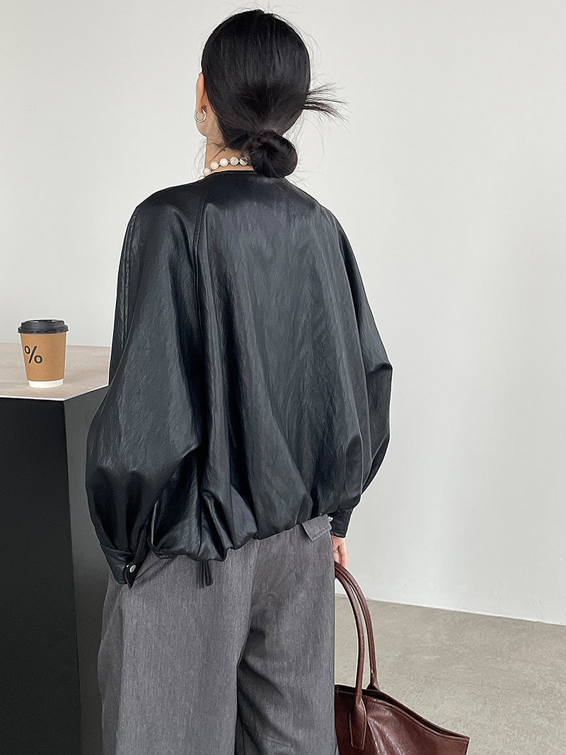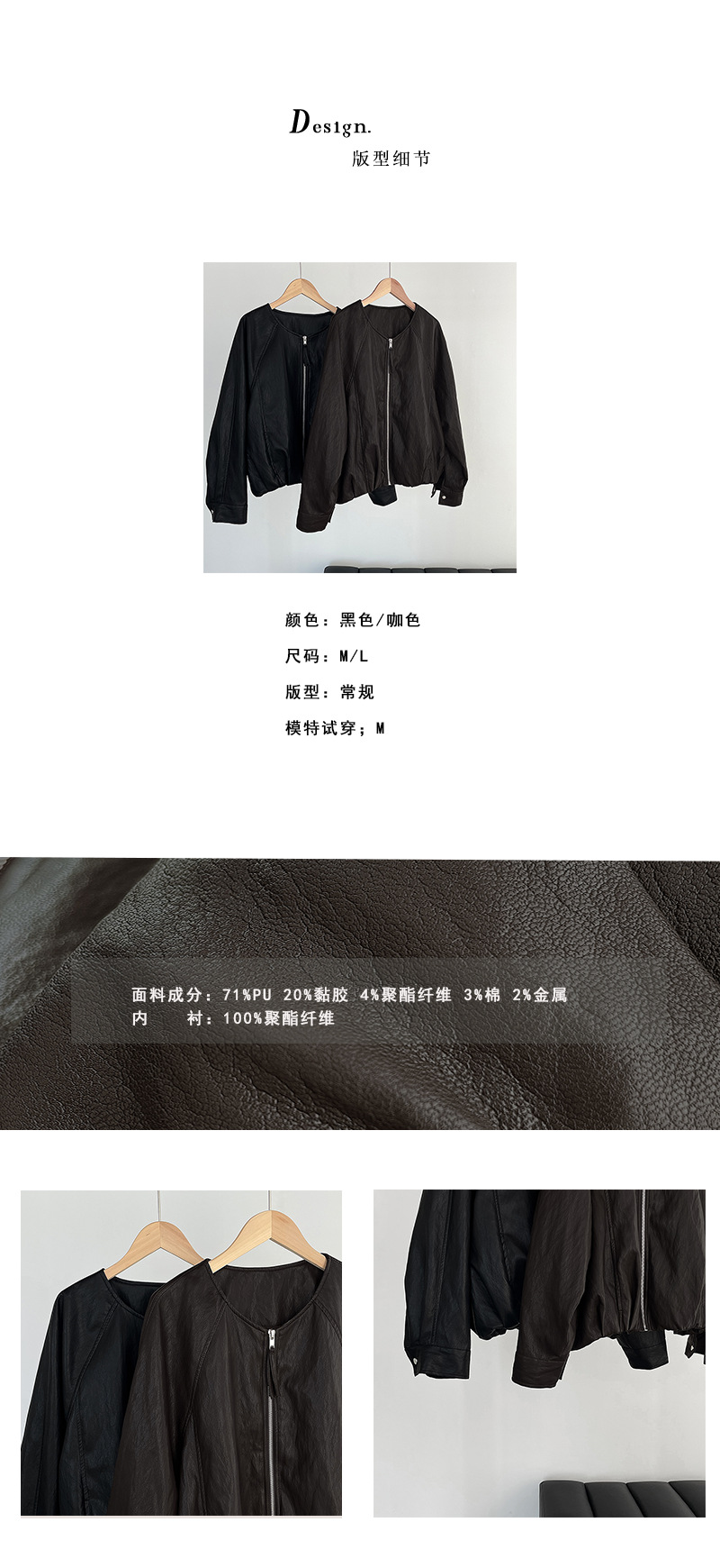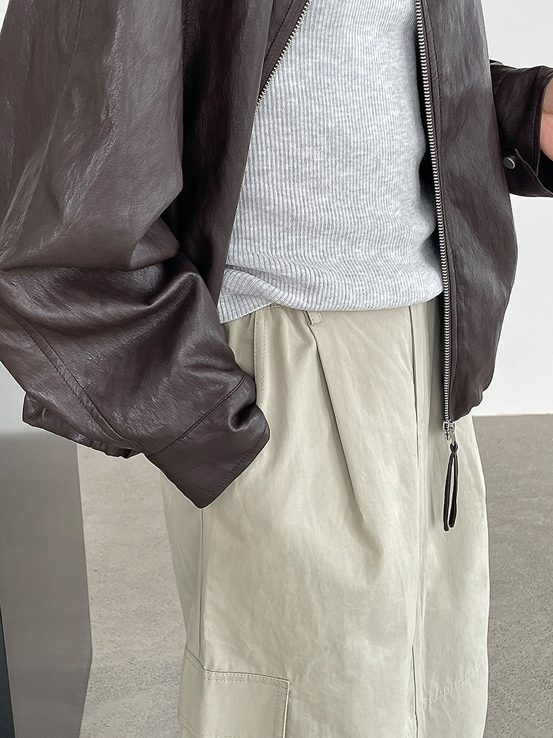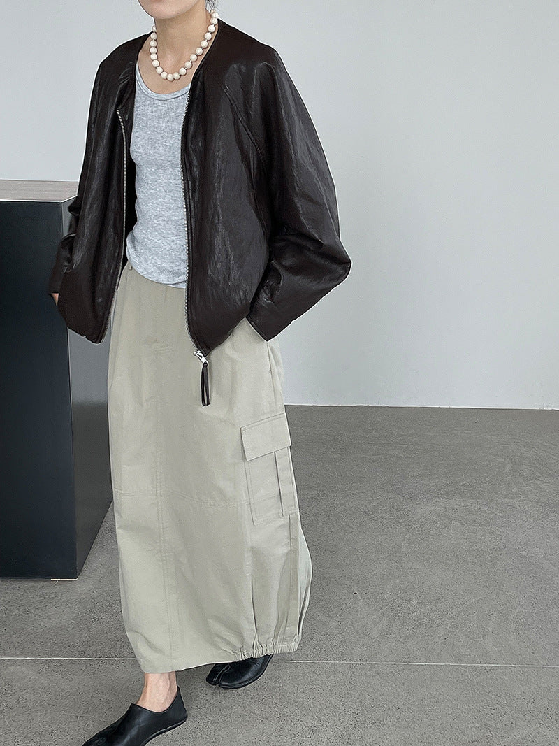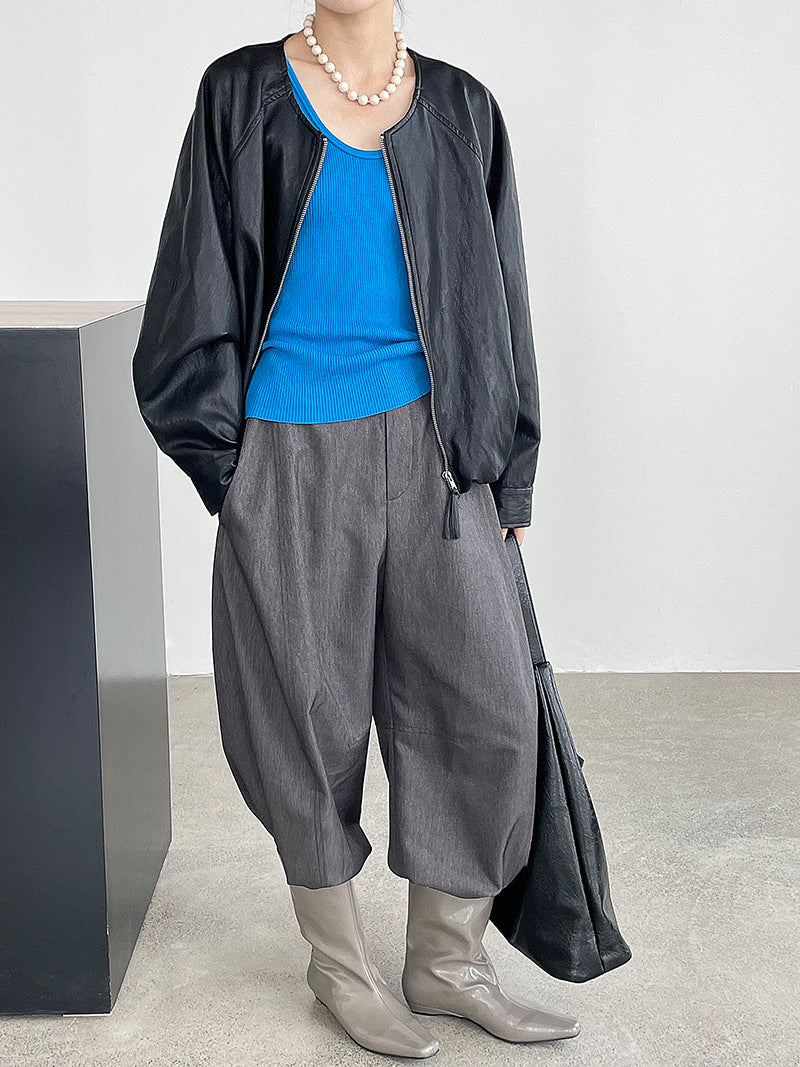 【cim2786】實拍高級小圓領柔軟pu皮外套皮衣251002
