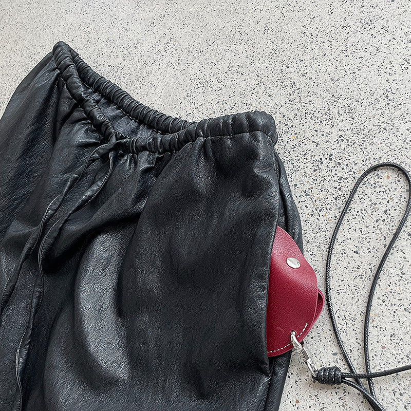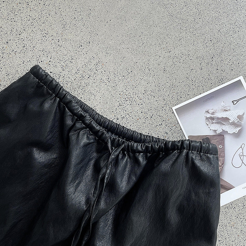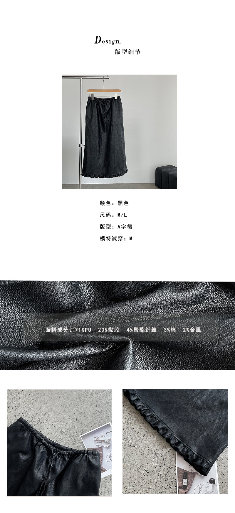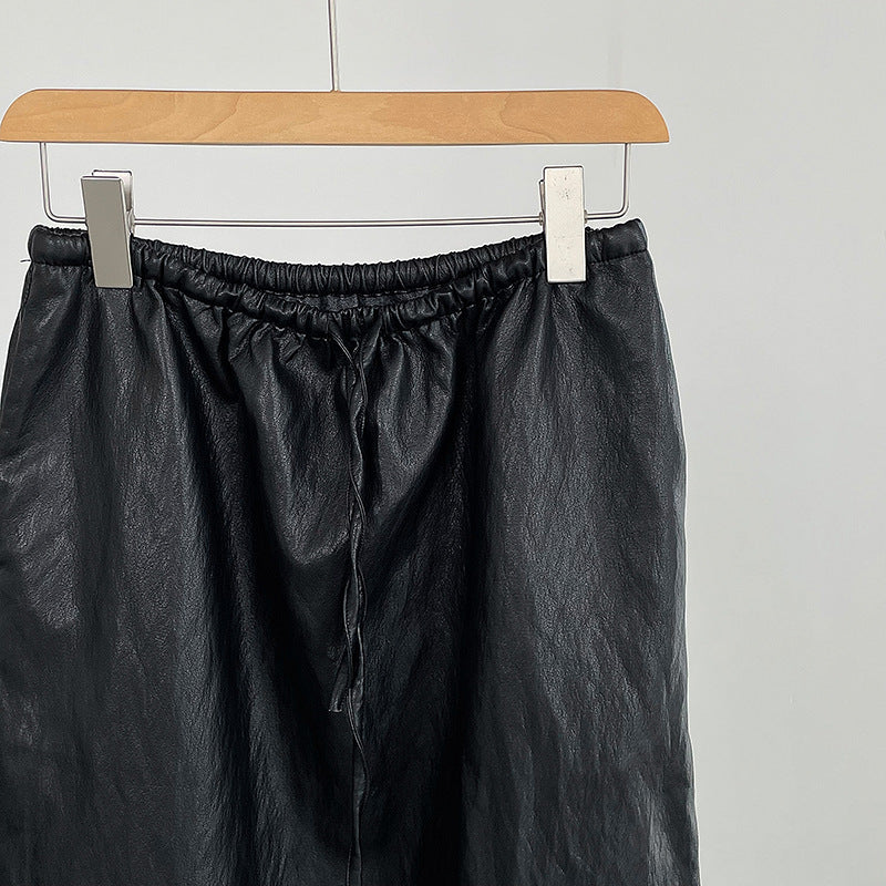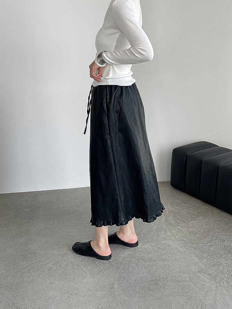 【cim2799】實拍鬆緊腰下襬荷葉PU皮長裙250904