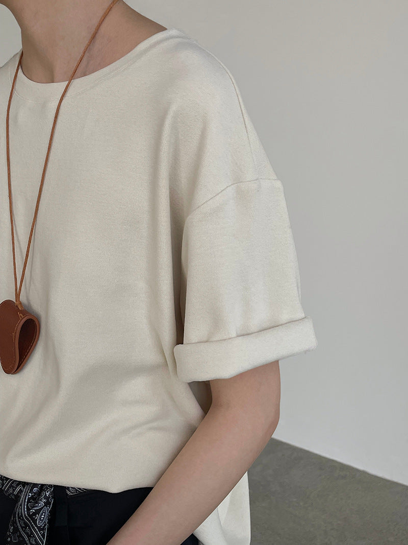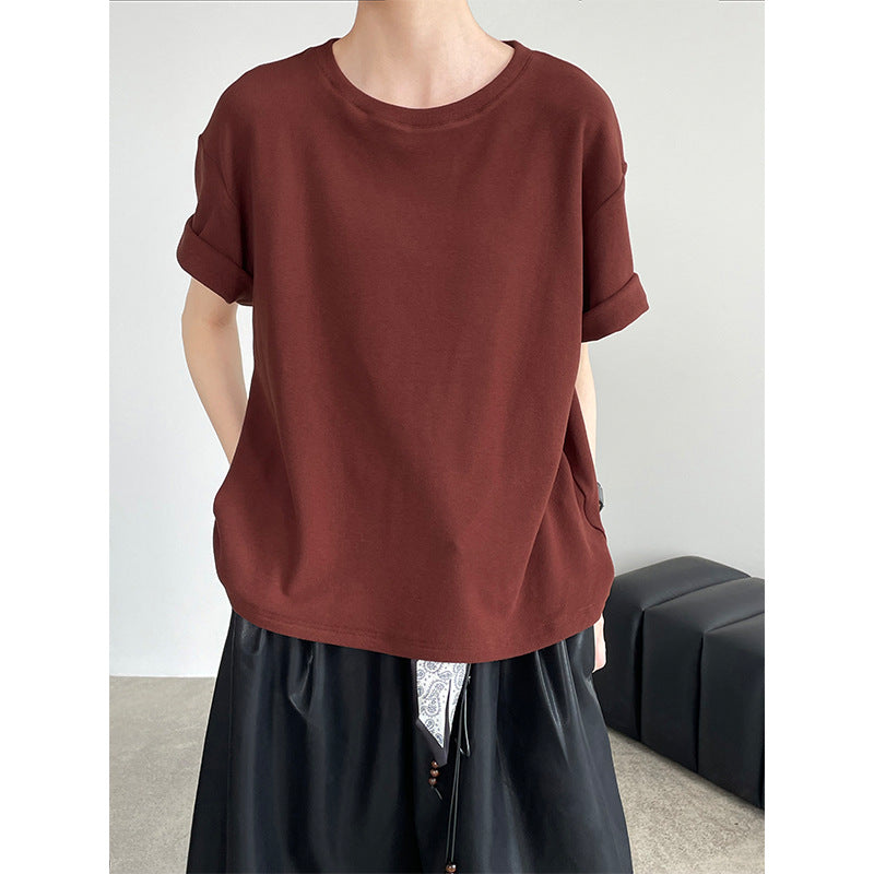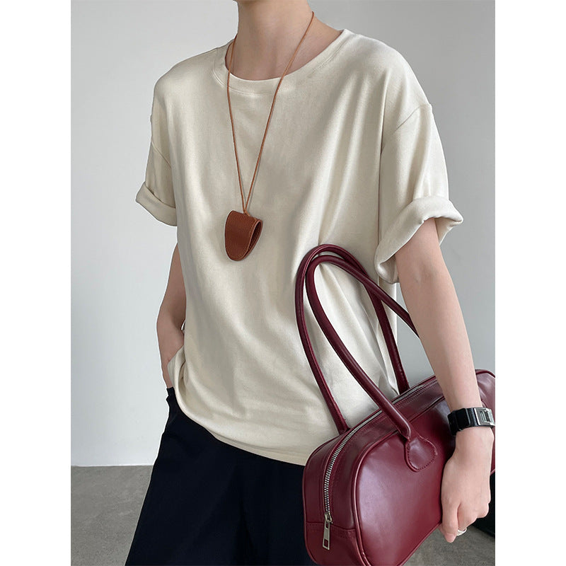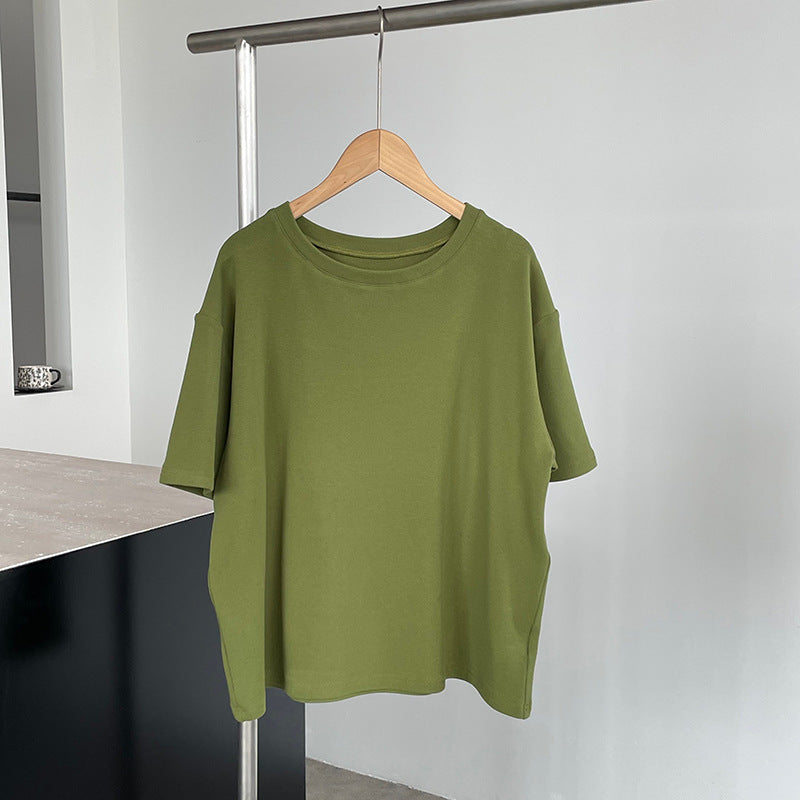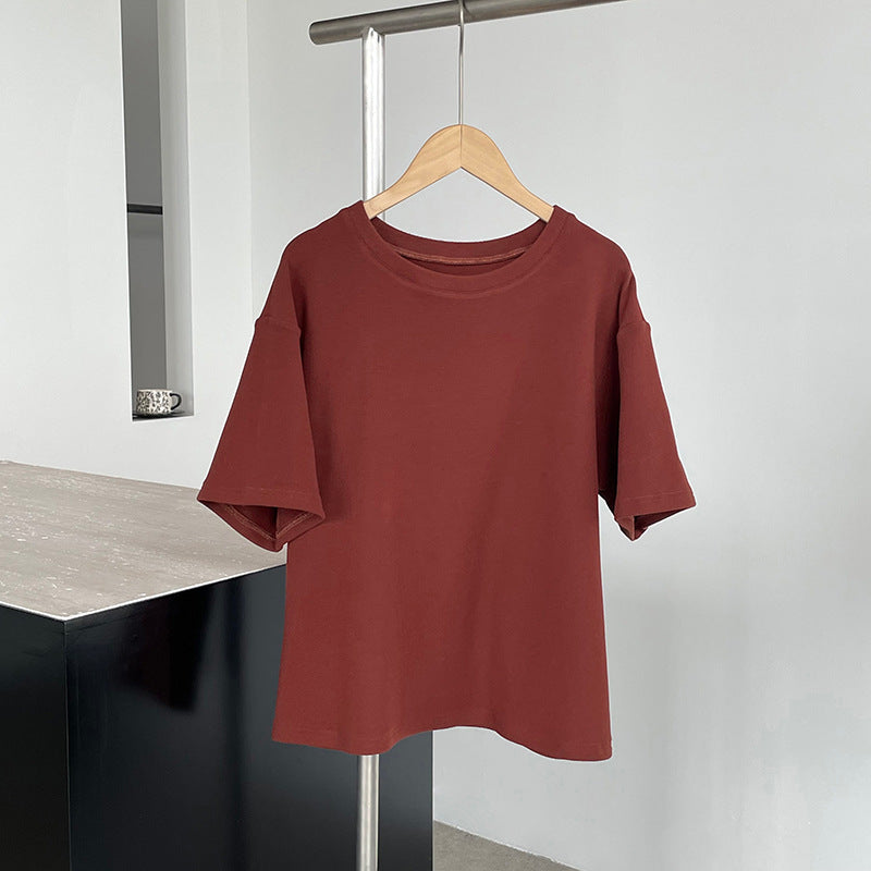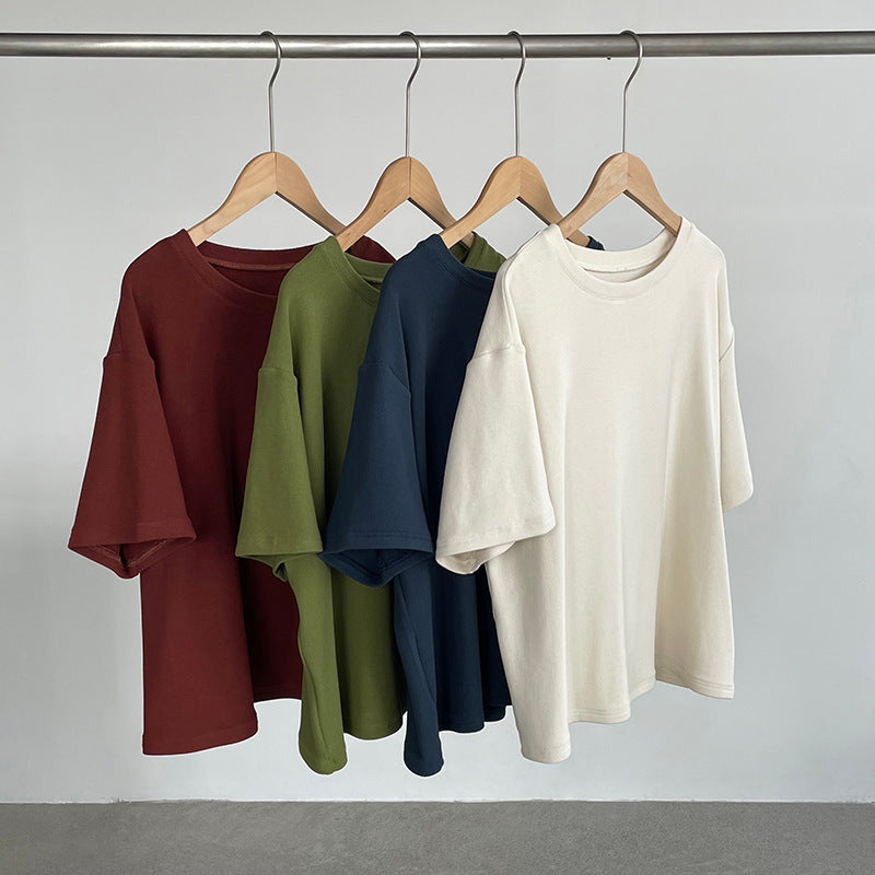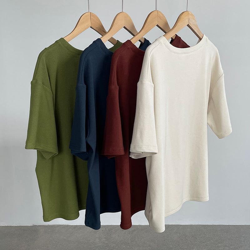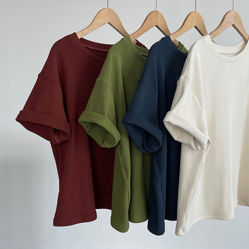 【cim2803】實拍磨毛純色寬鬆短袖T恤250925
