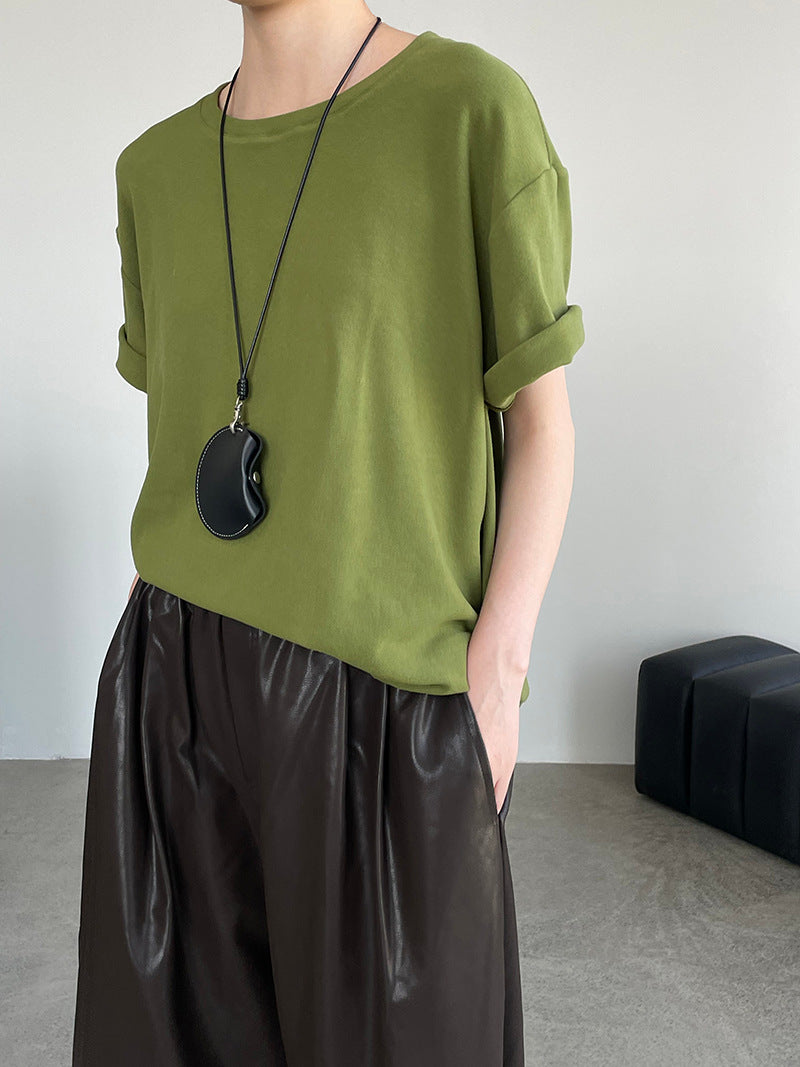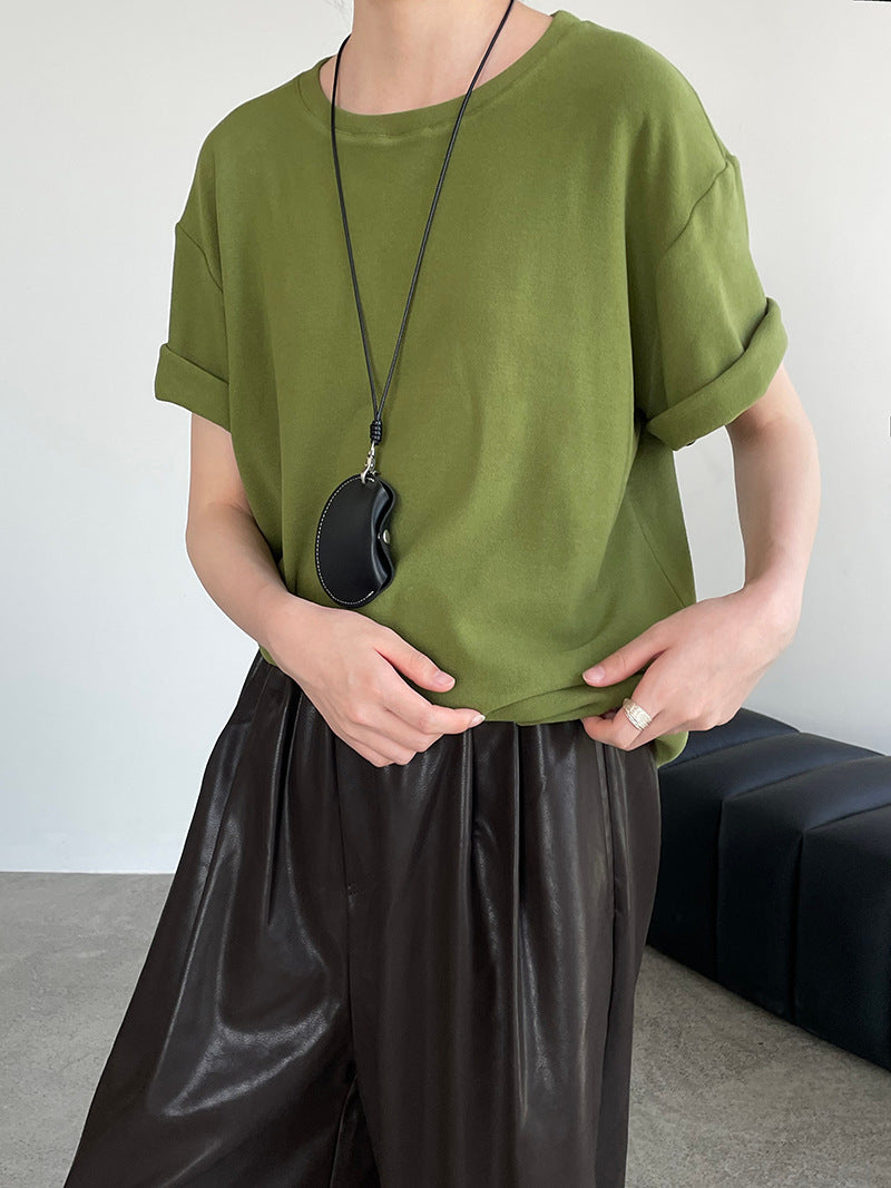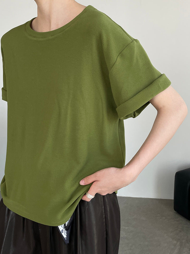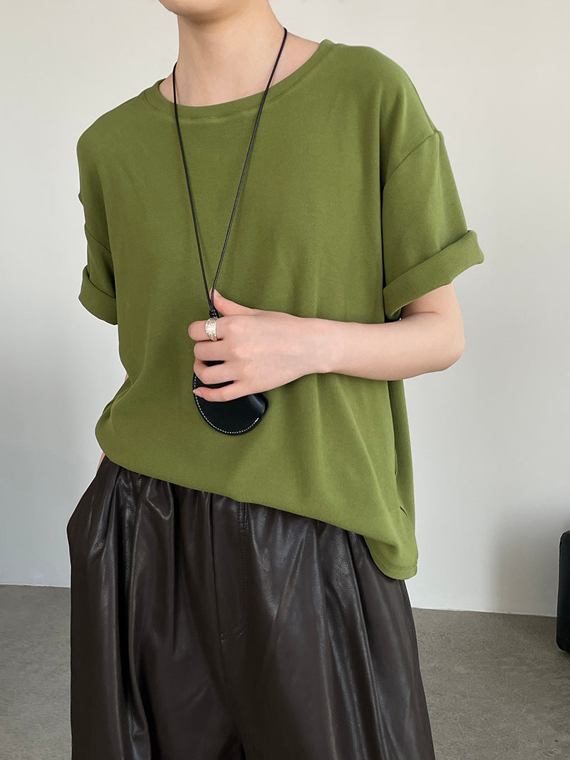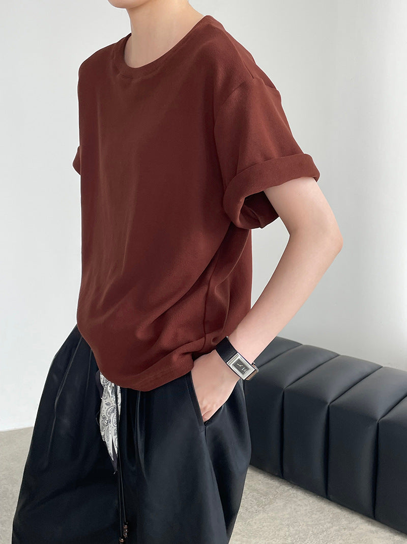 【cim2803】實拍磨毛純色寬鬆短袖T恤250925