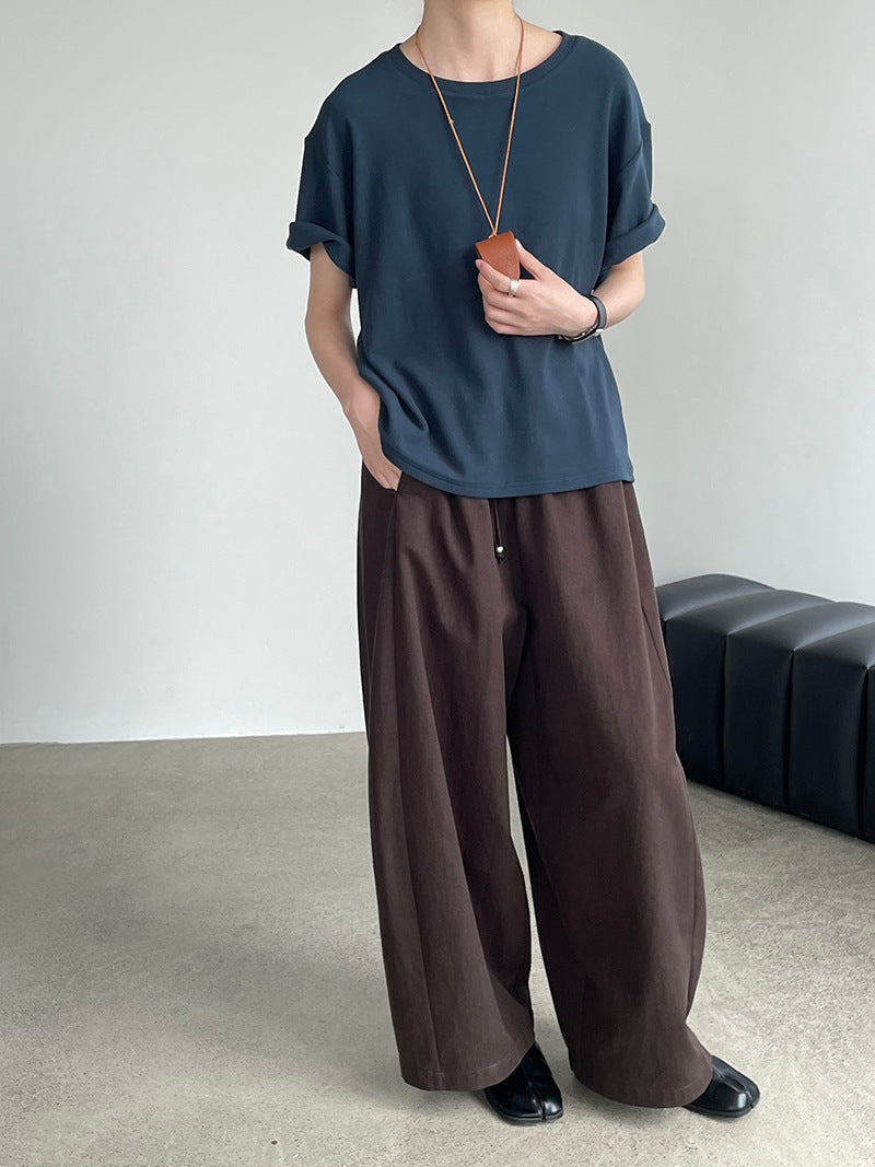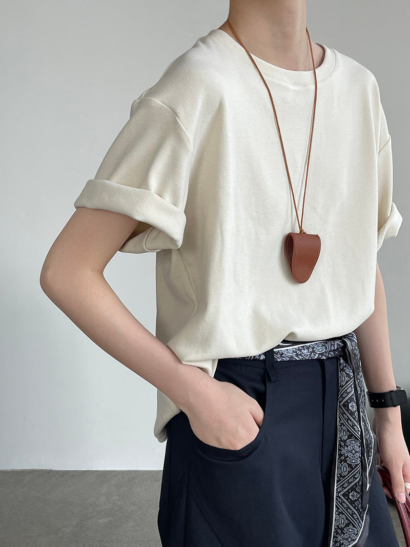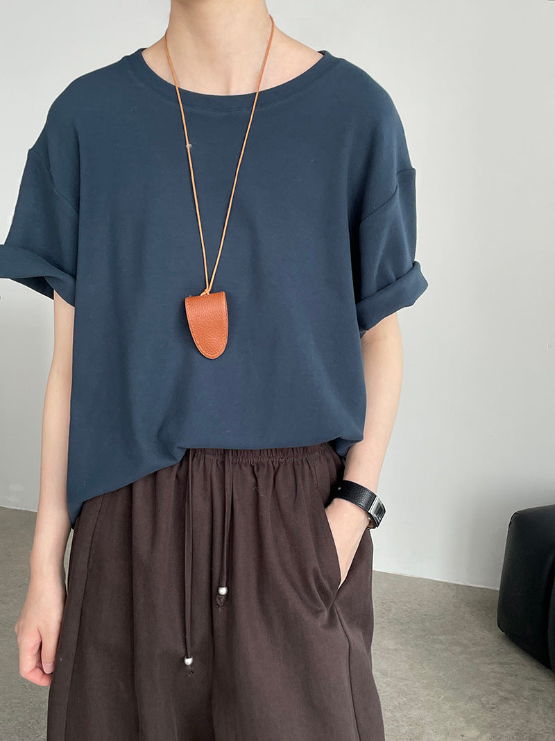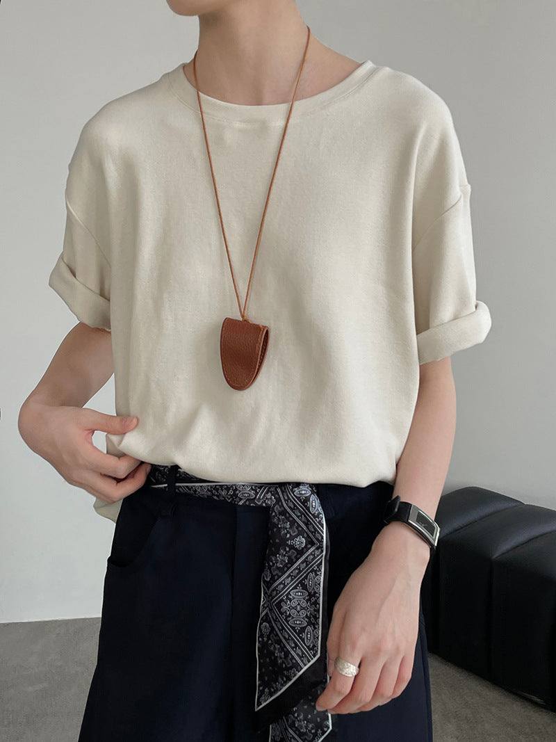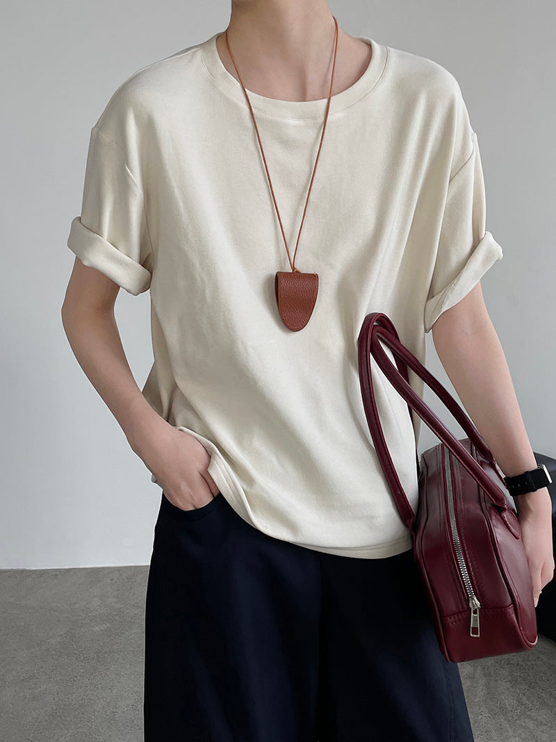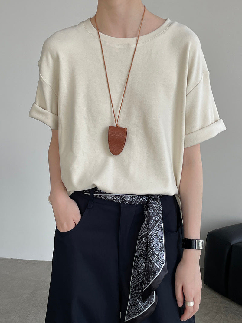 【cim2803】實拍磨毛純色寬鬆短袖T恤250925