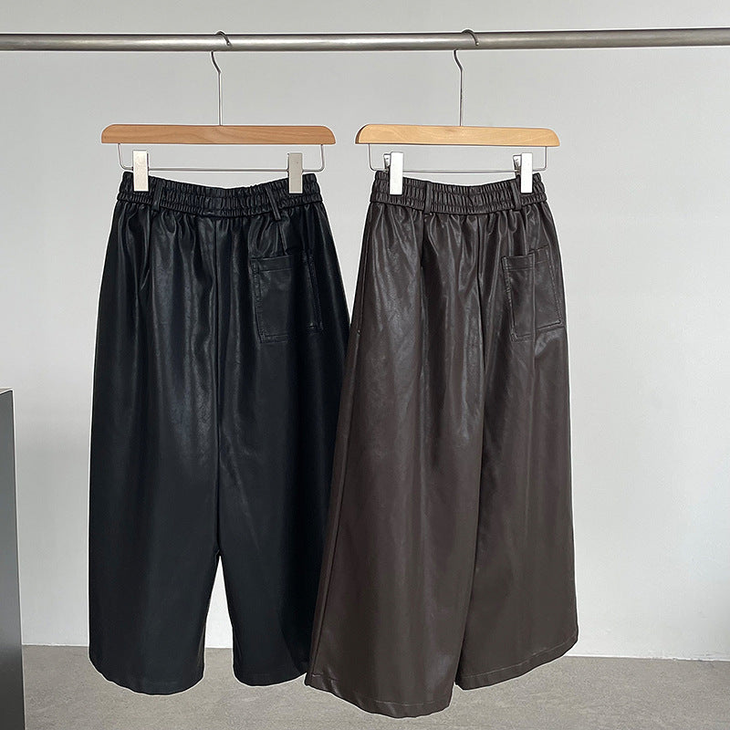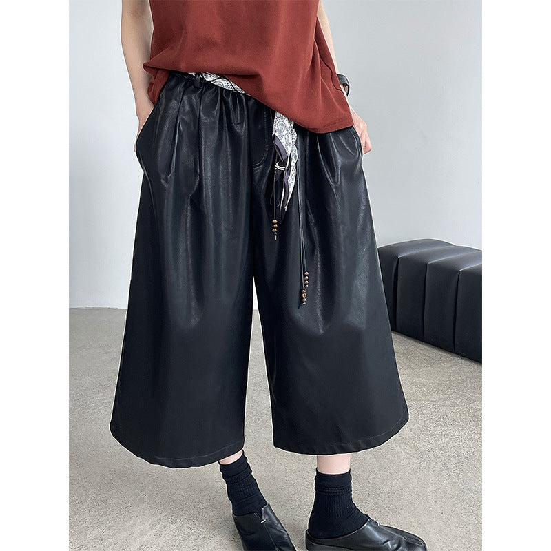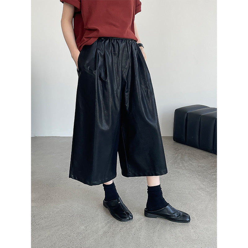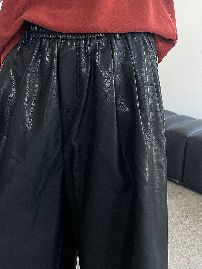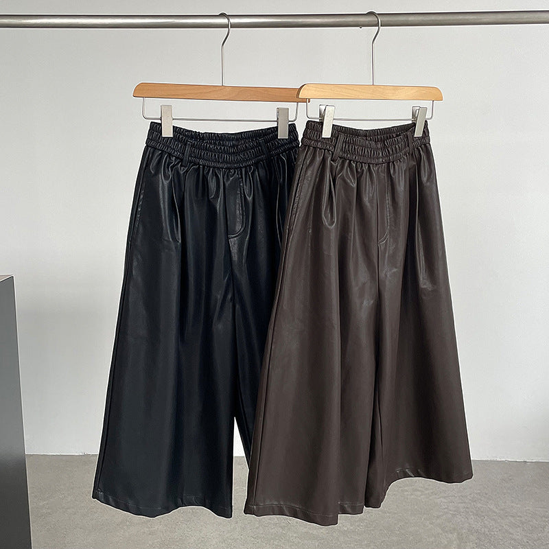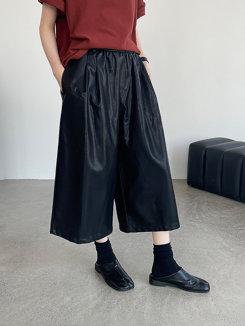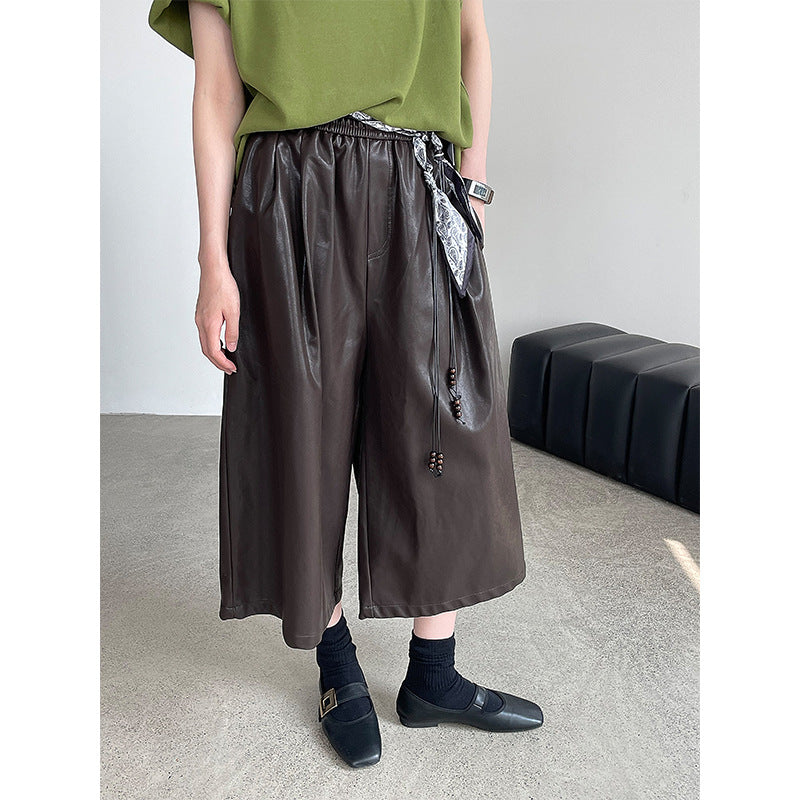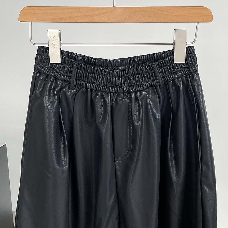 【cim2813】實拍秋冬寬鬆八分PU皮褲250925
