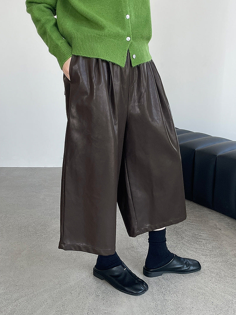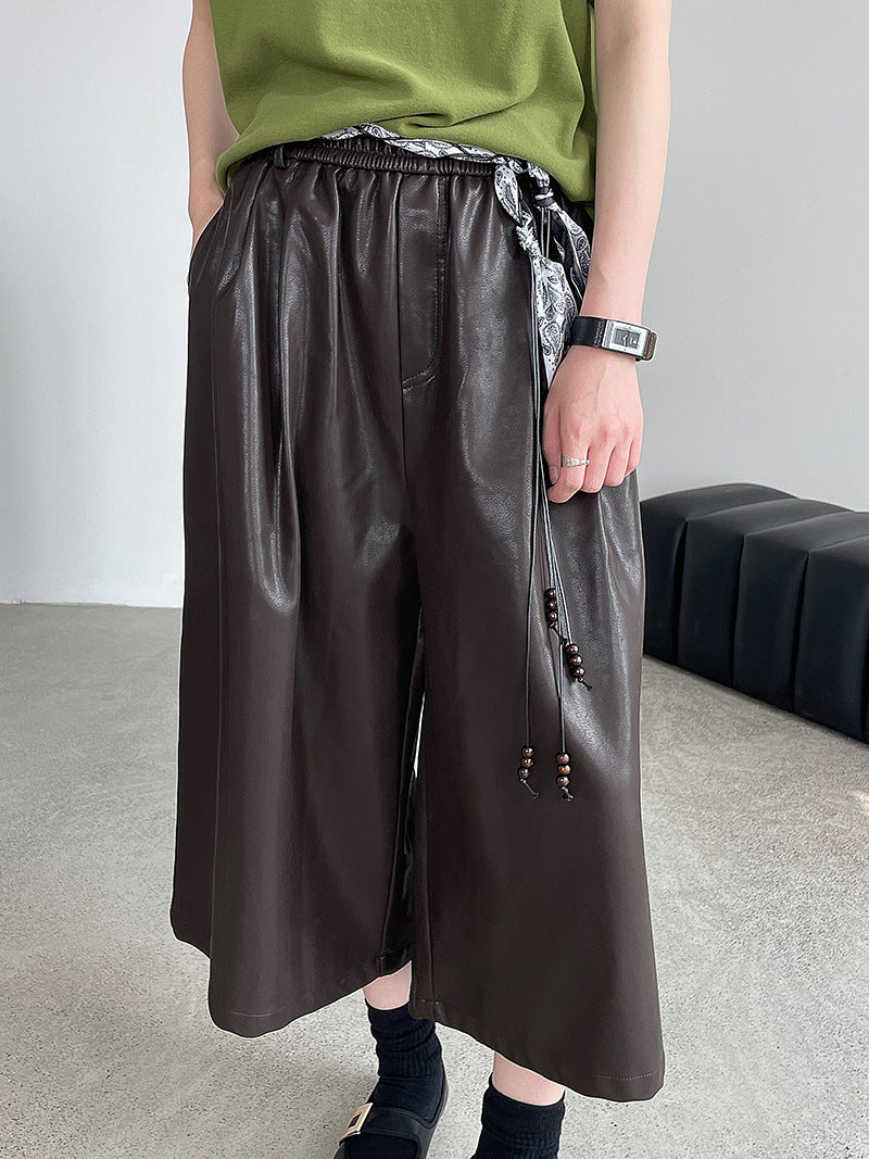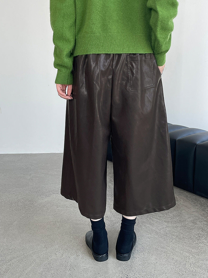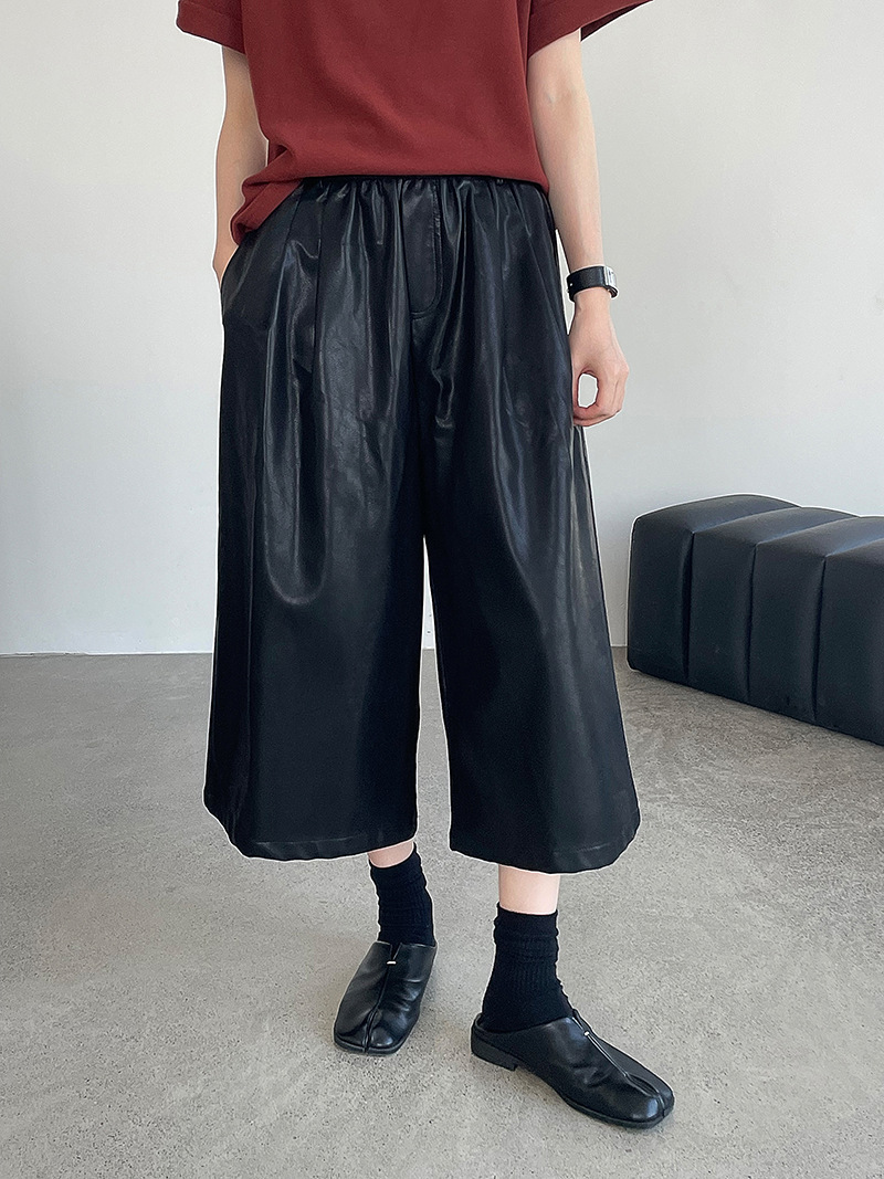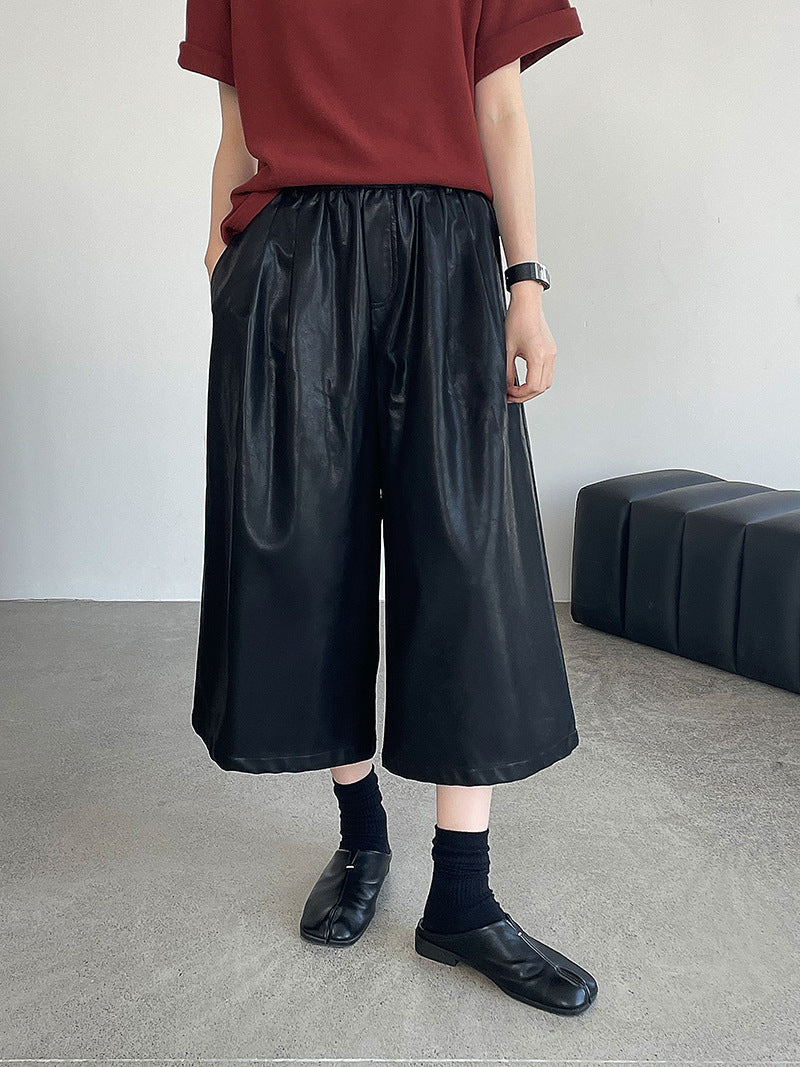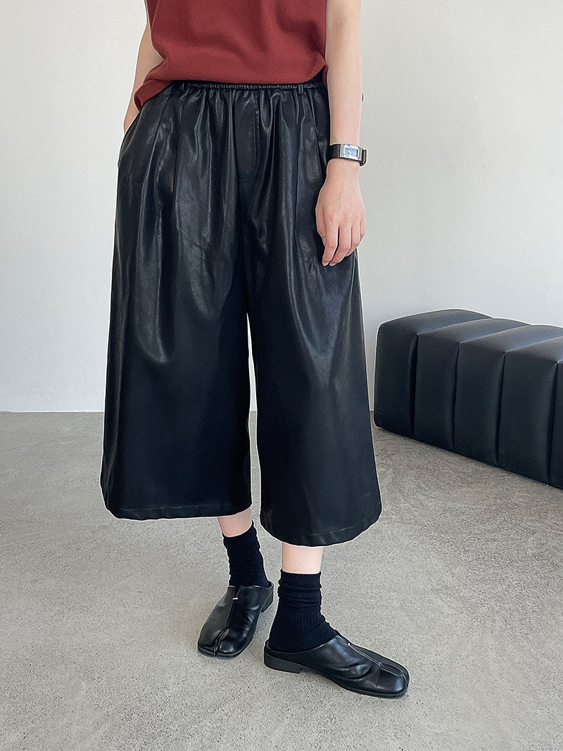 【cim2813】實拍秋冬寬鬆八分PU皮褲250925
