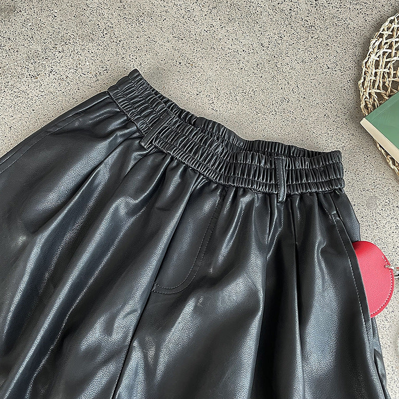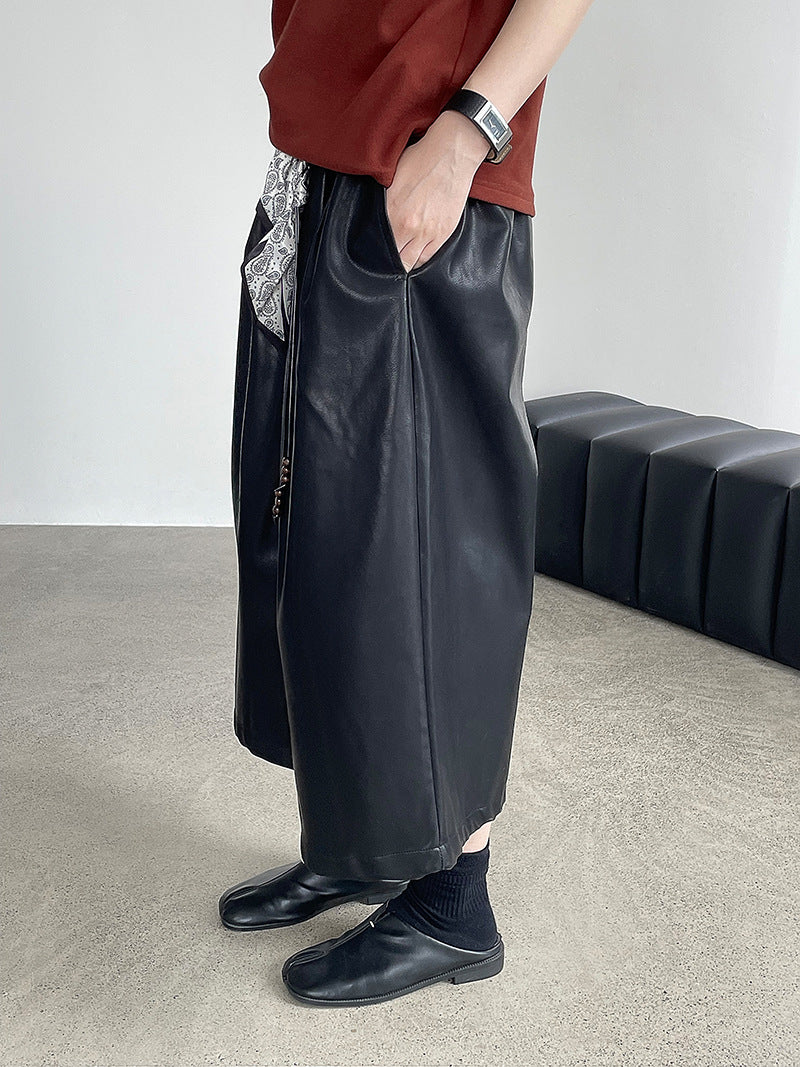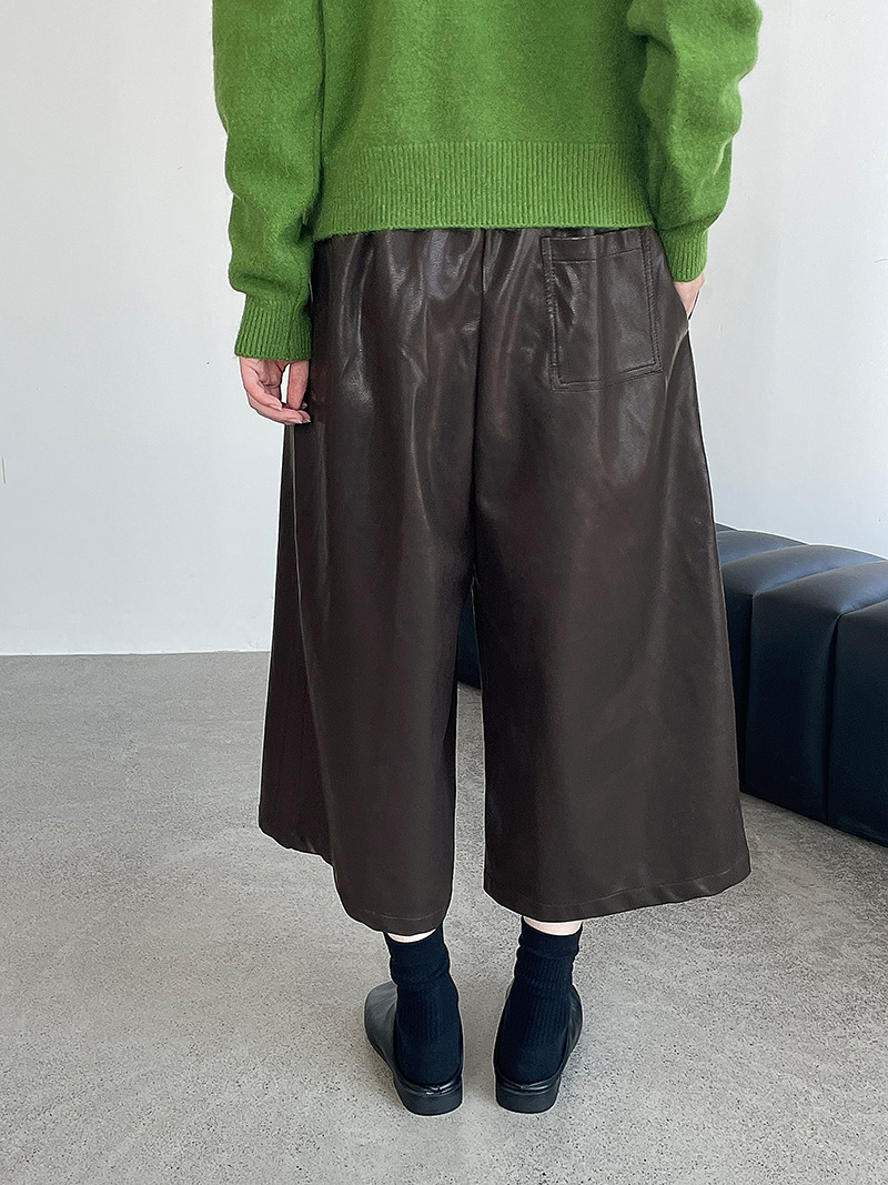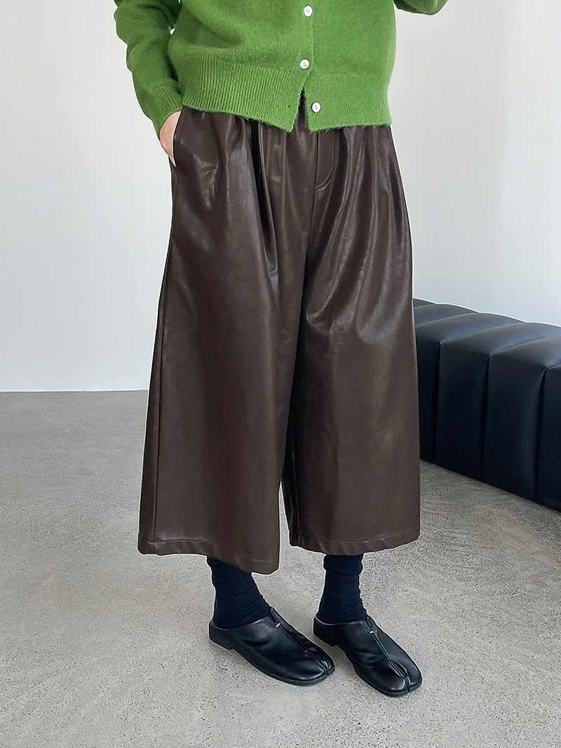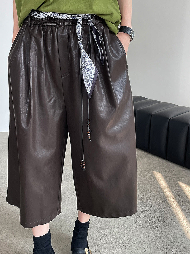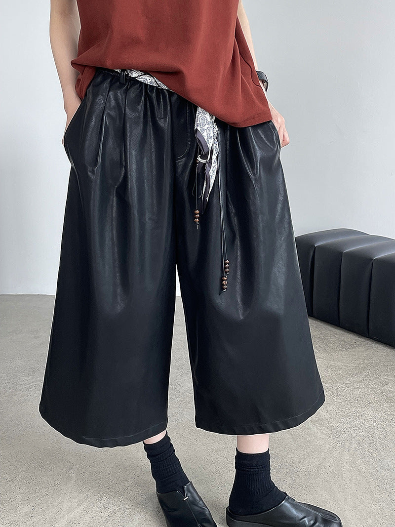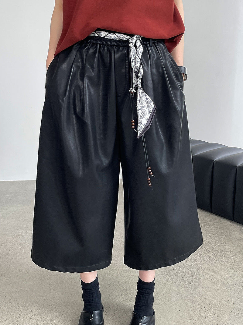 【cim2813】實拍秋冬寬鬆八分PU皮褲250925