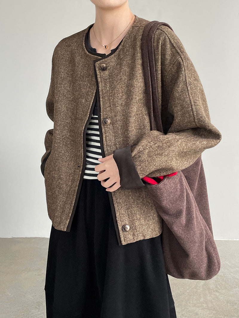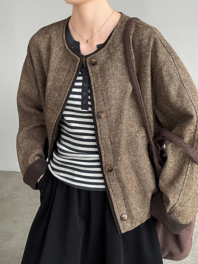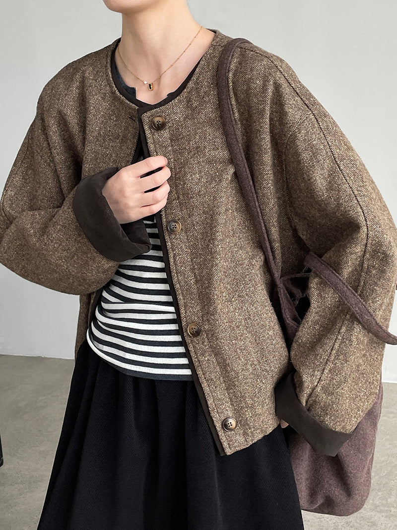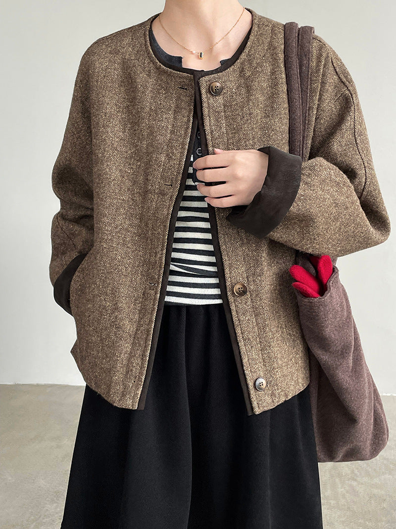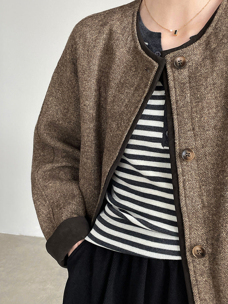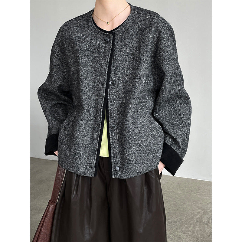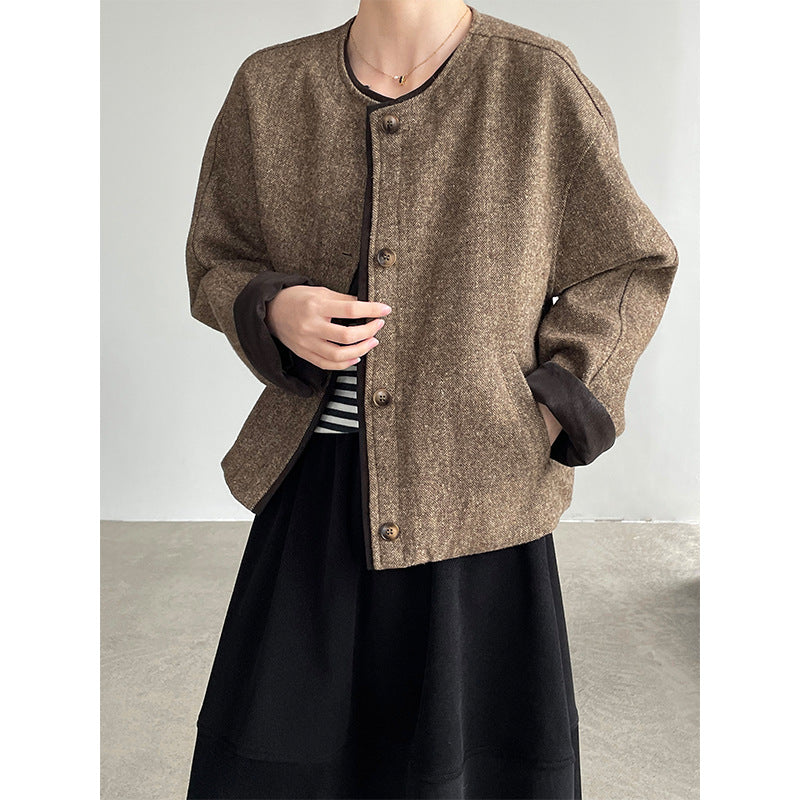【cim2818】實拍設計高級感復古圓領毛呢外套251002