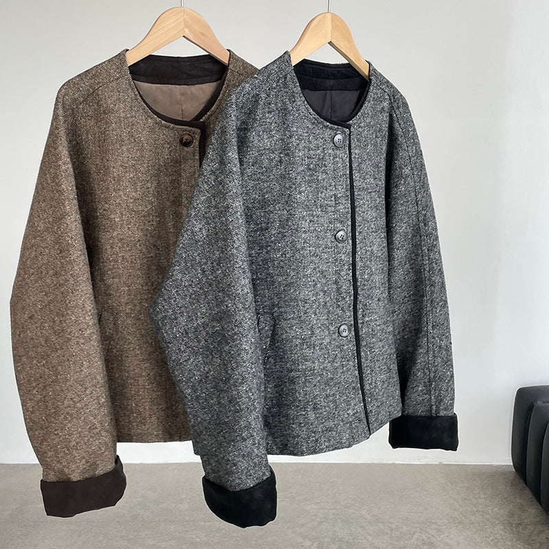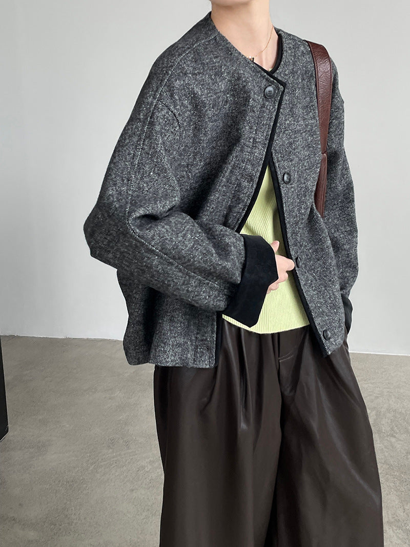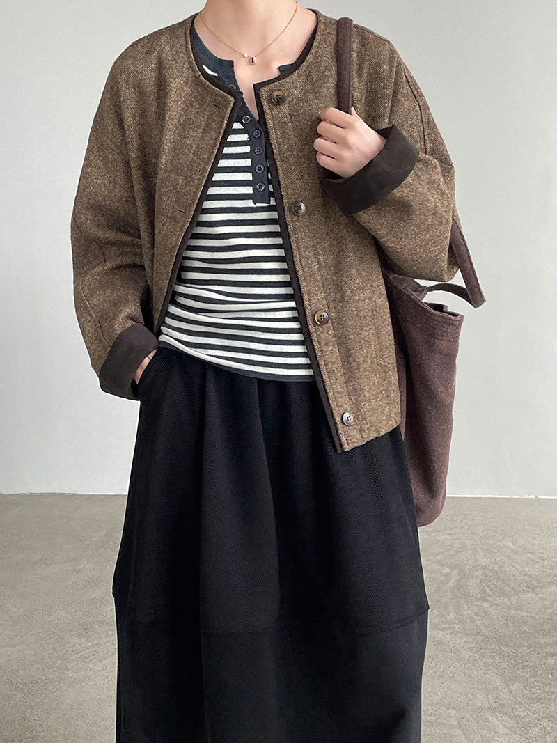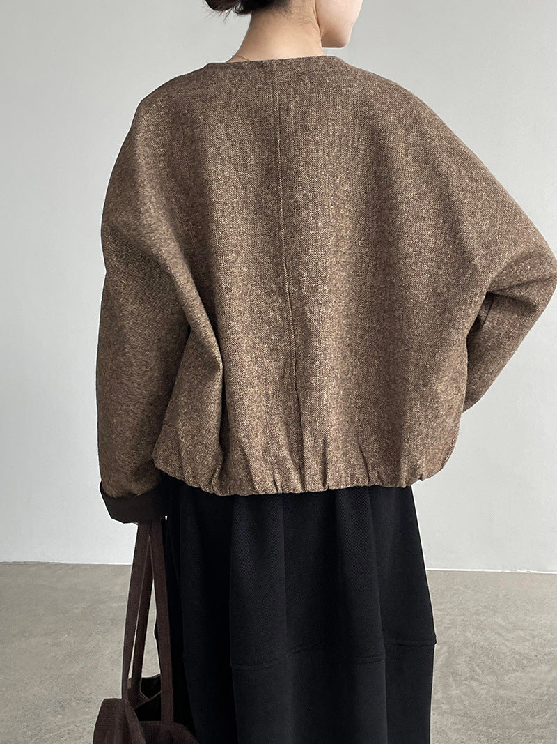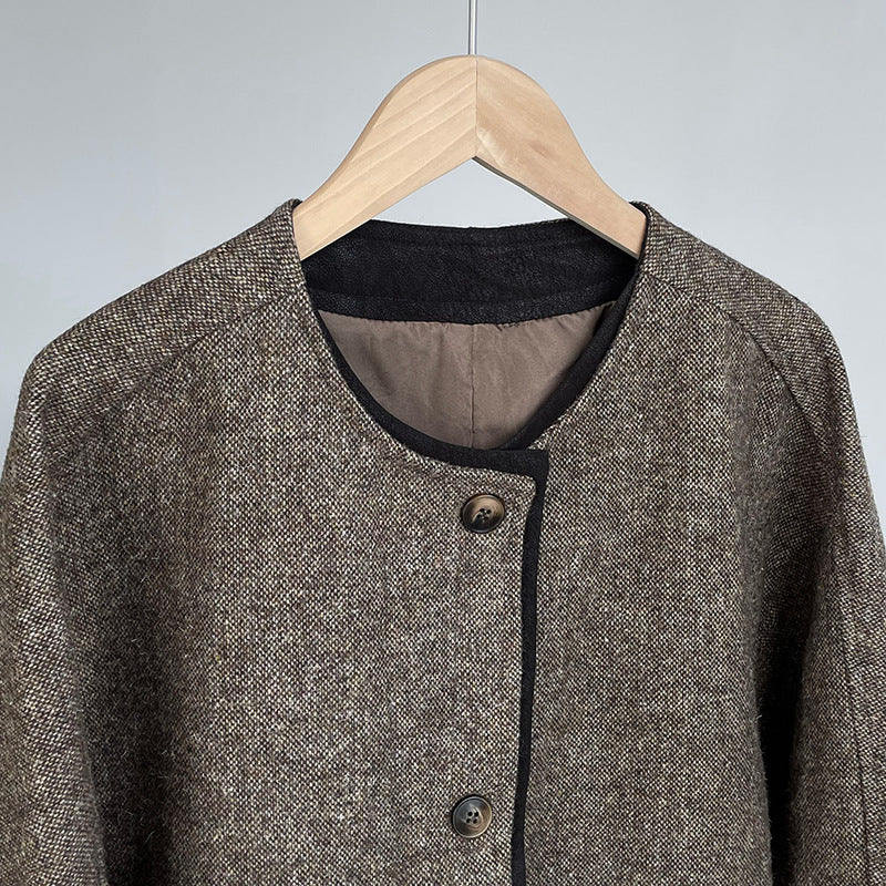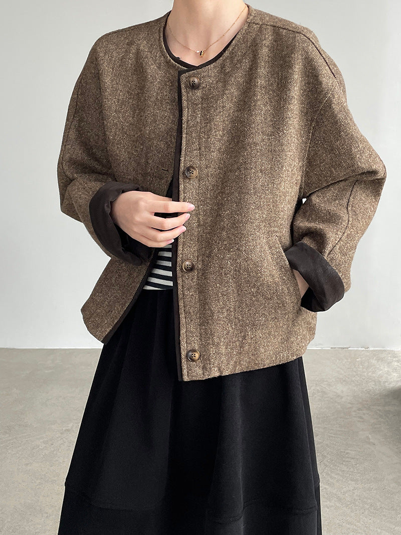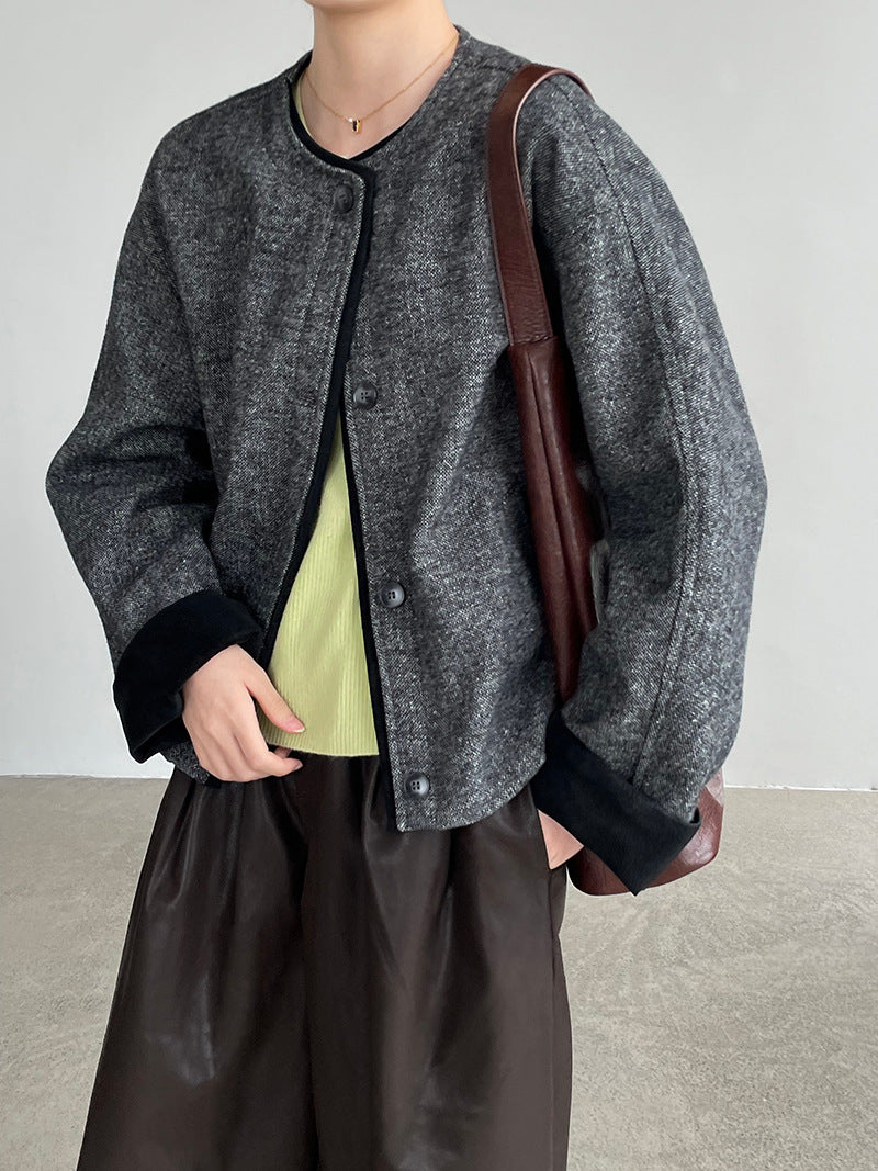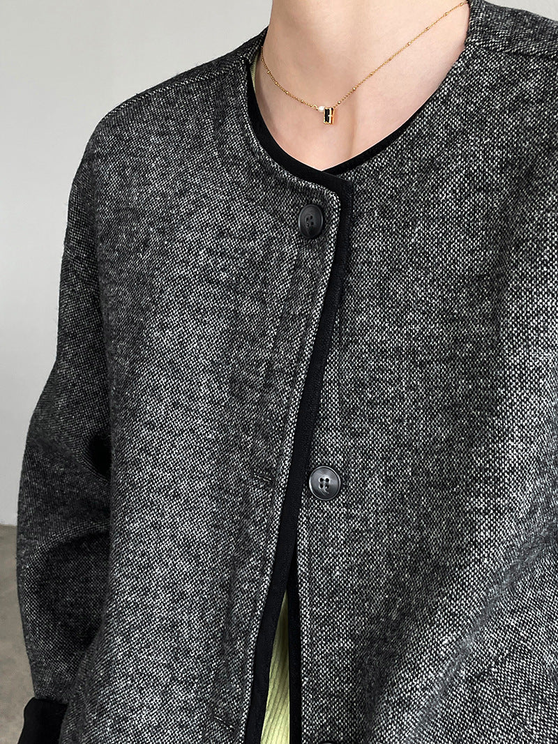 【cim2818】實拍設計高級感復古圓領毛呢外套251002