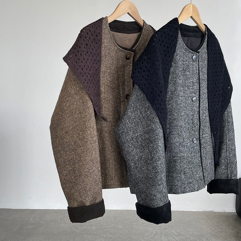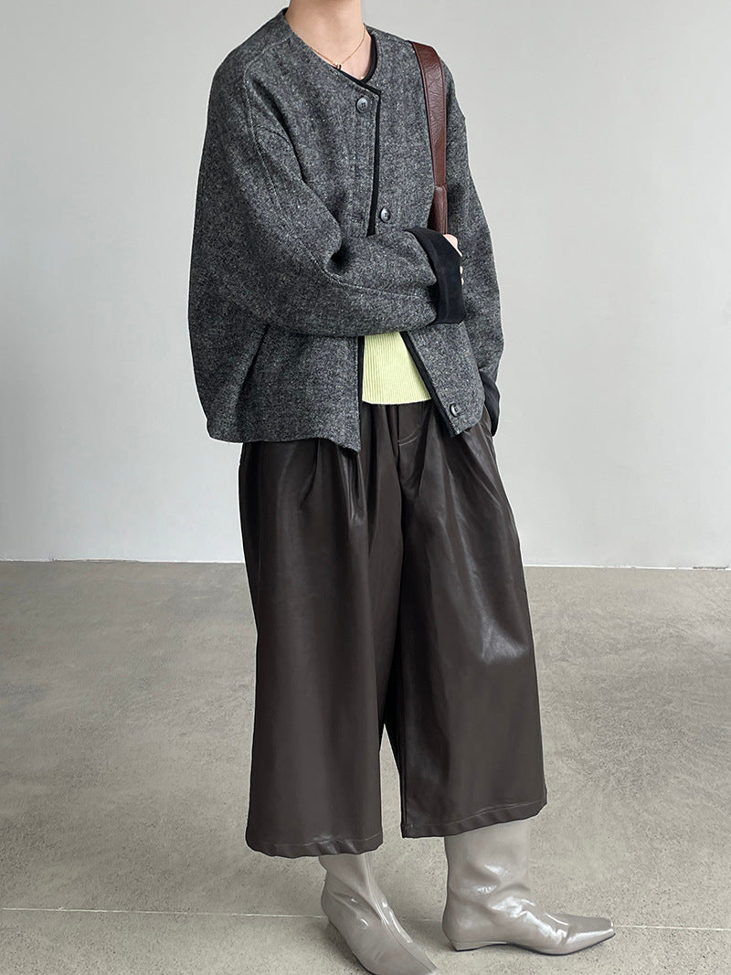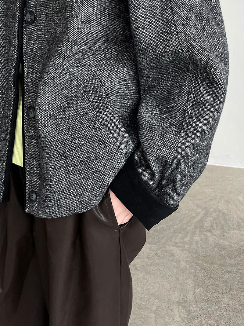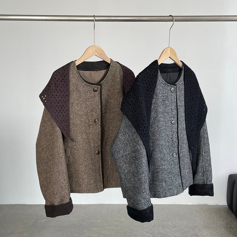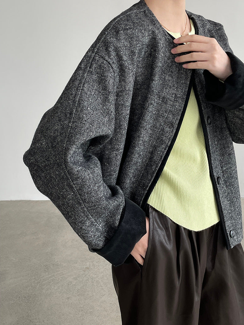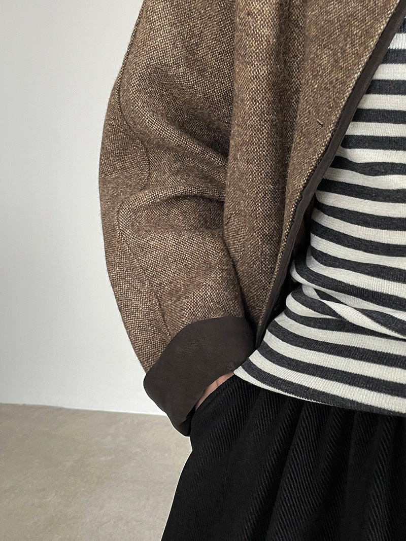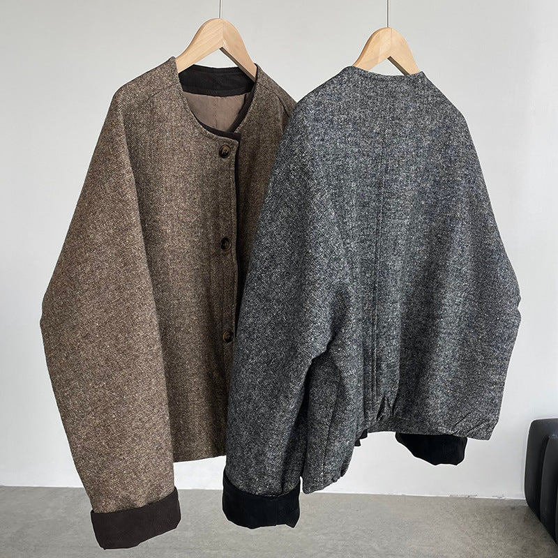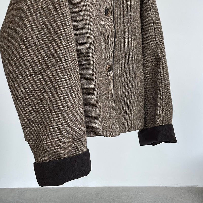 【cim2818】實拍設計高級感復古圓領毛呢外套251002