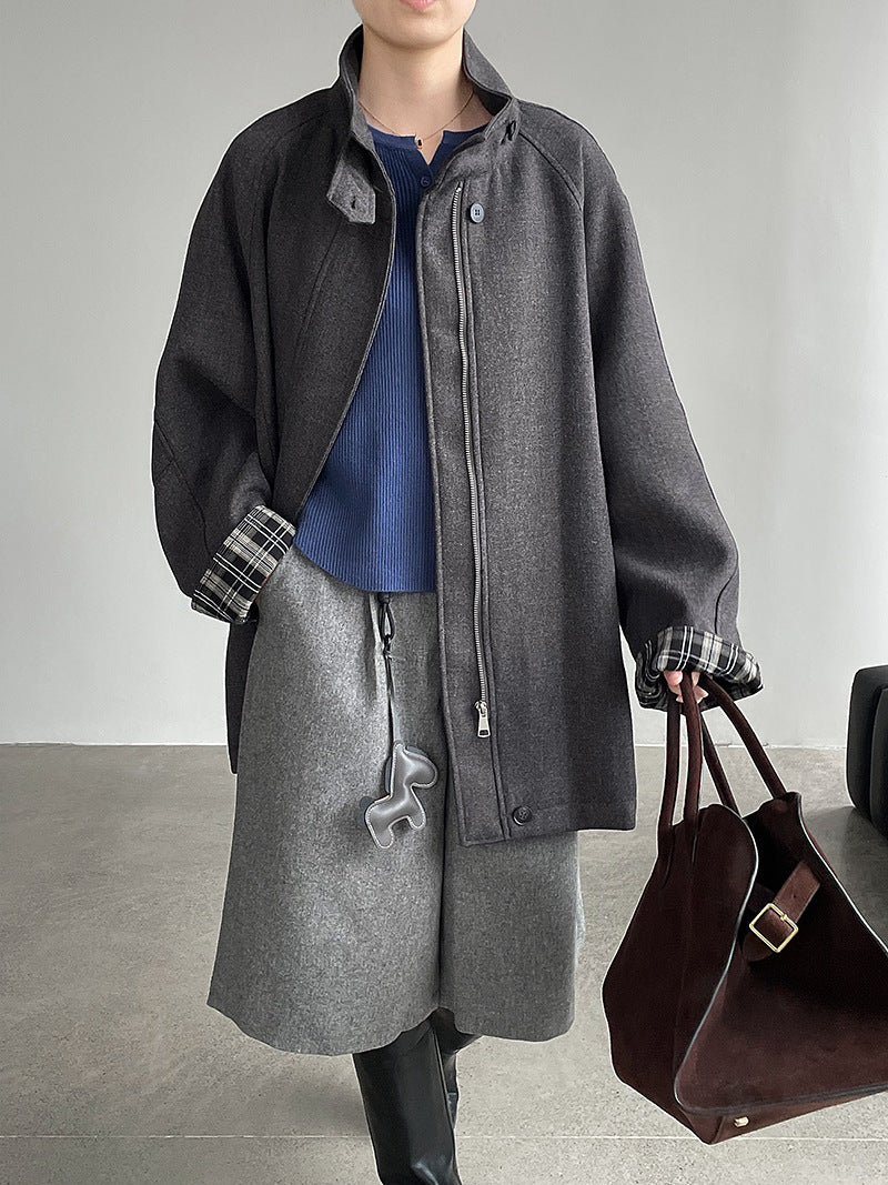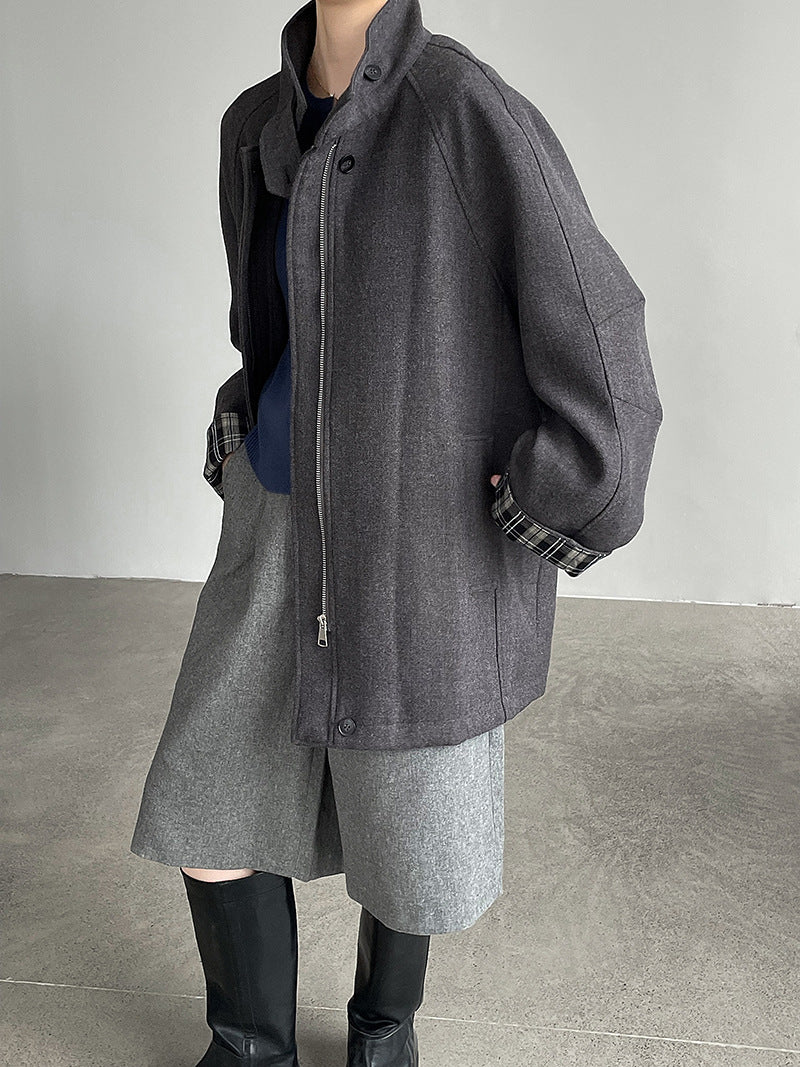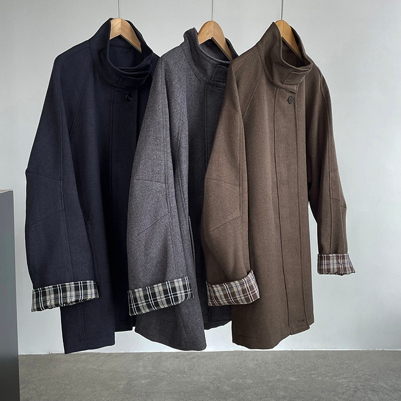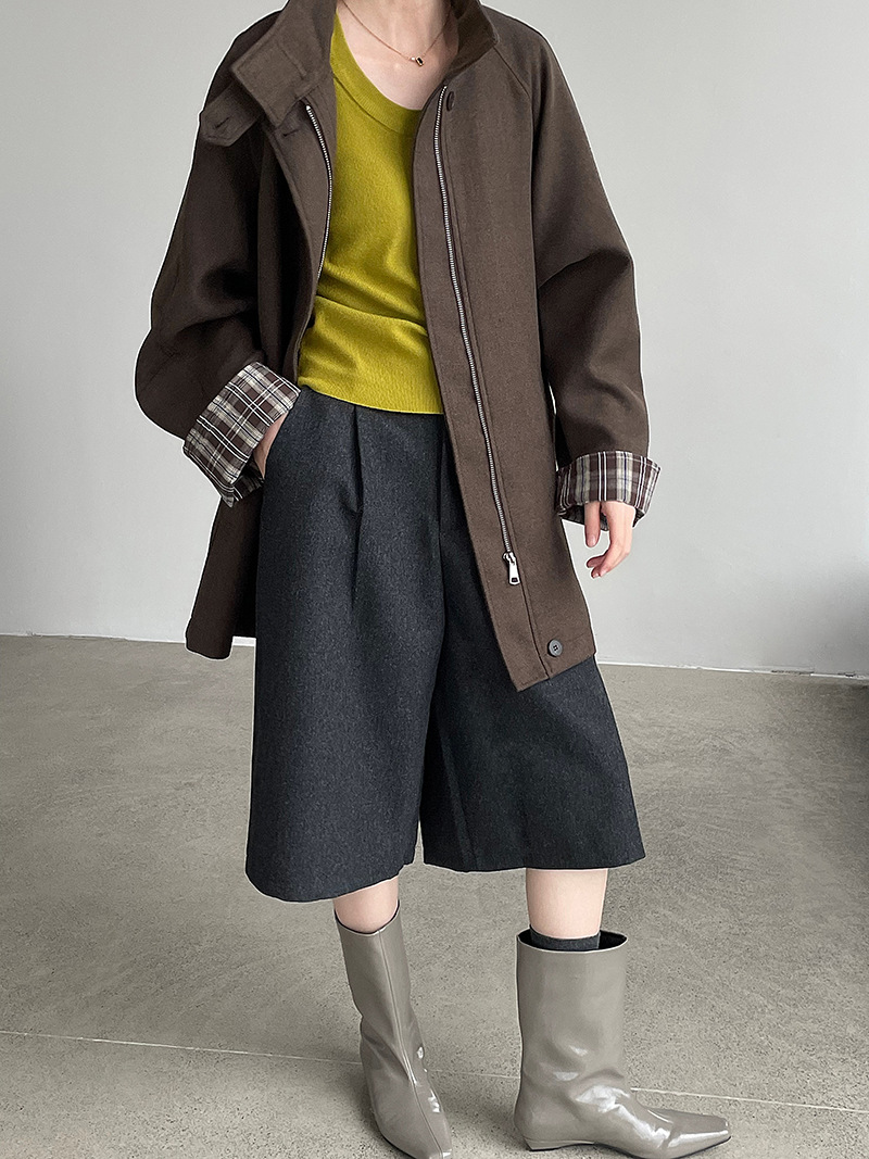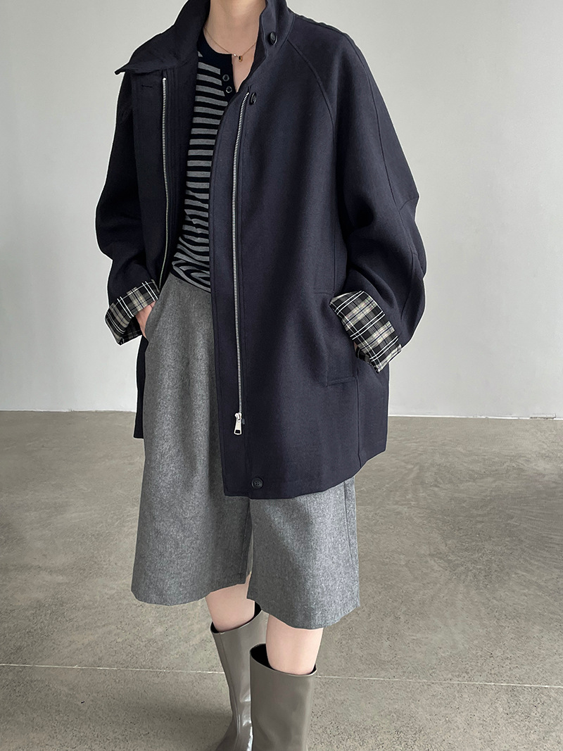 【cim2819】實拍立領毛呢高級感拉鍊大衣外套251002