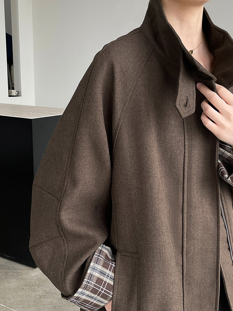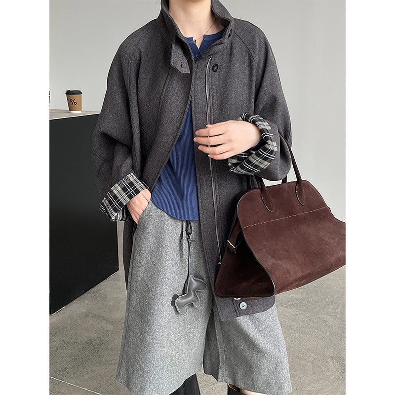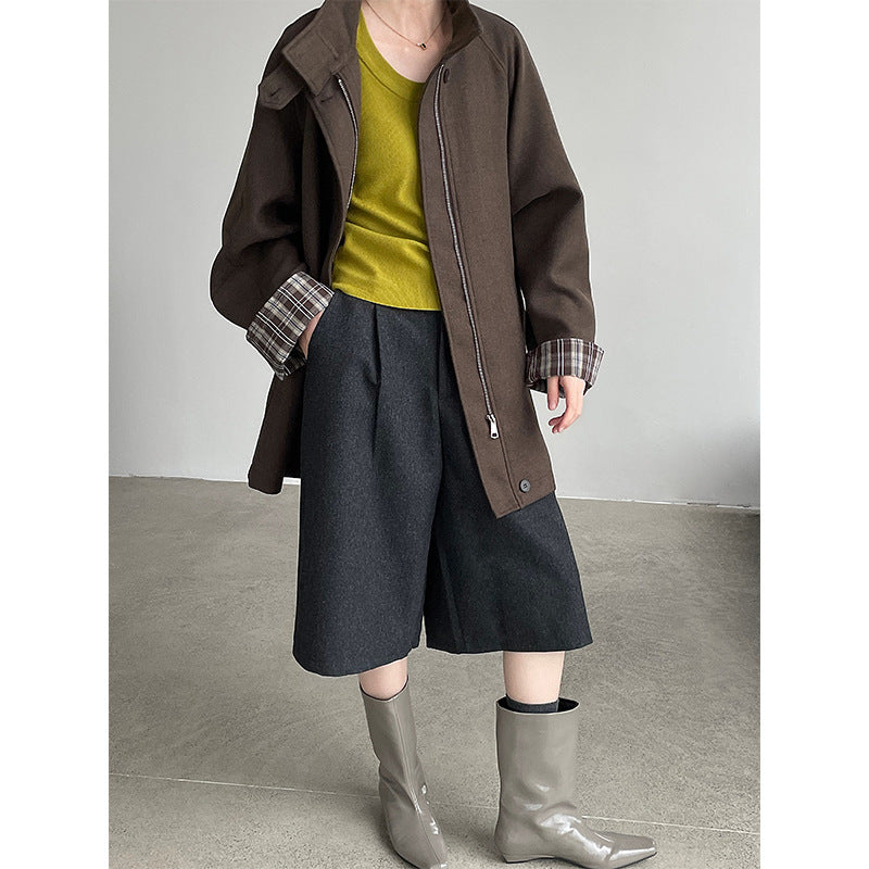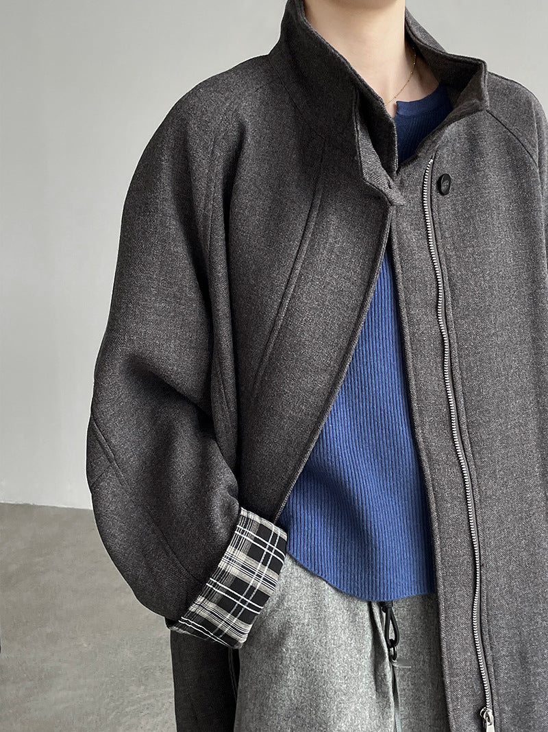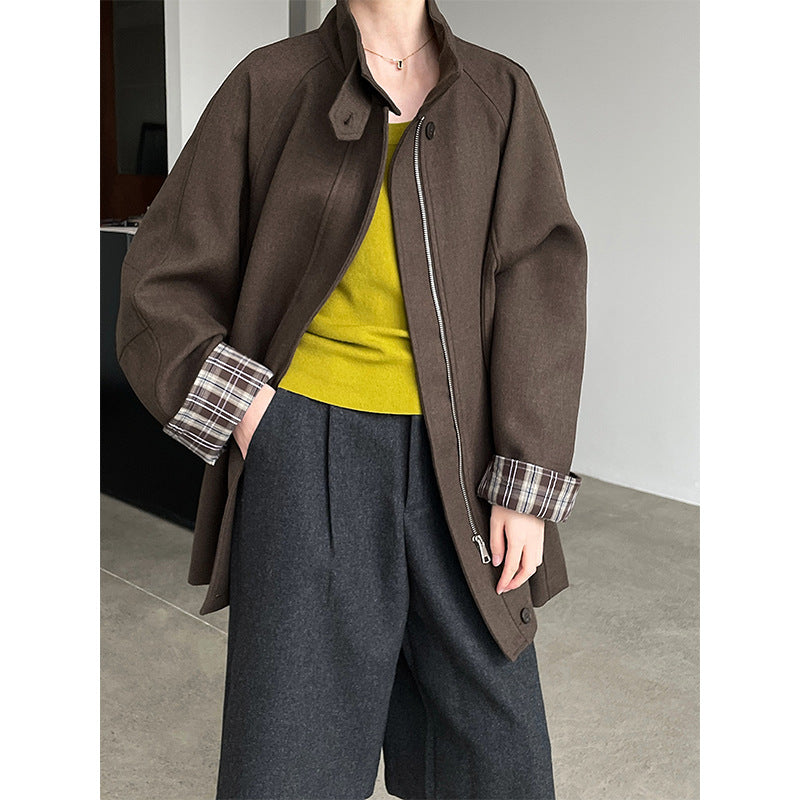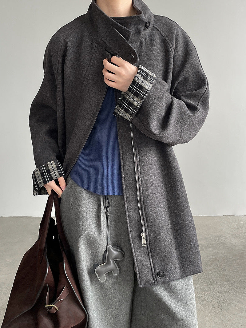 【cim2819】實拍立領毛呢高級感拉鍊大衣外套251002