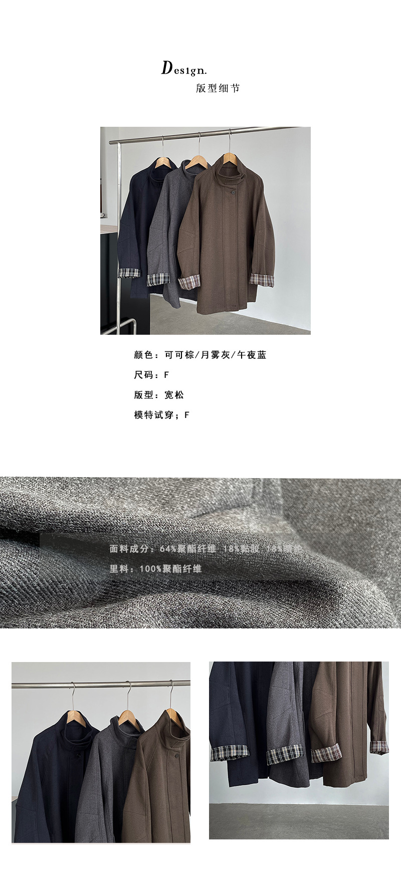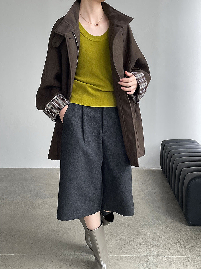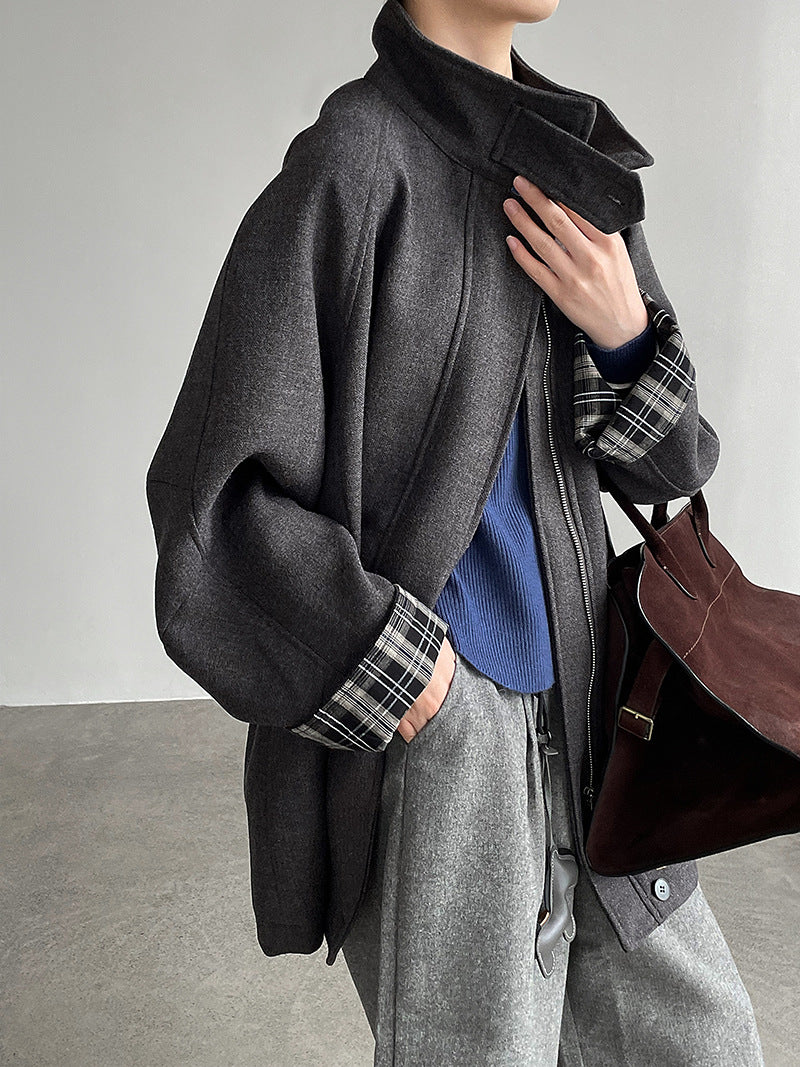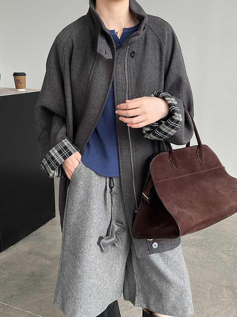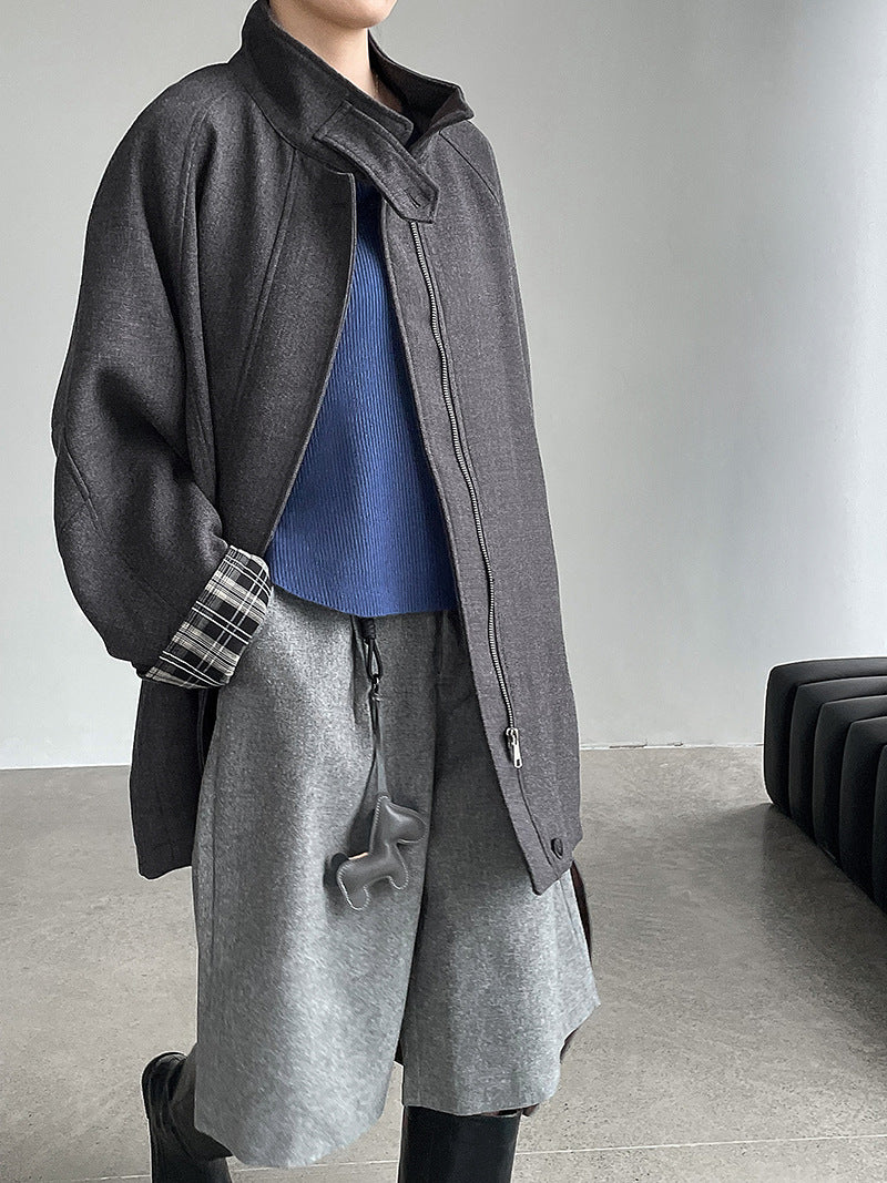 【cim2819】實拍立領毛呢高級感拉鍊大衣外套251002