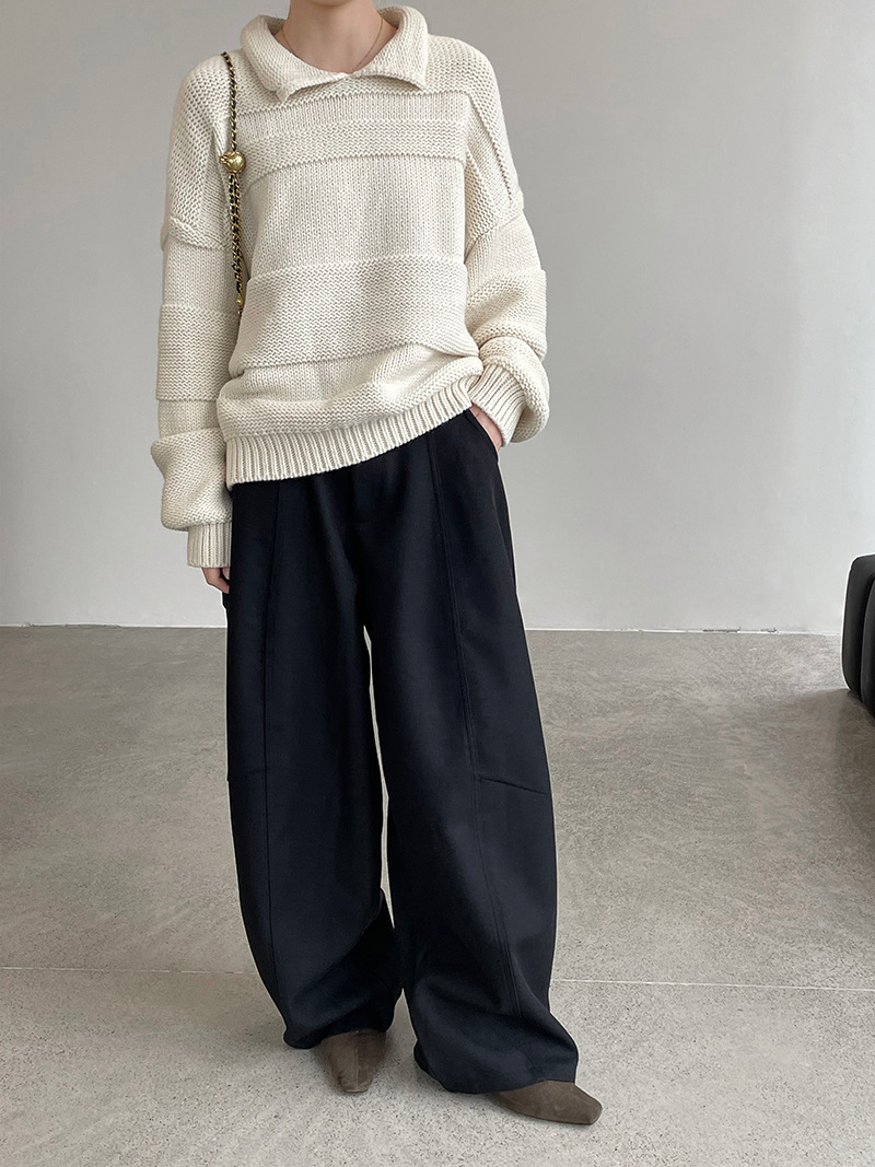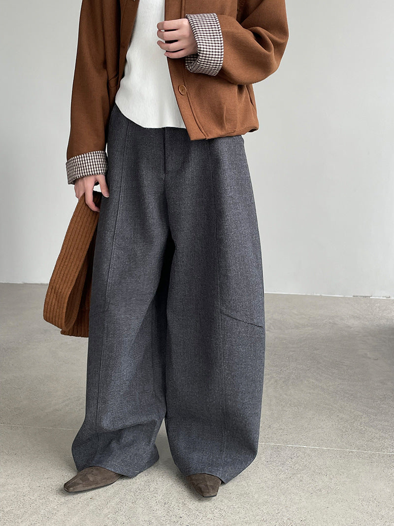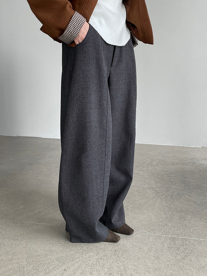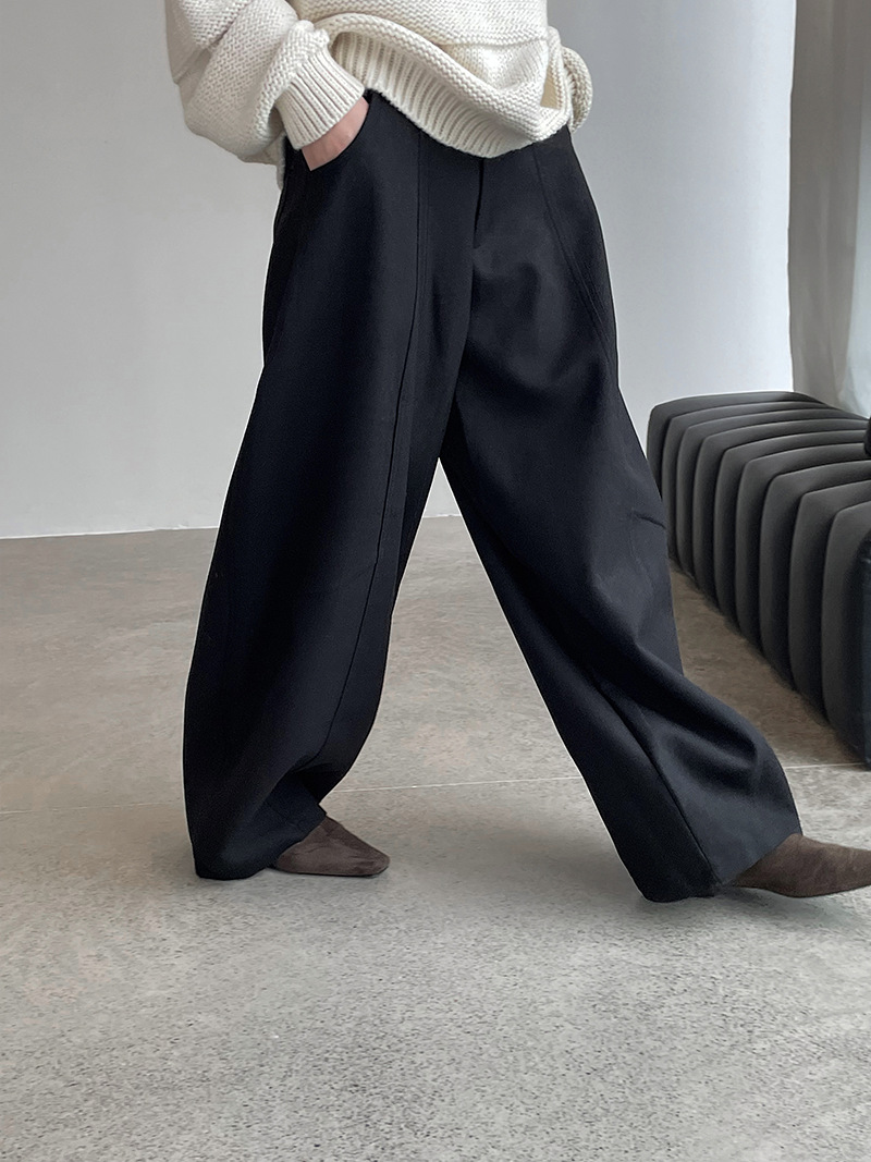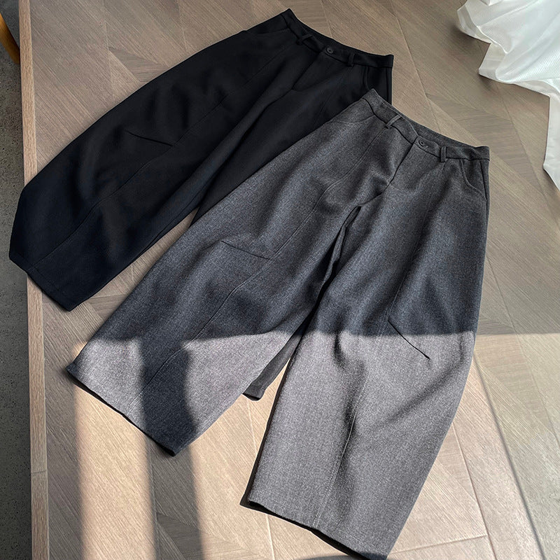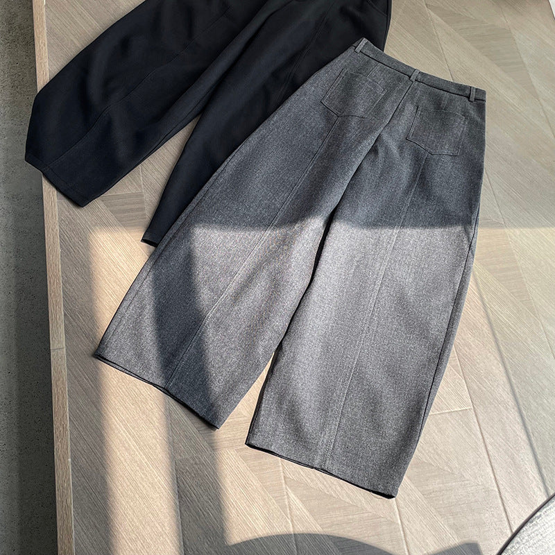 【cim2820】實拍韓國復古簡約毛呢彎刀西裝褲251002