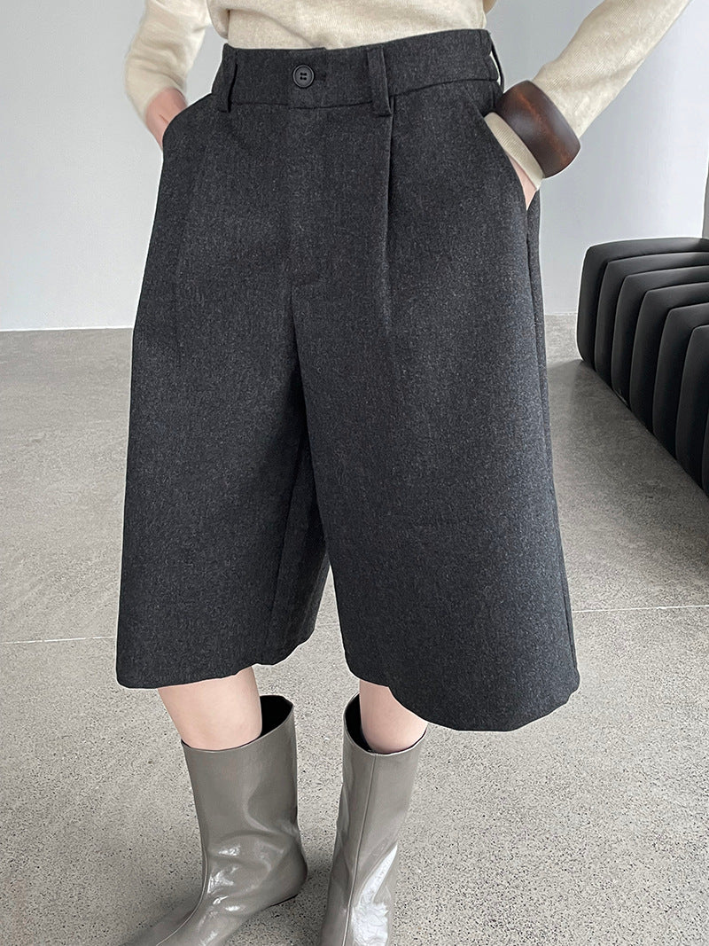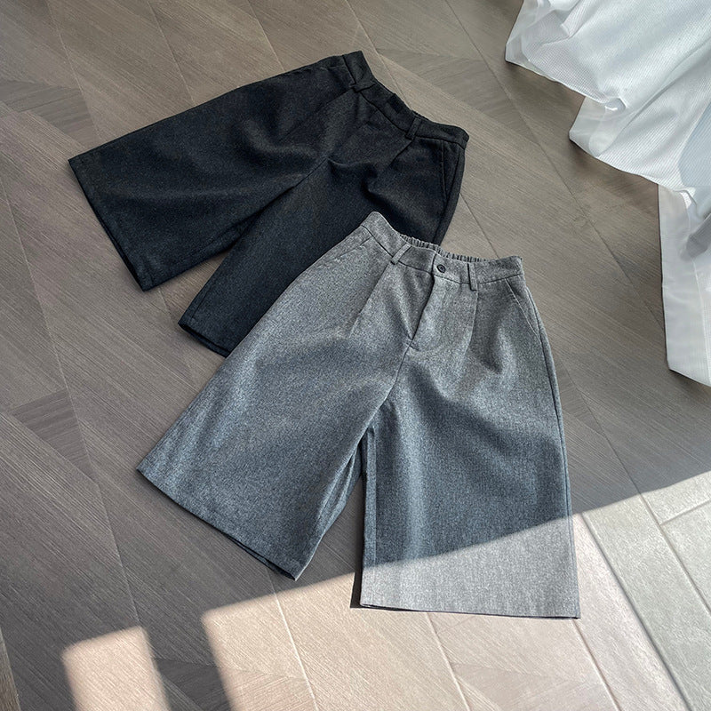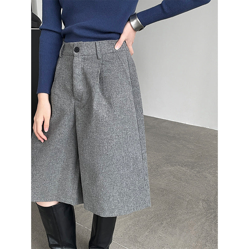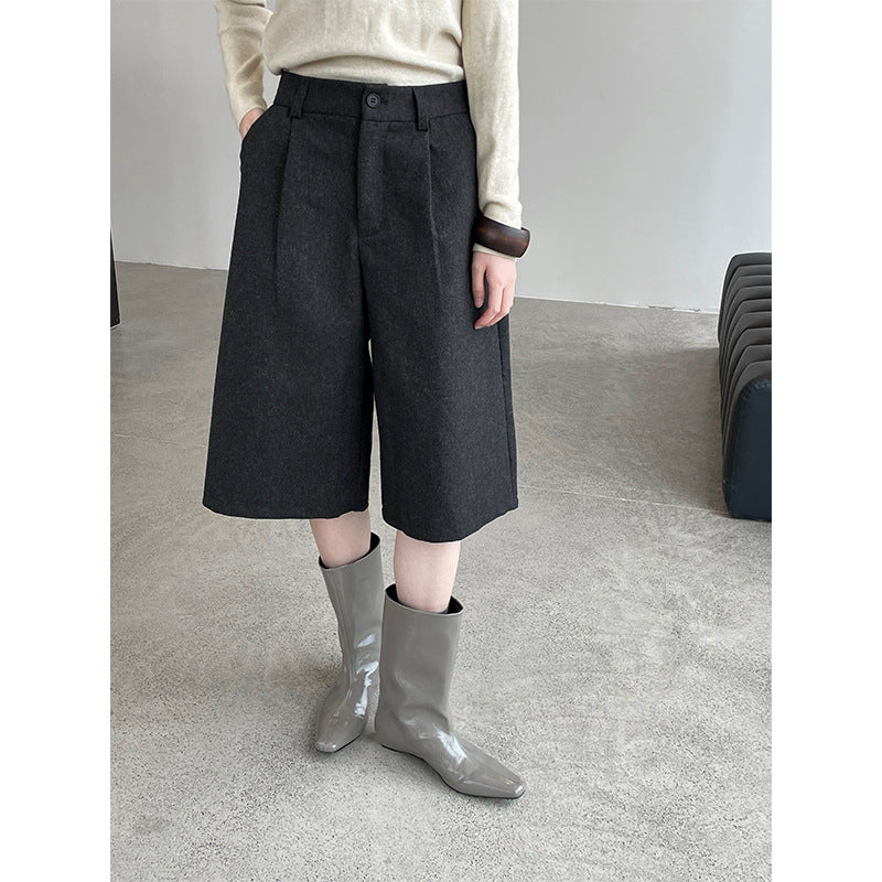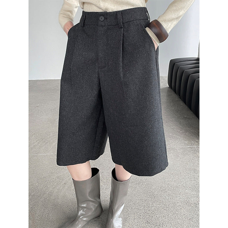 【cim2821】實拍秋冬高級羊毛呢闊腿五分褲251002