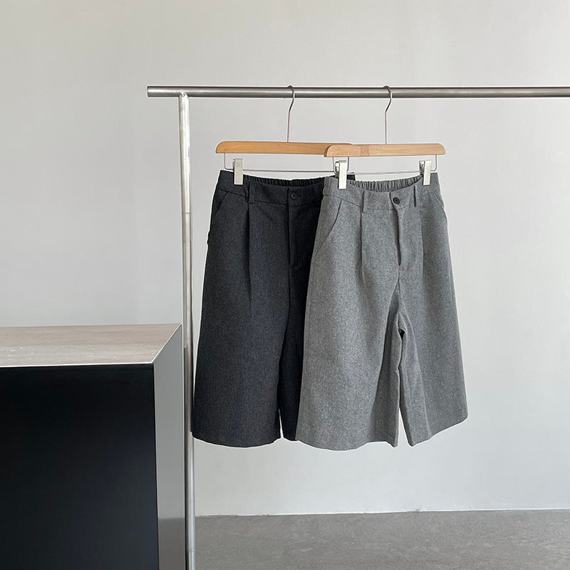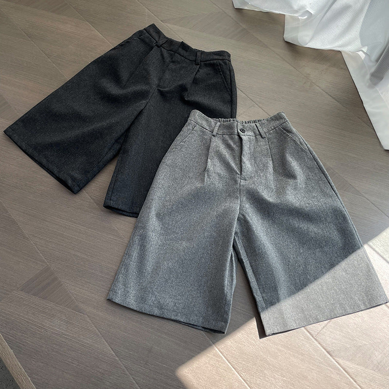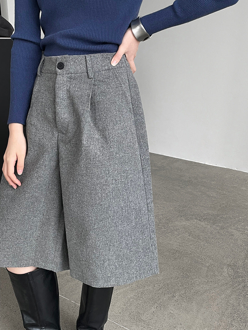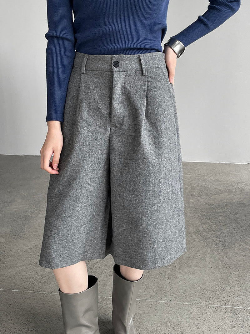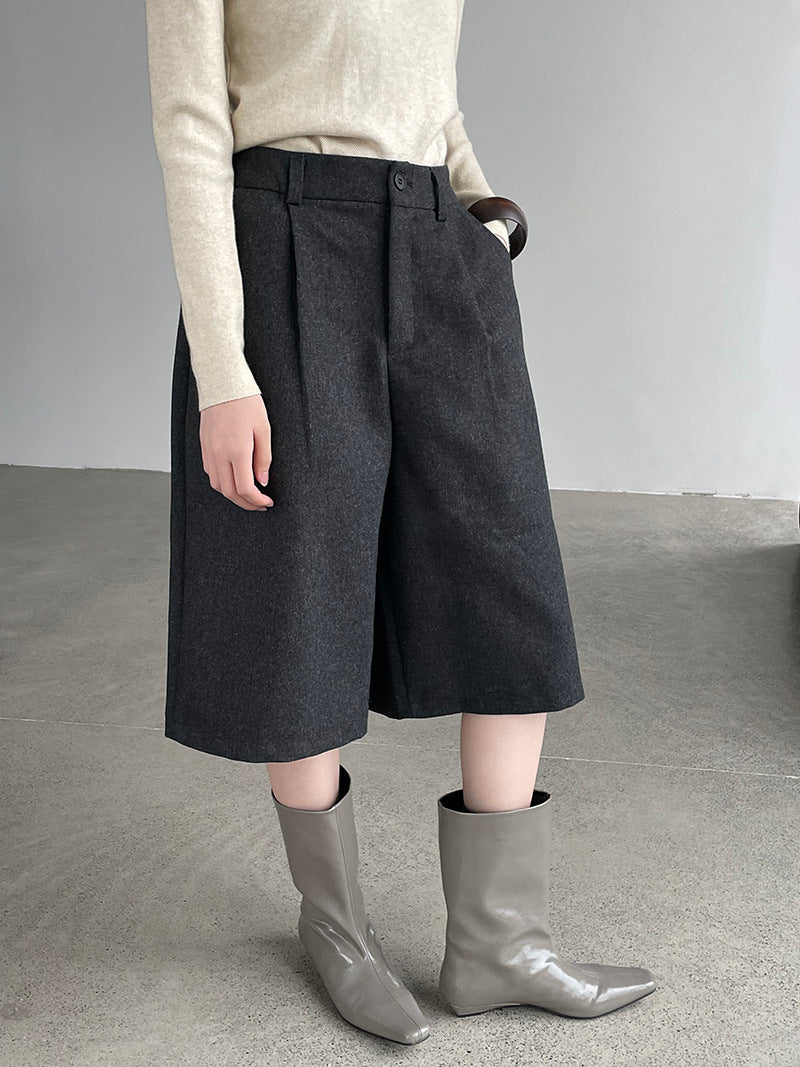 【cim2821】實拍秋冬高級羊毛呢闊腿五分褲251002
