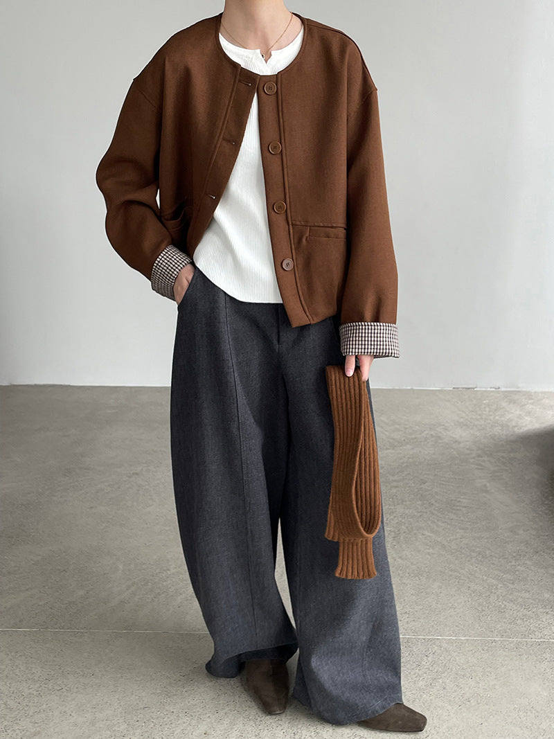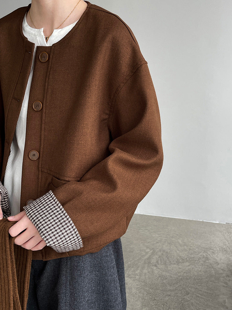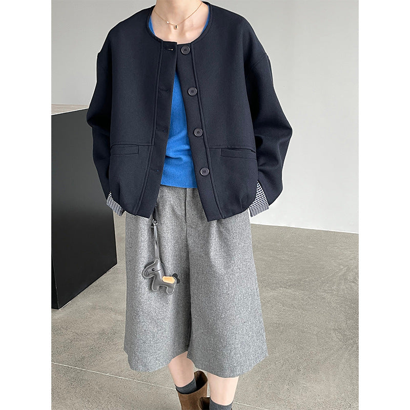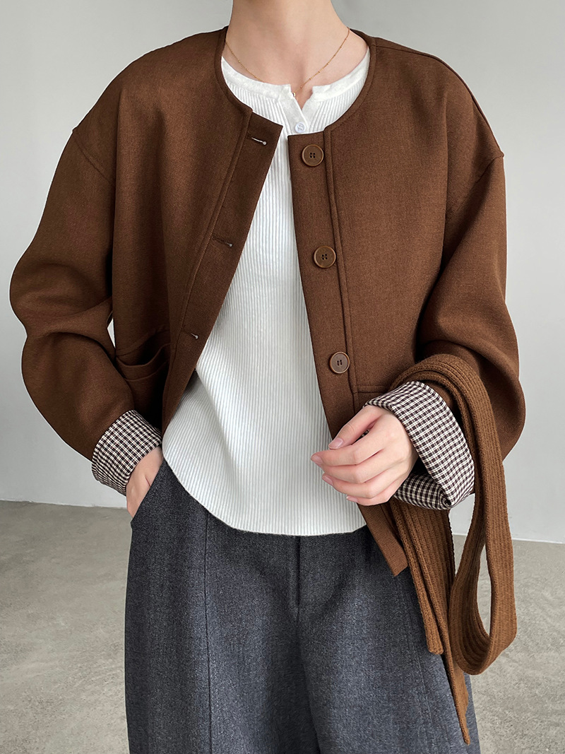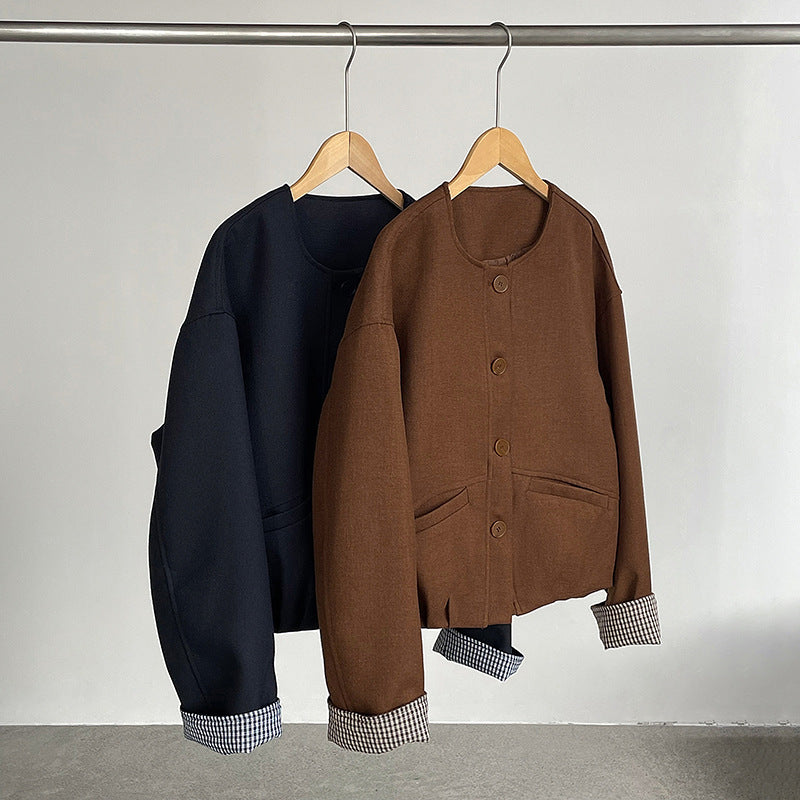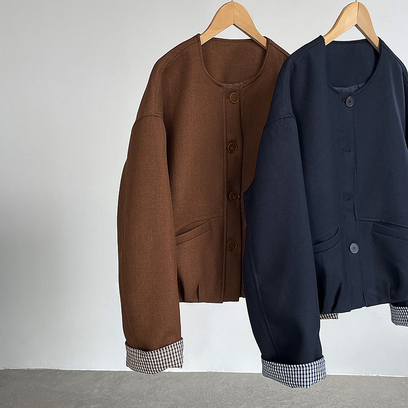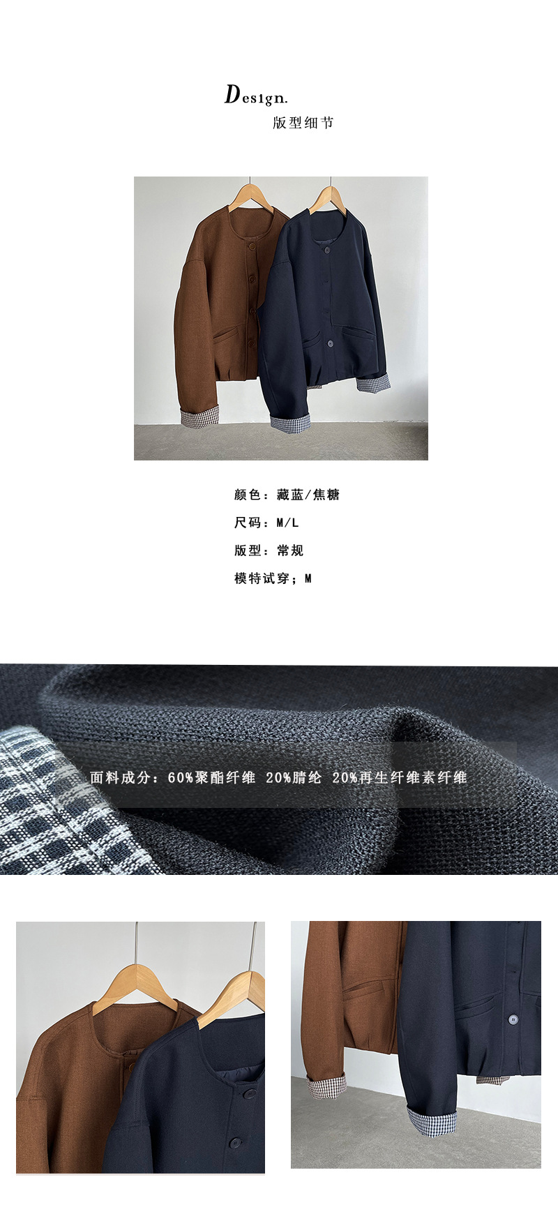 【cim2822】實拍秋冬小眾復古圓領廓形外套251002