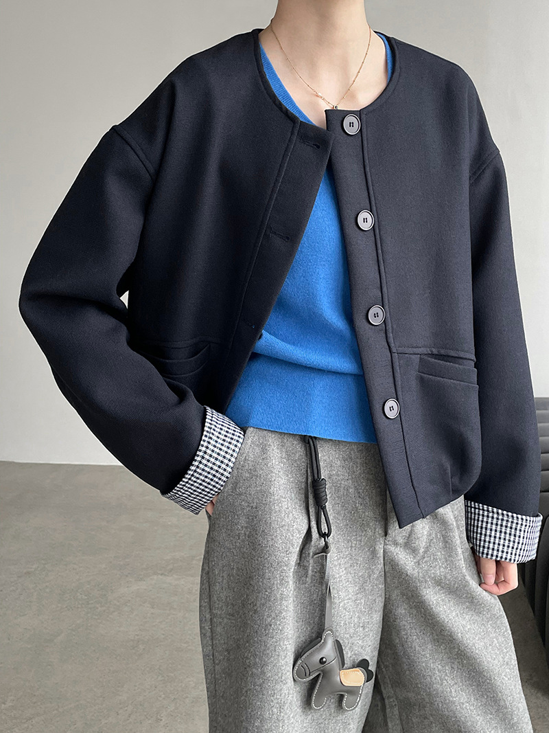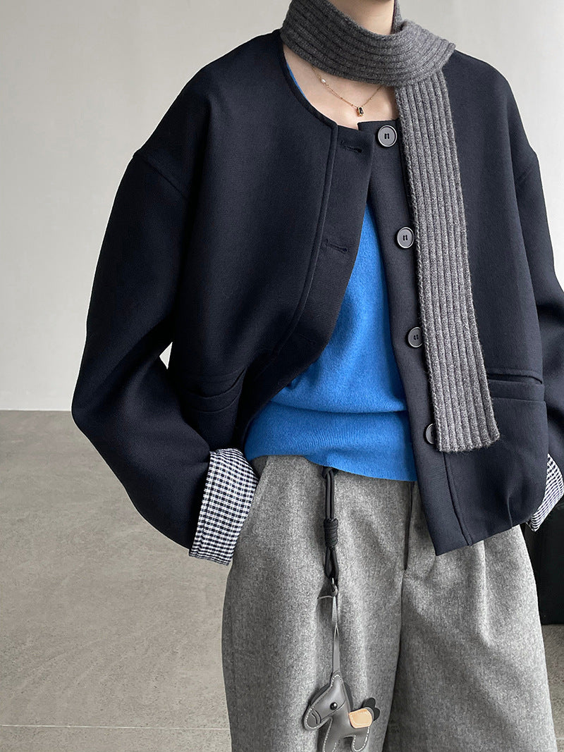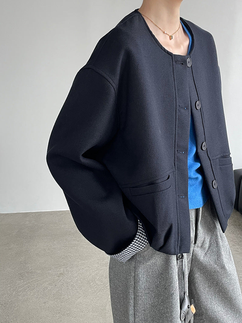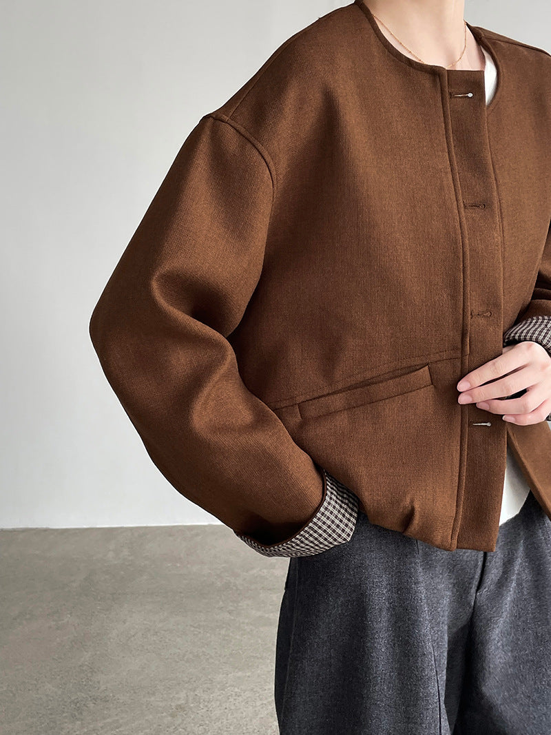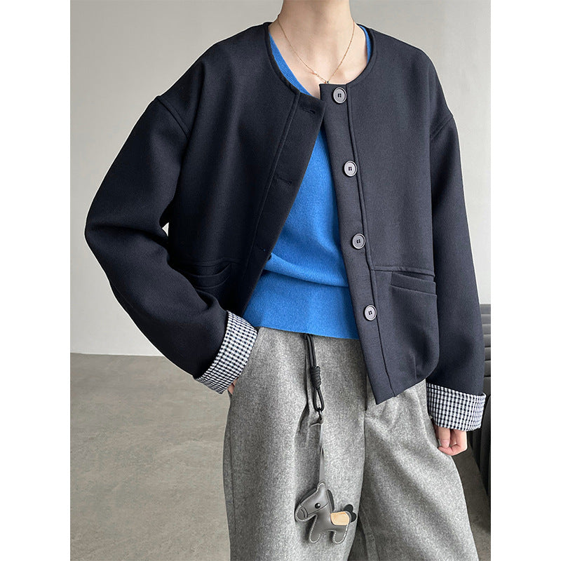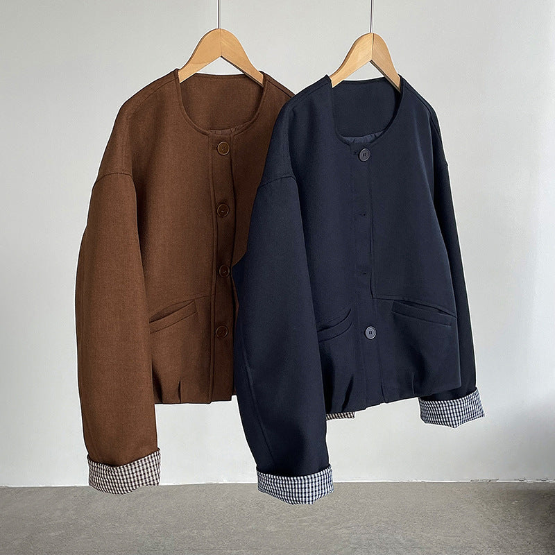 【cim2822】實拍秋冬小眾復古圓領廓形外套251002