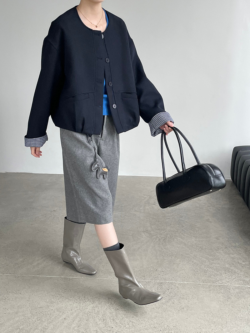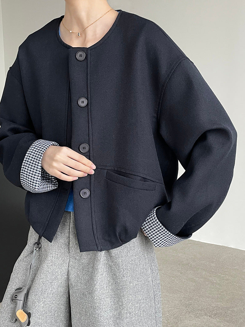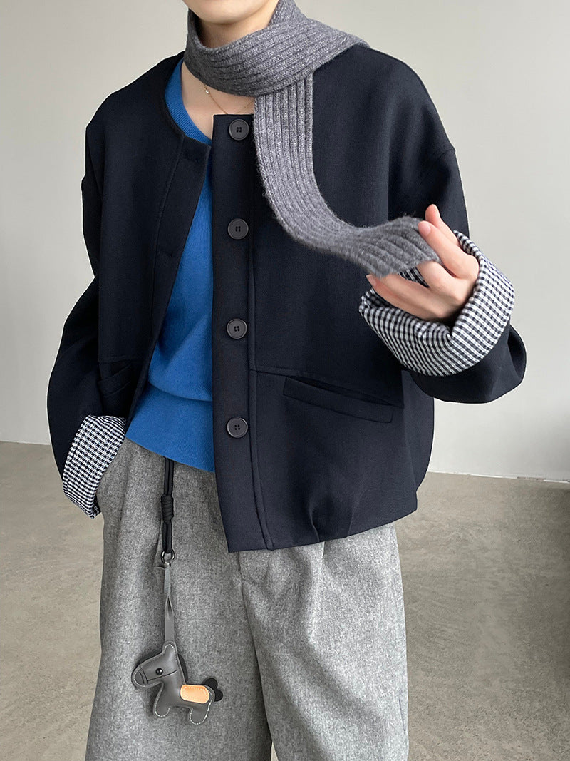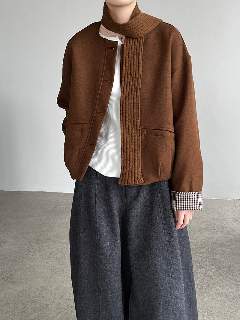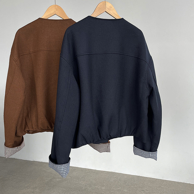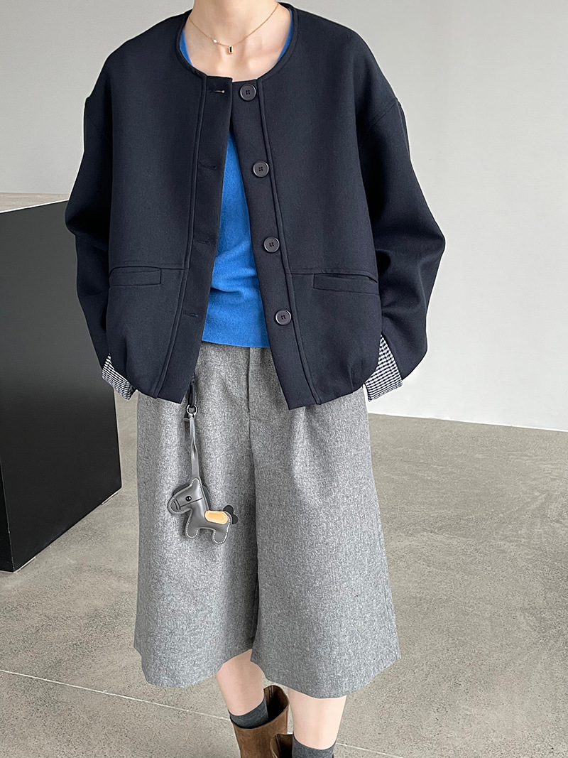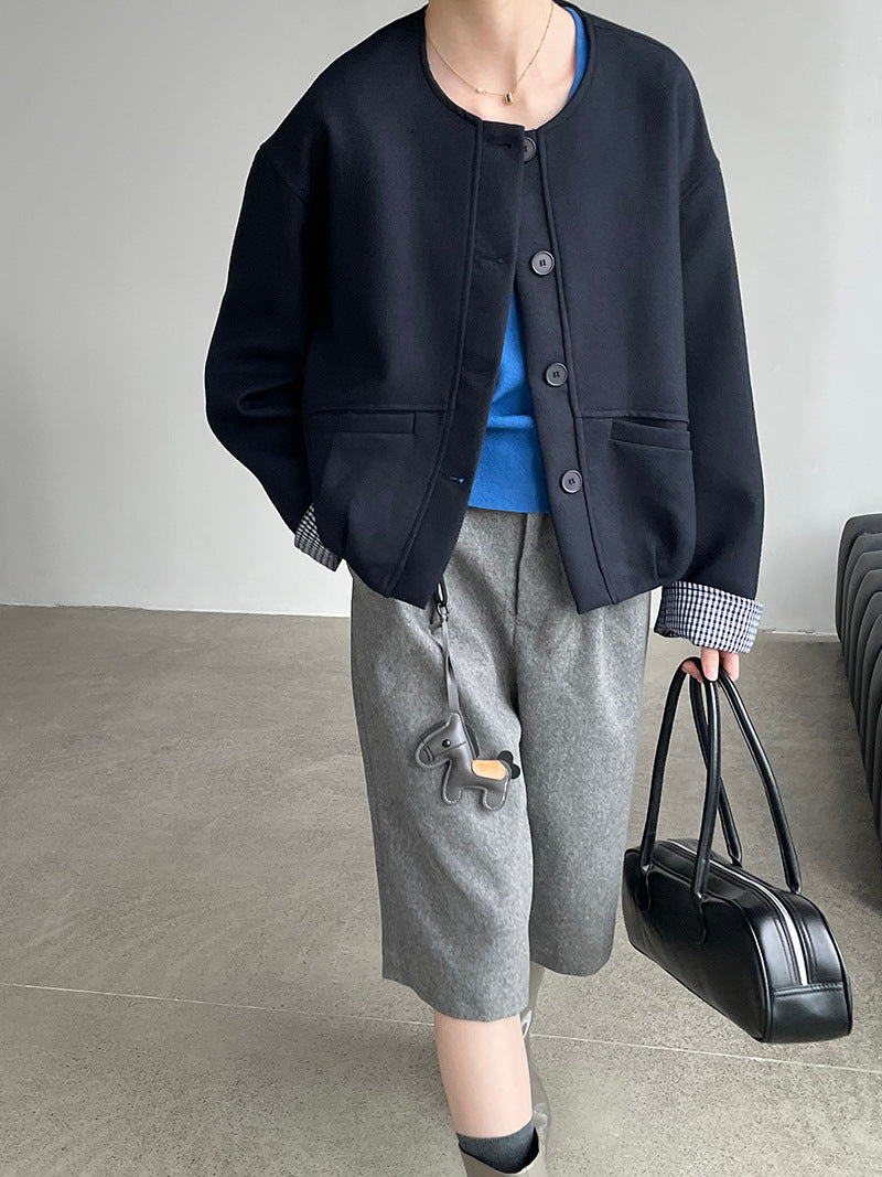 【cim2822】實拍秋冬小眾復古圓領廓形外套251002