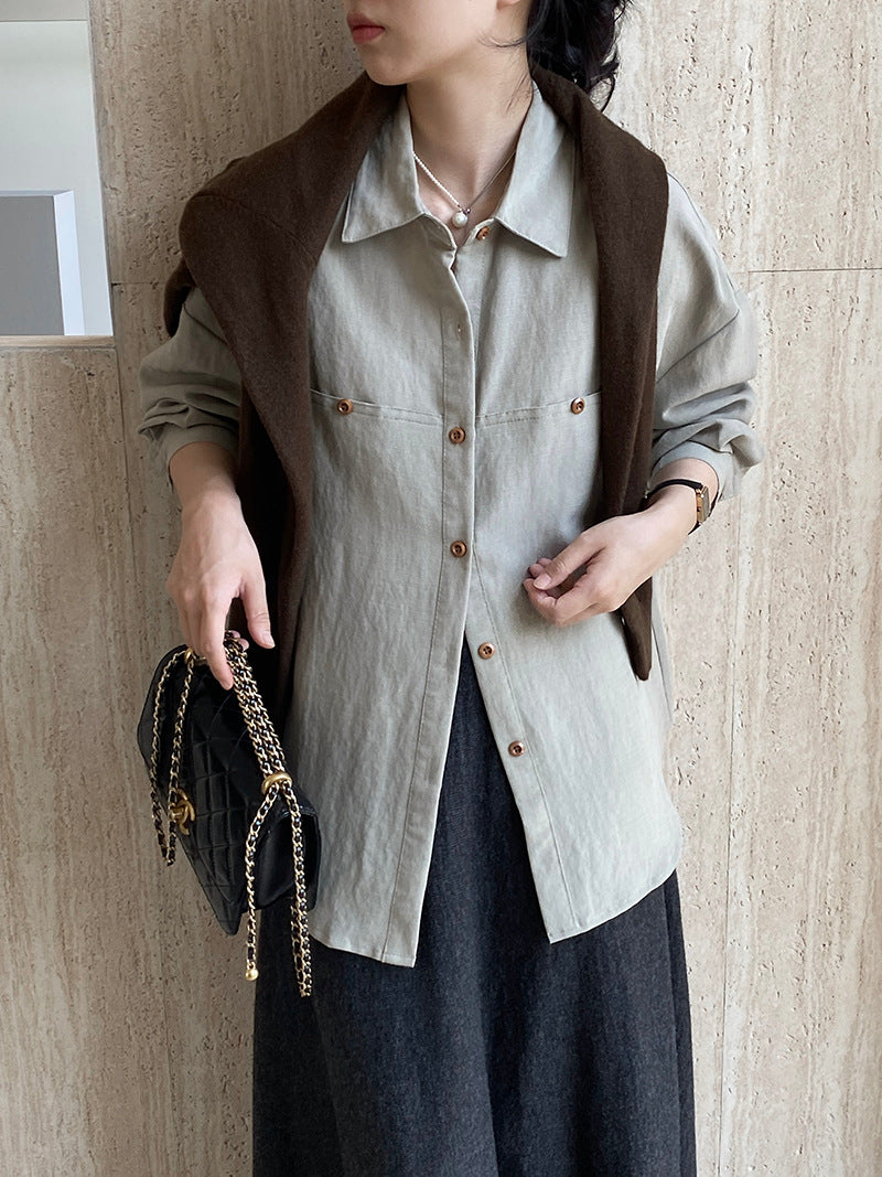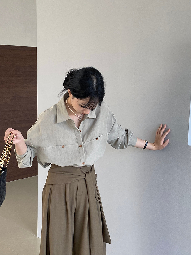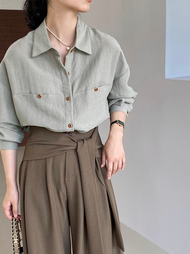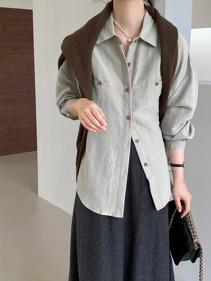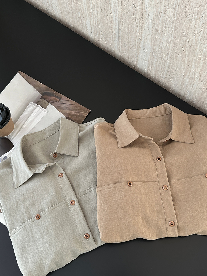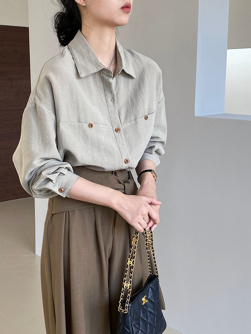 【cim6112】實拍韓國法式氣質天絲亞麻長袖襯衫251030