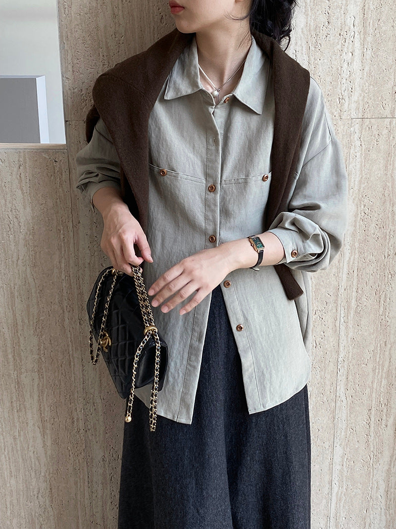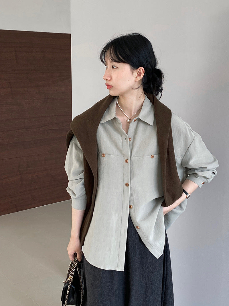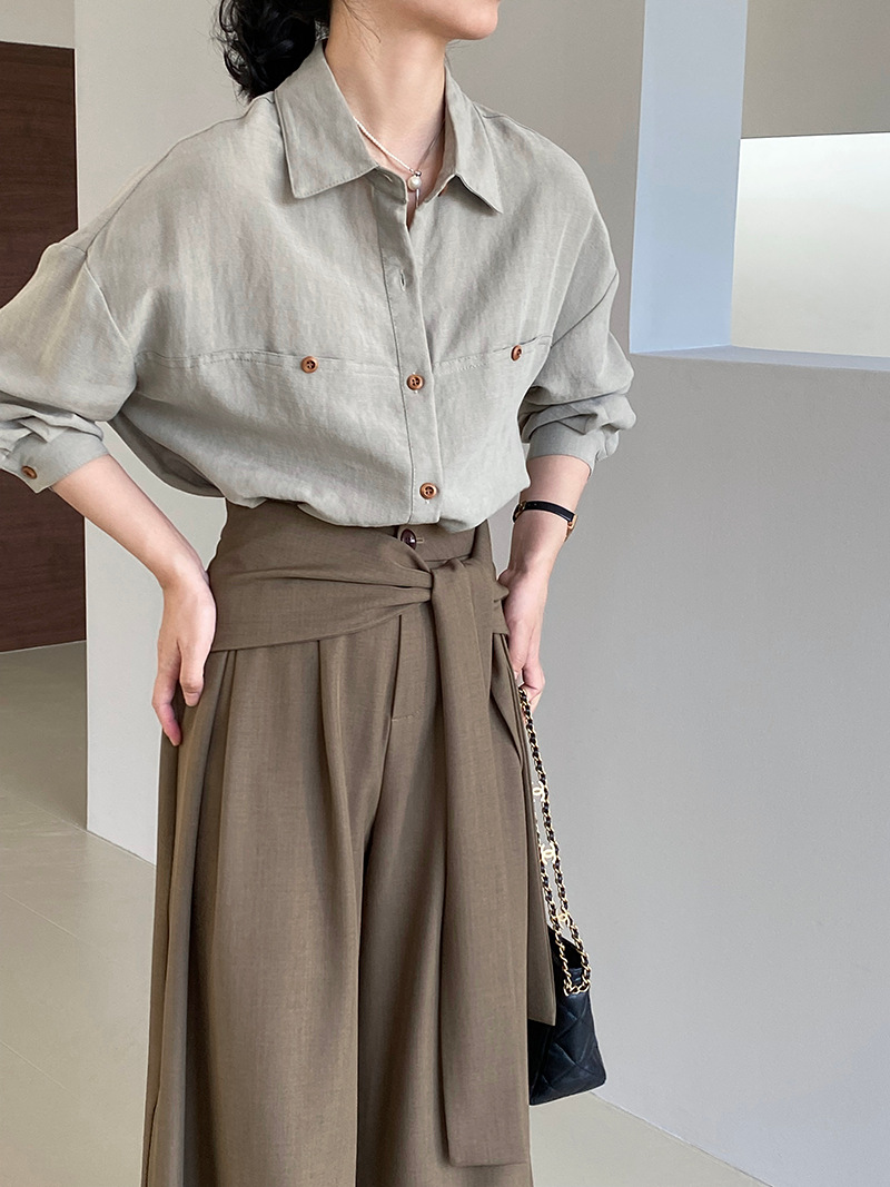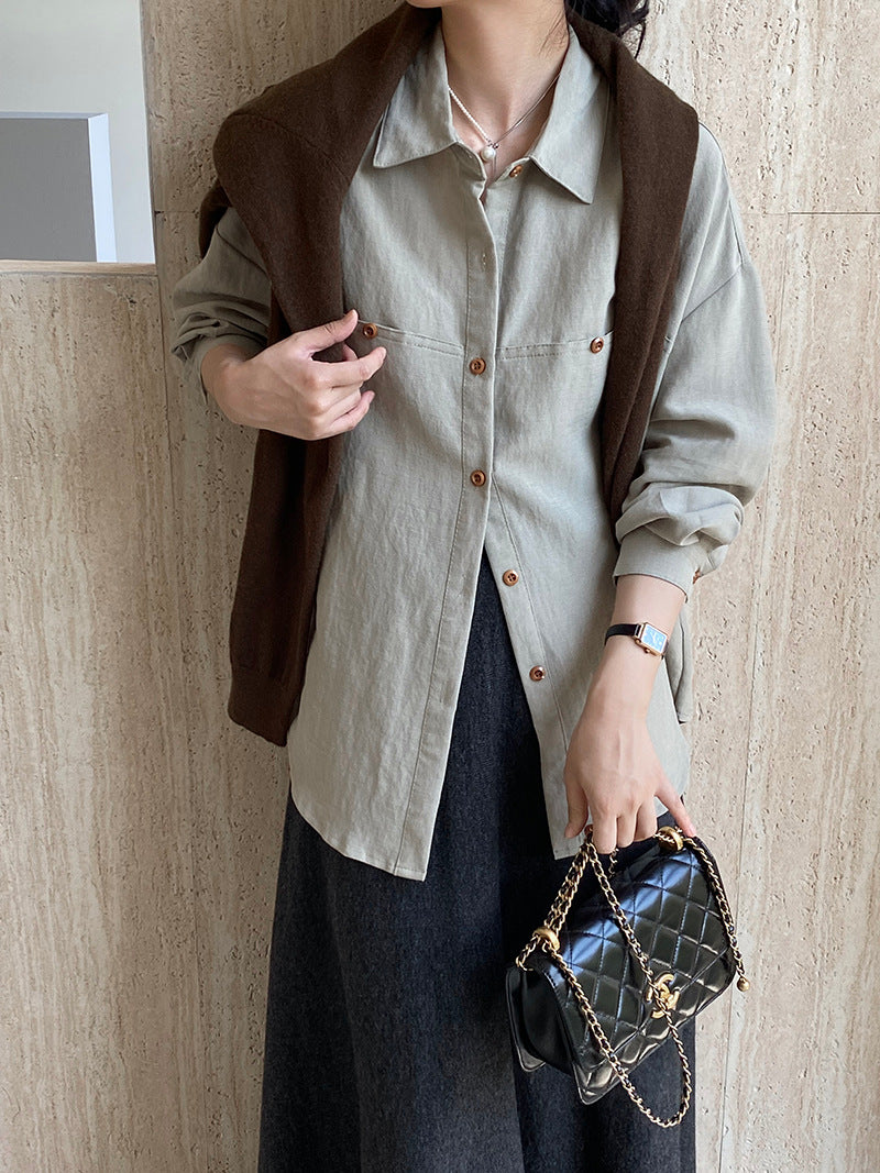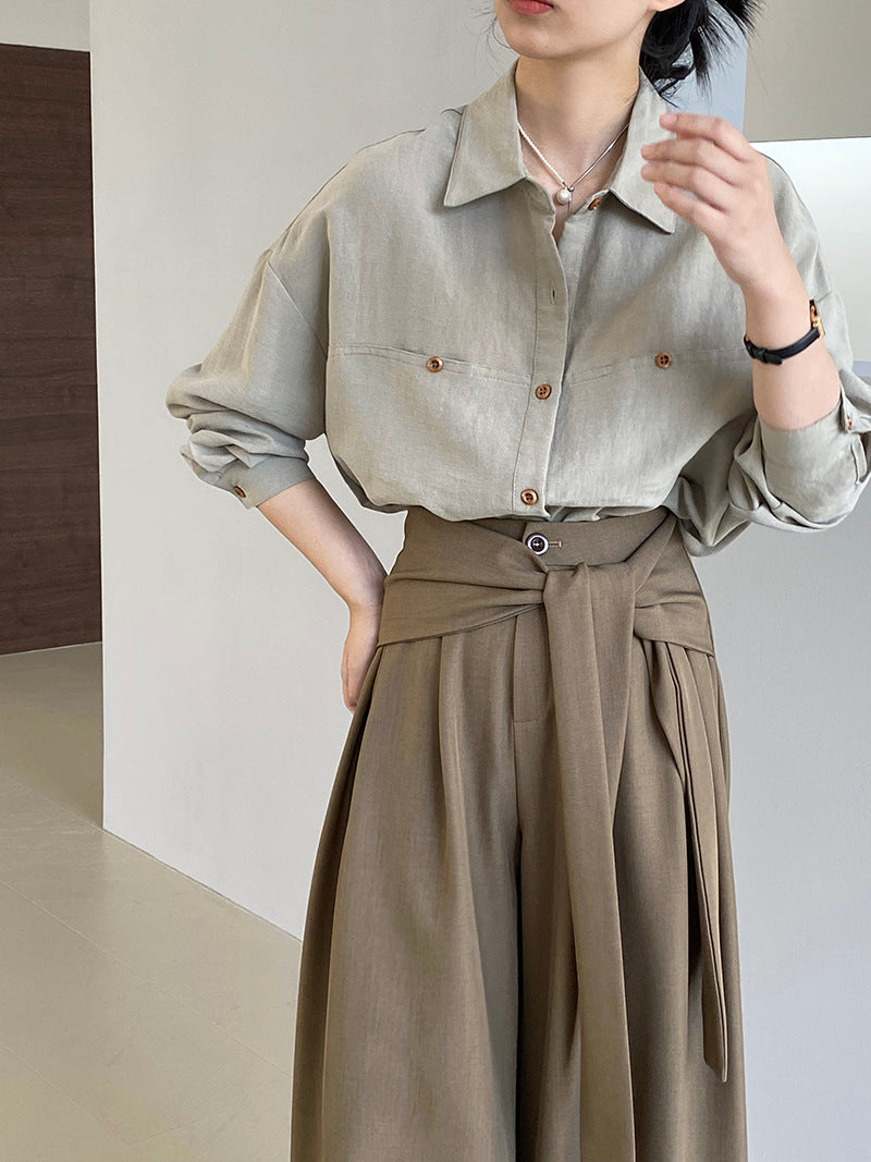 【cim6112】實拍韓國法式氣質天絲亞麻長袖襯衫251030