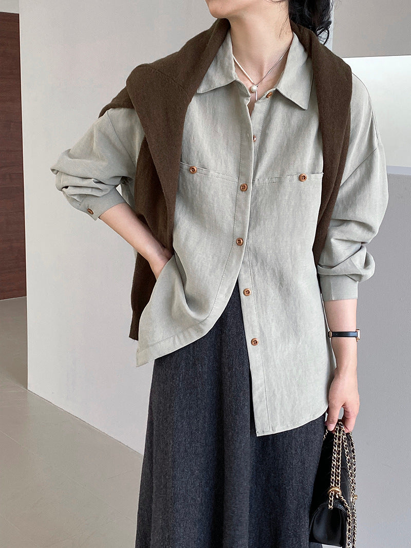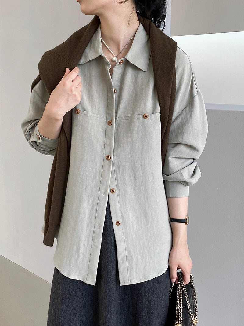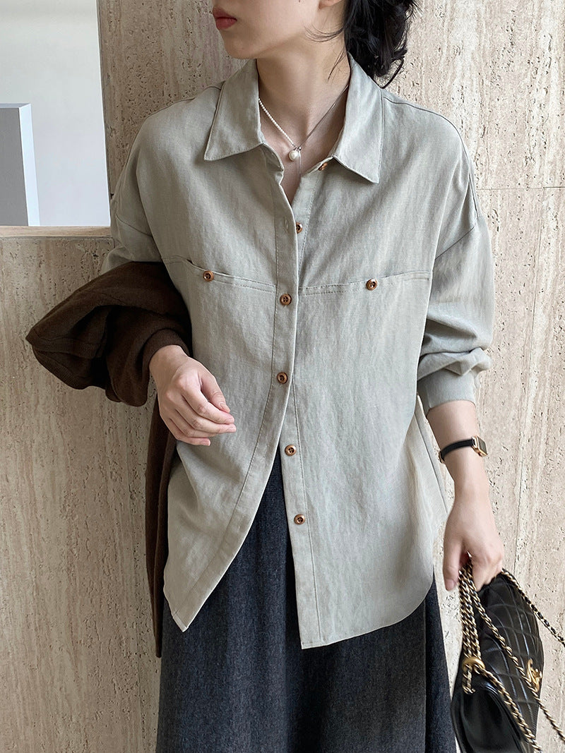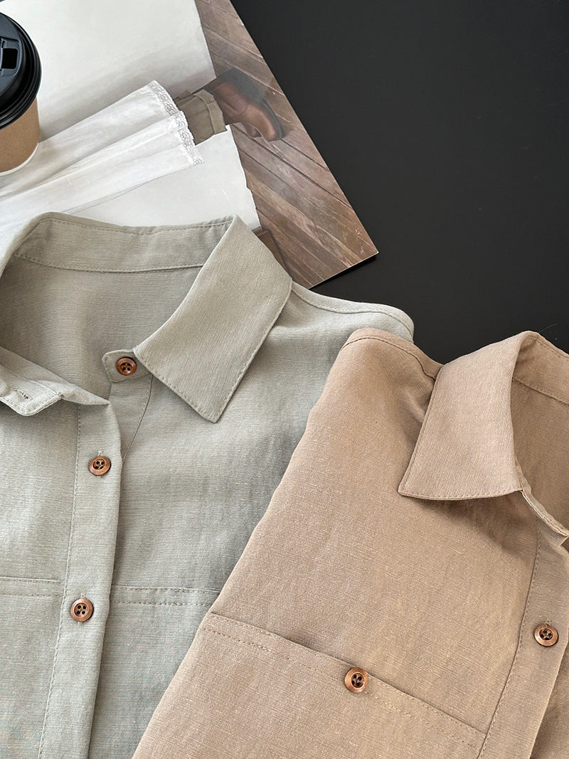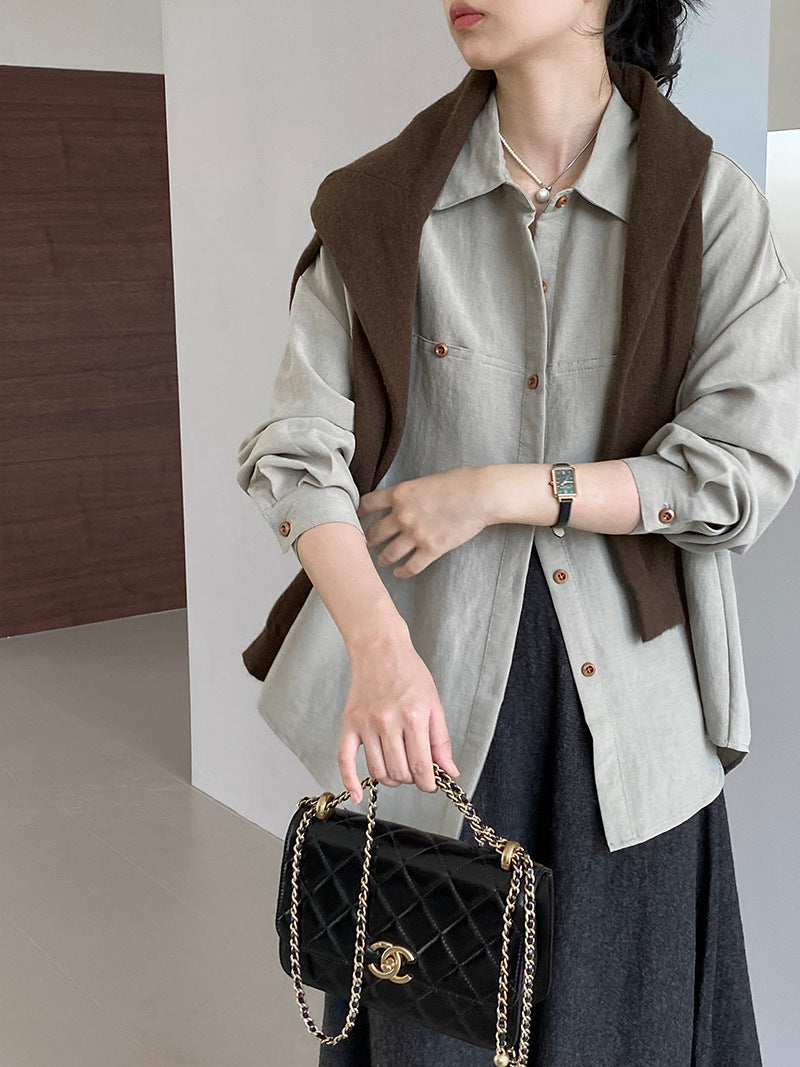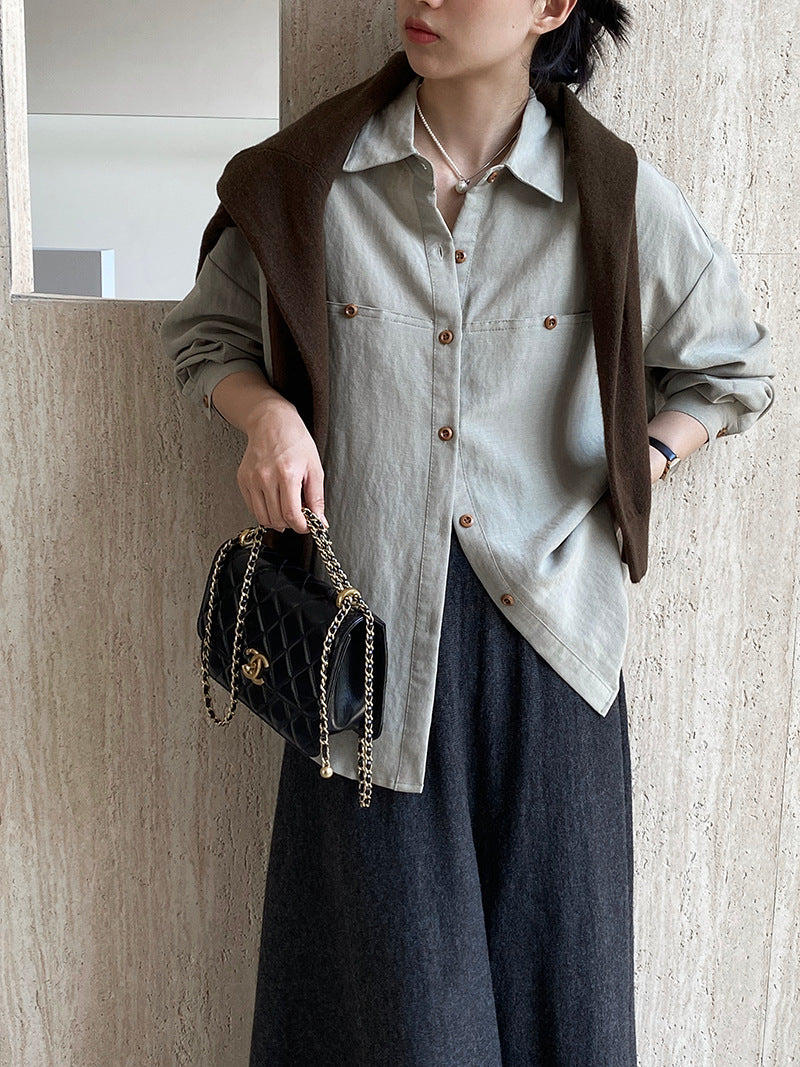 【cim6112】實拍韓國法式氣質天絲亞麻長袖襯衫251030