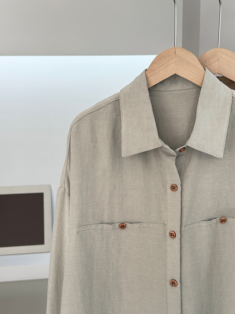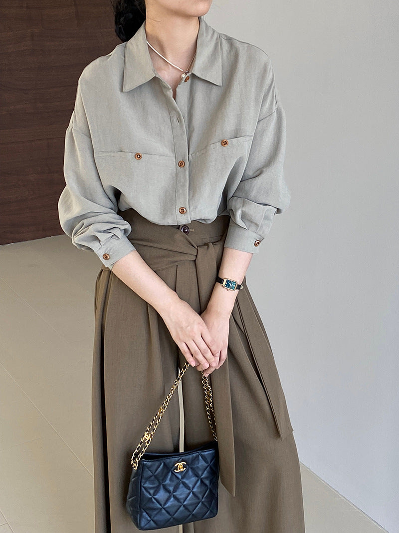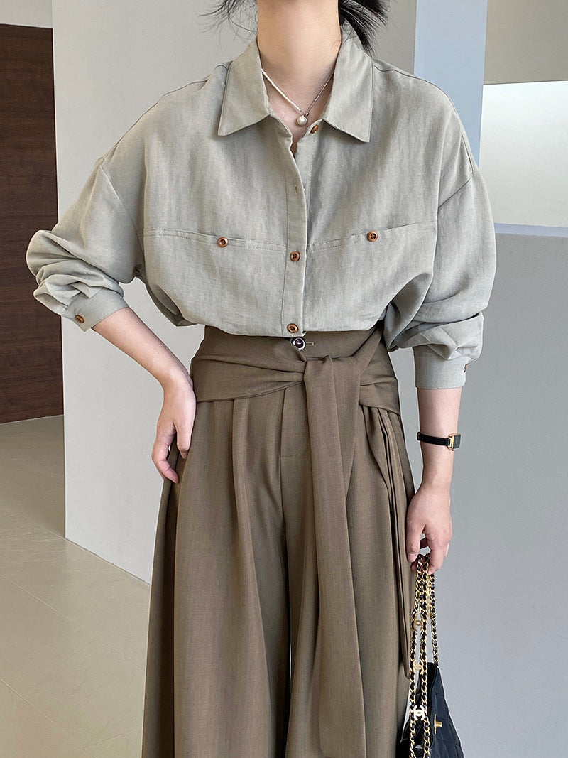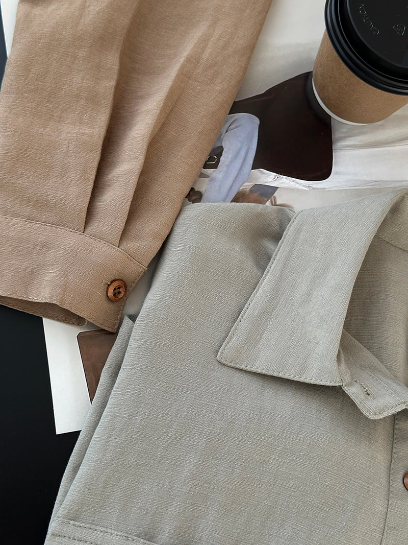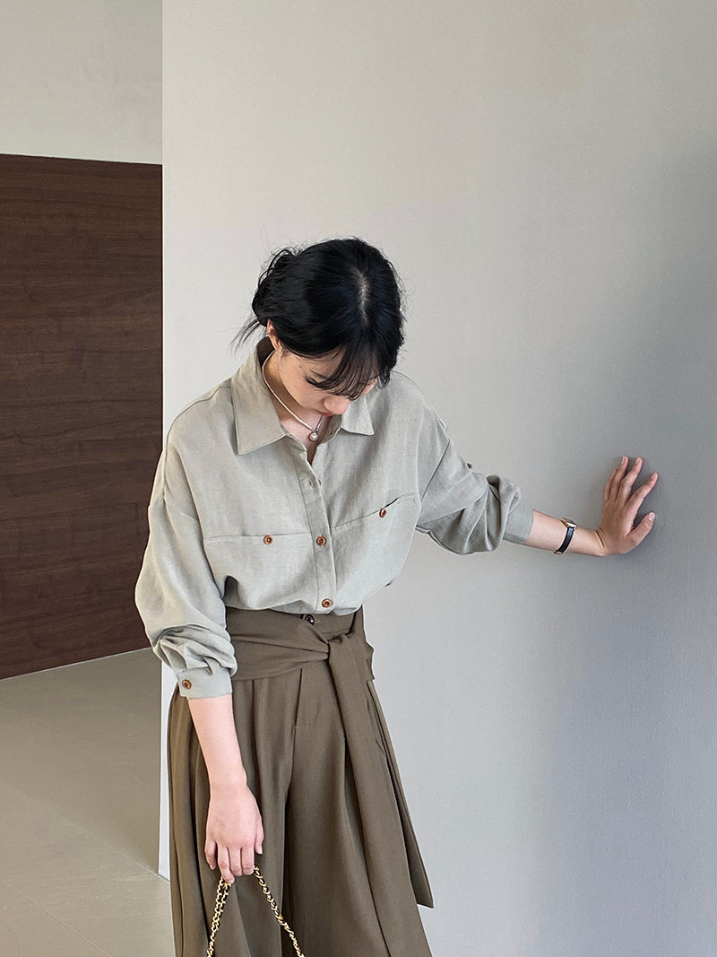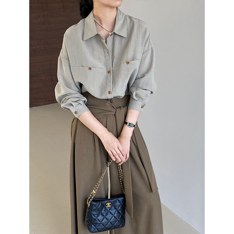【cim6112】實拍韓國法式氣質天絲亞麻長袖襯衫251030