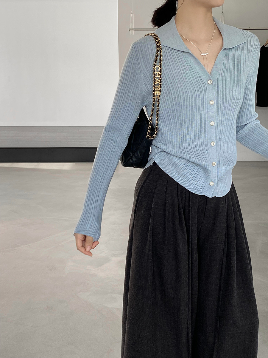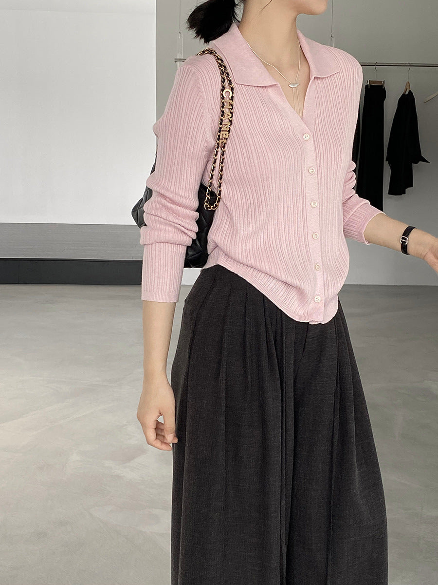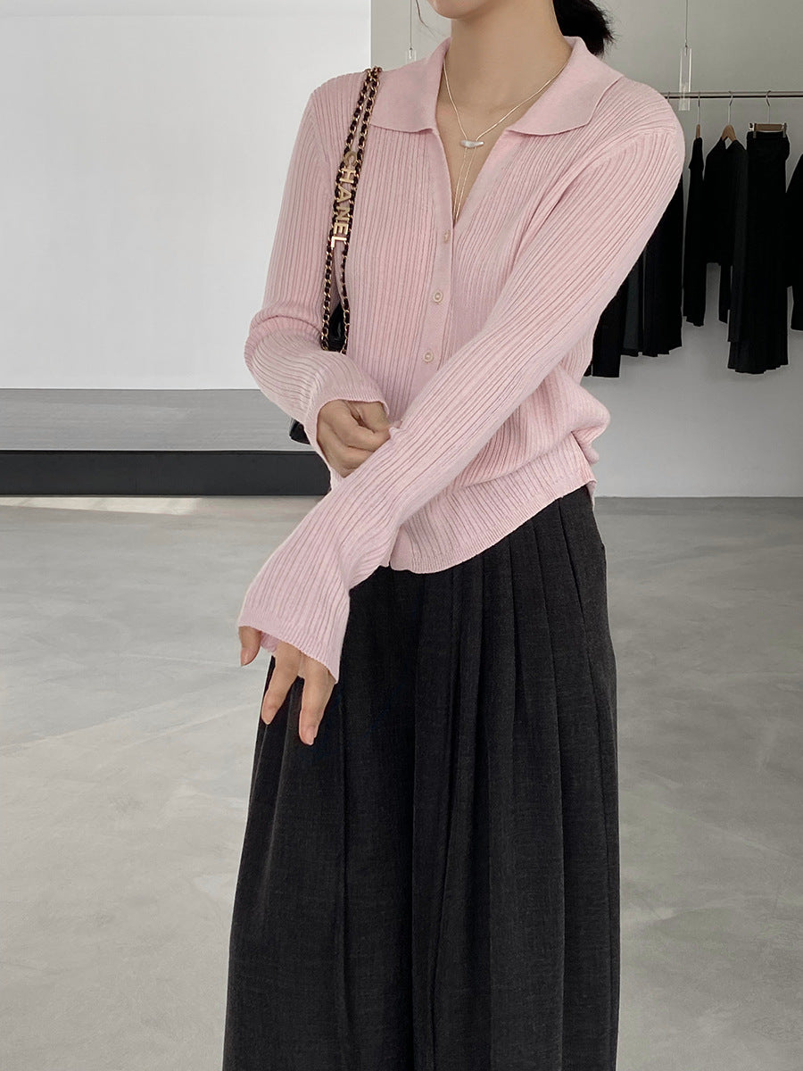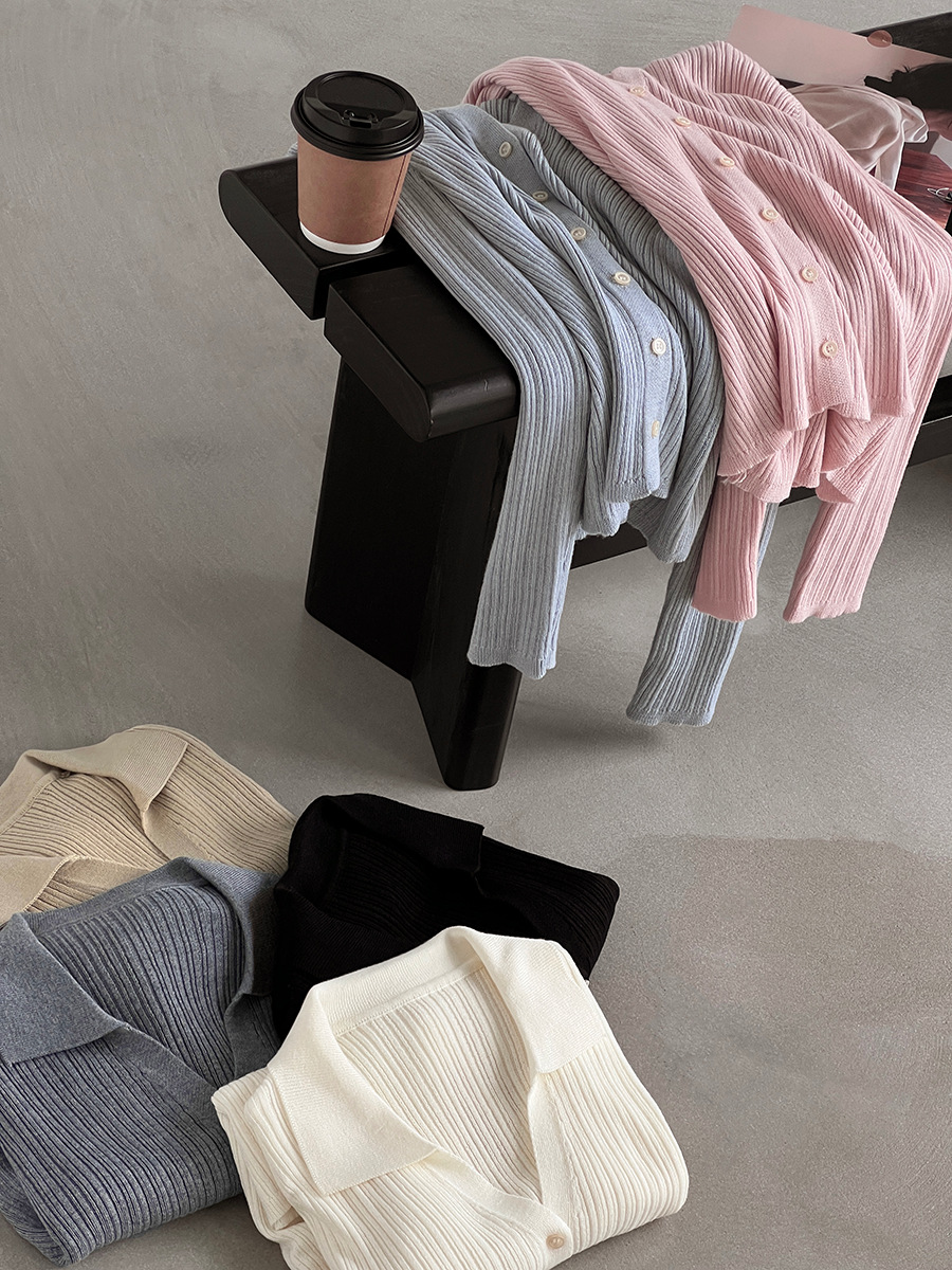 【cim6901】實拍慵懶紙片人polo領針織衫251030