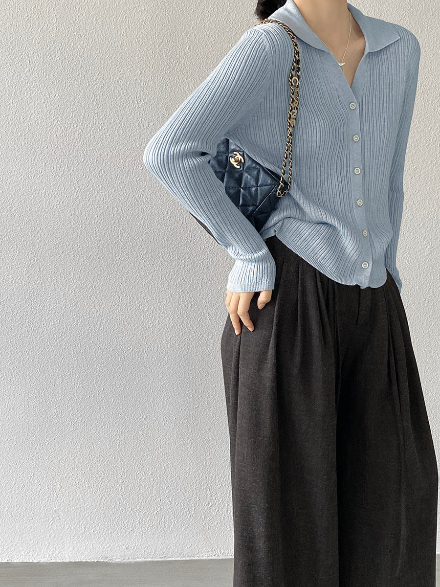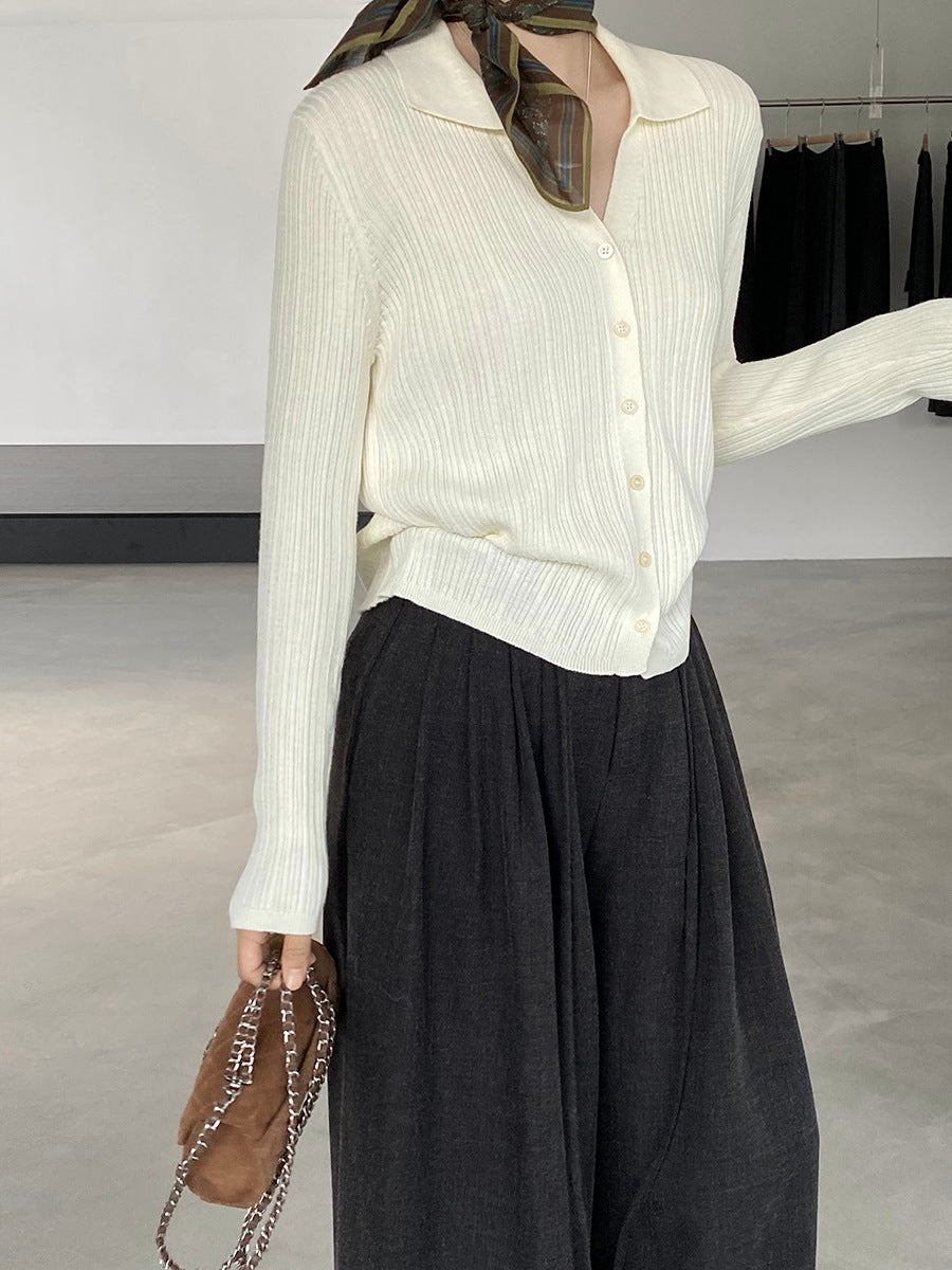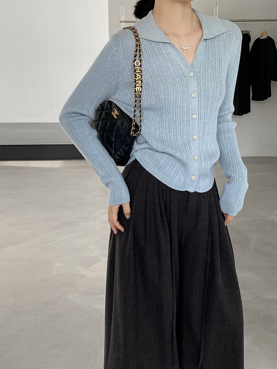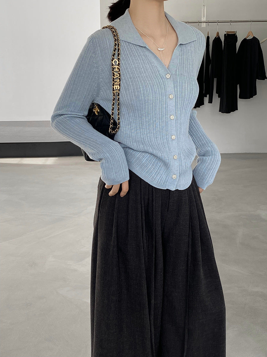 【cim6901】實拍慵懶紙片人polo領針織衫251030